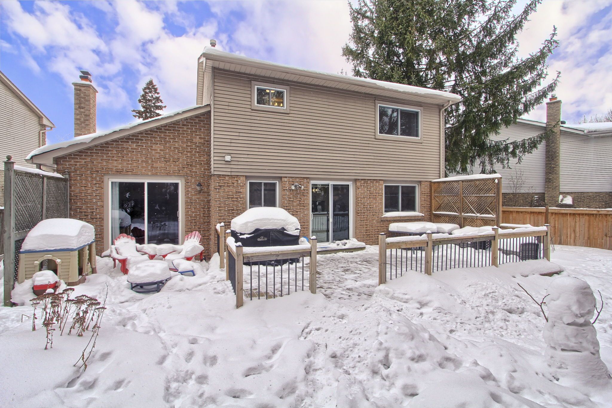 • Fully fenced backyard with south exposure and access to the deck.