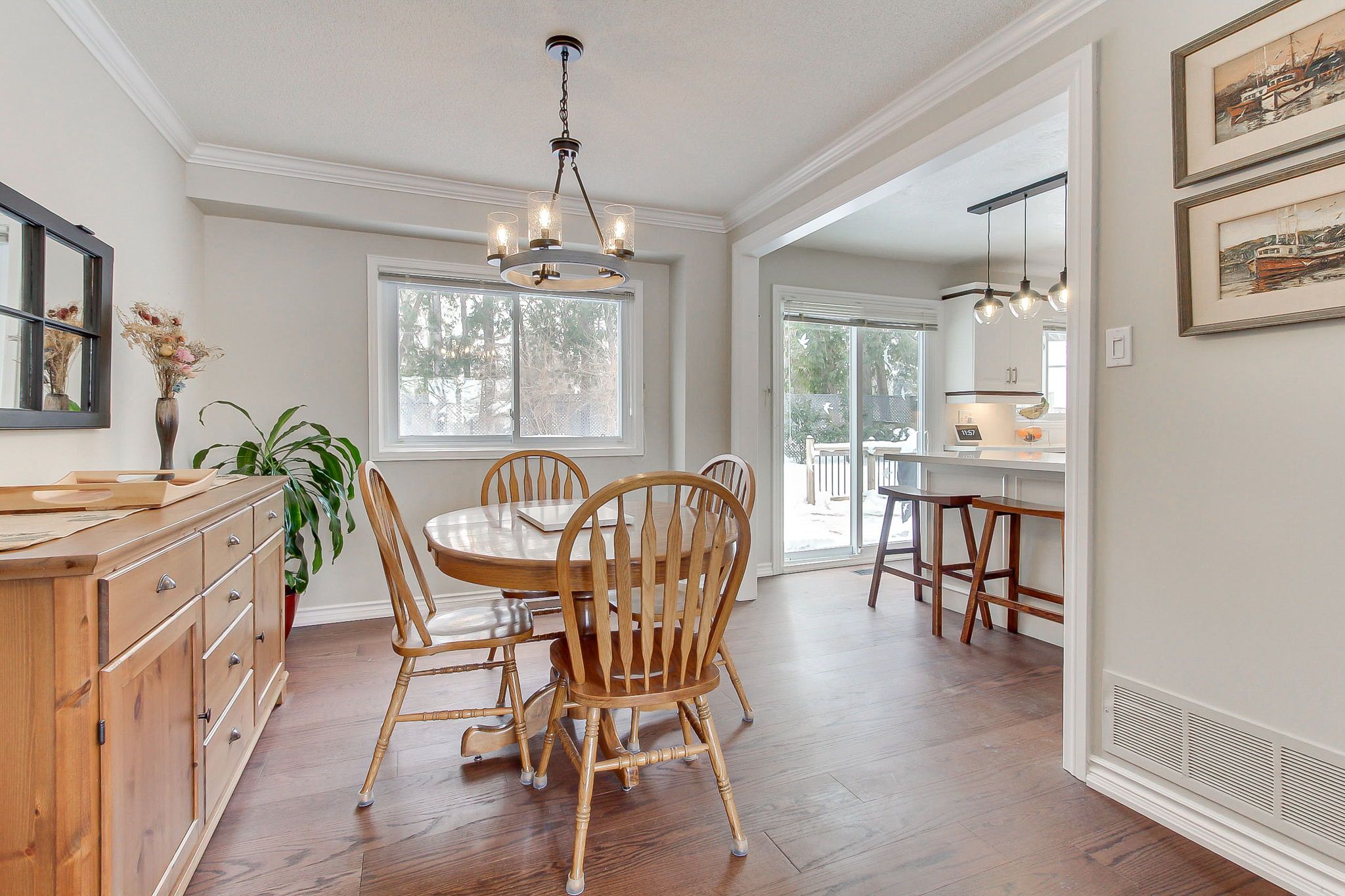 • Hardwood floors throughout main areas and bedrooms for easy upkeep.