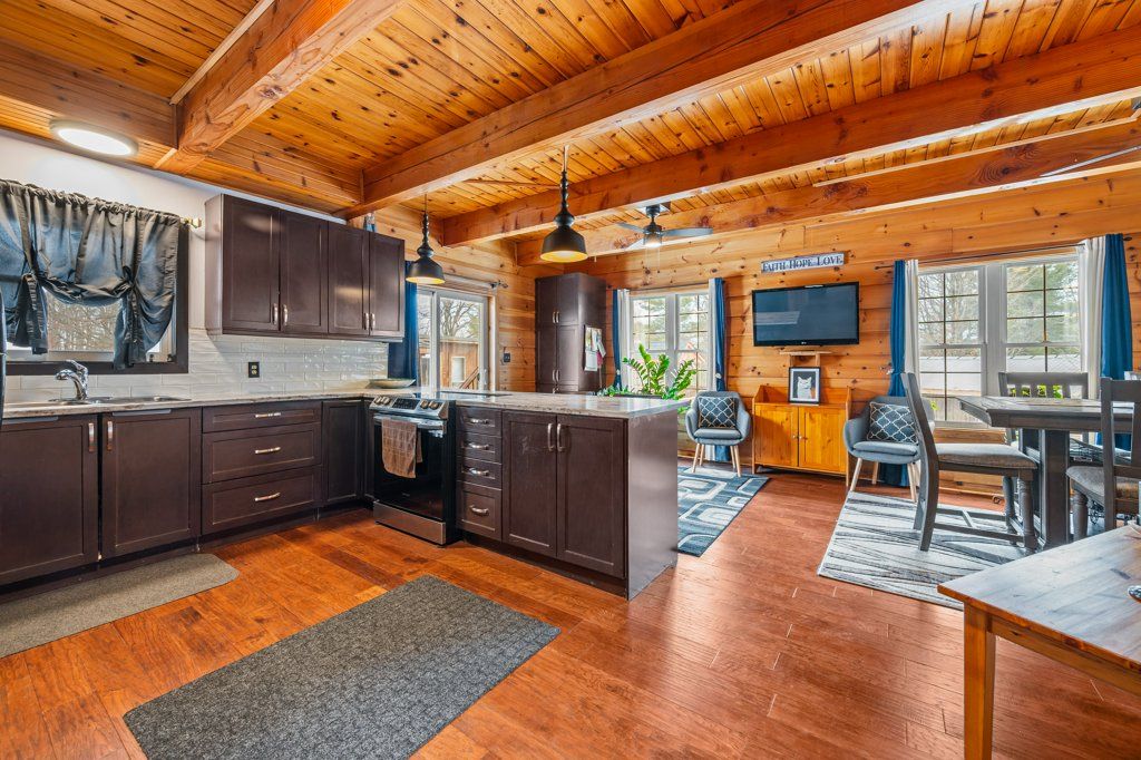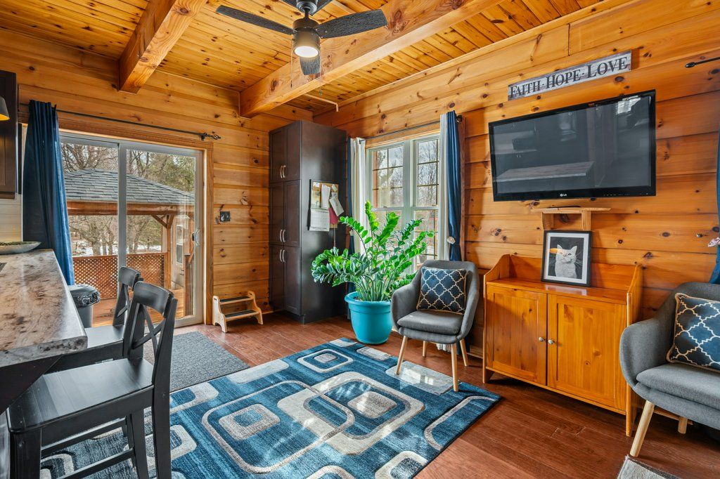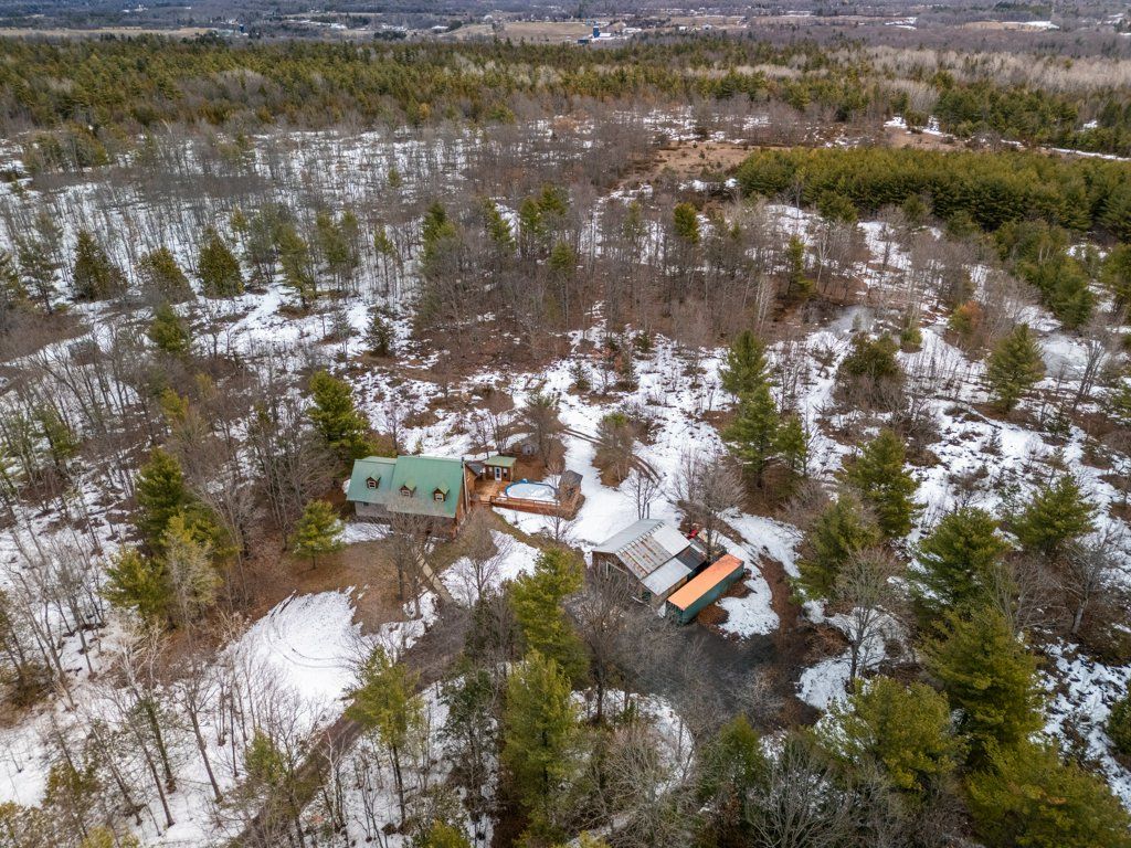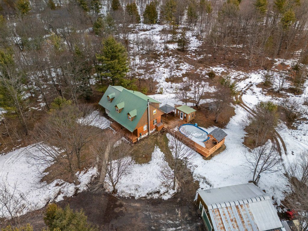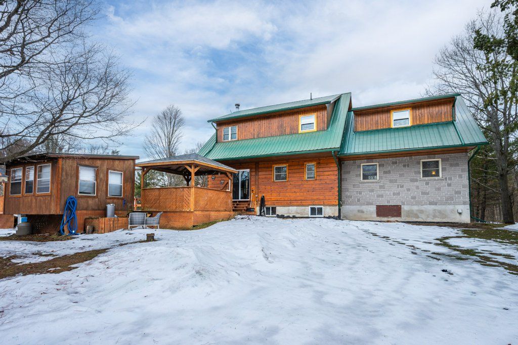 Welcome to your private country retreat just 15 minutes from kingston-a truly special property offering the perfect blend of comfort, recreation, and natural beauty. Nestled on just shy of 13 acres, this lovingly maintained log home has been cherished by its original owners and showcases pride of ownership throughout. This spacious home features 4 bedrooms and 2 fully updated bathrooms, along with a newer kitchen designed for both everyday living and entertaining. The bright, functional layout continues into a fully finished basement, providing additional living space for family, guests, or recreation. Recent upgrades include 6 new windows. A durable metal roof, ensuring peace of mind for years to come. The home is serviced by 200-amp electrical. Step outside and experience everything this incredible property has to offer. Enjoy summer days in the 15x24 on-ground pool, complete with an insulated pool shed, expansive deck, and a fun tiki bar-perfect for hosting friends and family. There's even a dedicated hot tub pad and hookup ready for your personal spa oasis. For hobbyists and outdoor enthusiasts, the property is second to none. A 28 x 32 detached garage is fully insulated and heated, complemented by a 40-foot sea can for additional storage. Explore your own private trails, pick from mature fruit trees, or unwind by your very own hockey pond in the winter months. With a warming hut that includes a woodstove. A tree stand at the back of the property offers even more opportunity for nature lovers. The circular driveway provides easy access and ample parking, all set within a peaceful, private setting that feels worlds away-yet remains conveniently close to city amenities. This is more than a home-it's a lifestyle.
