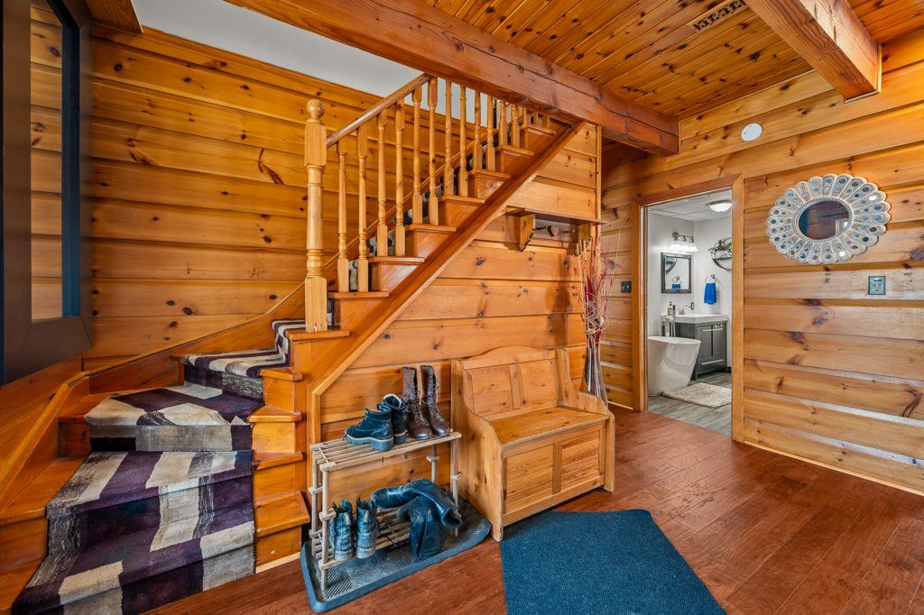 • Spacious log home with 4 bedrooms and updated bathrooms for family comfort.