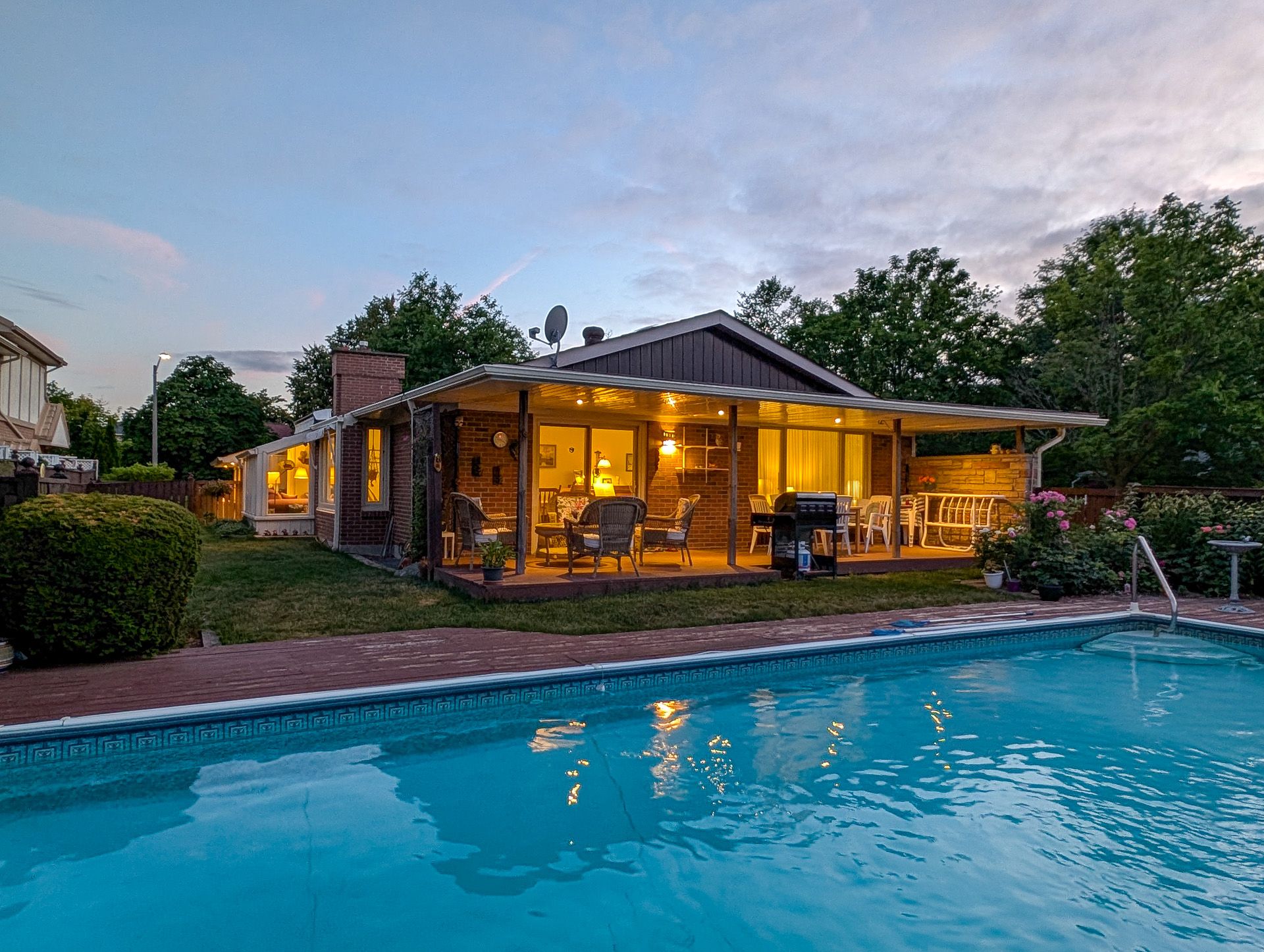 Perfect opportunity to own in sought-after applewood, mississauga! Spacious 3 bed, 2 bath detached bungalow on a generous 65x135 ft lot with excellent potential for future development. Bright interiors with large windows and sunrooms, plus generous family spaces including a breakfast area and family room. Galley kitchen with stainless steel appliances. Relax by the in-ground swimming pool or entertain in this quiet, family-friendly neighbourhood. Double car garage and partially finished basement add flexibility. Close to parks, shops, schools, and transit truly a home with endless possibilities.!