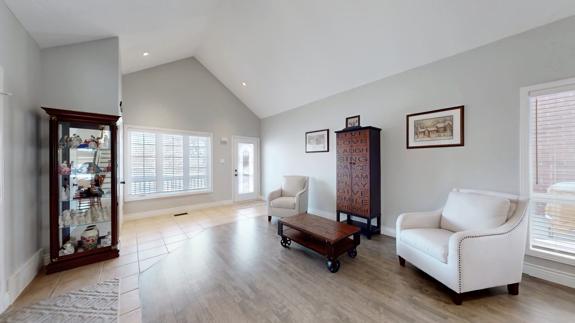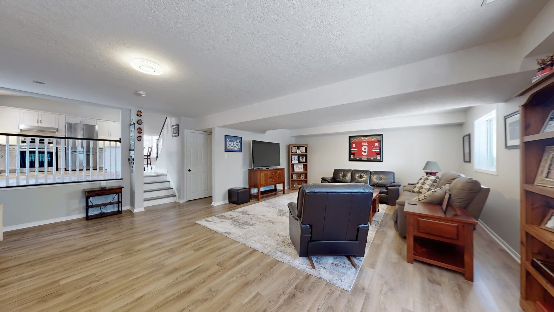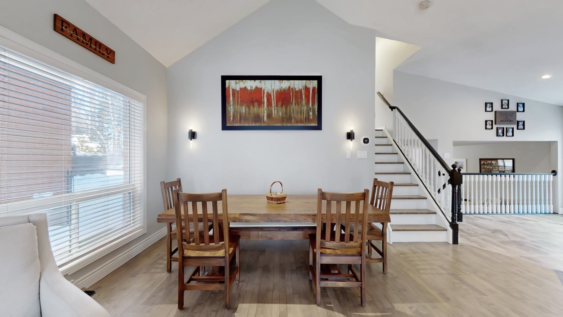 • Open and bright main level with hardwood floors and cathedral ceilings.