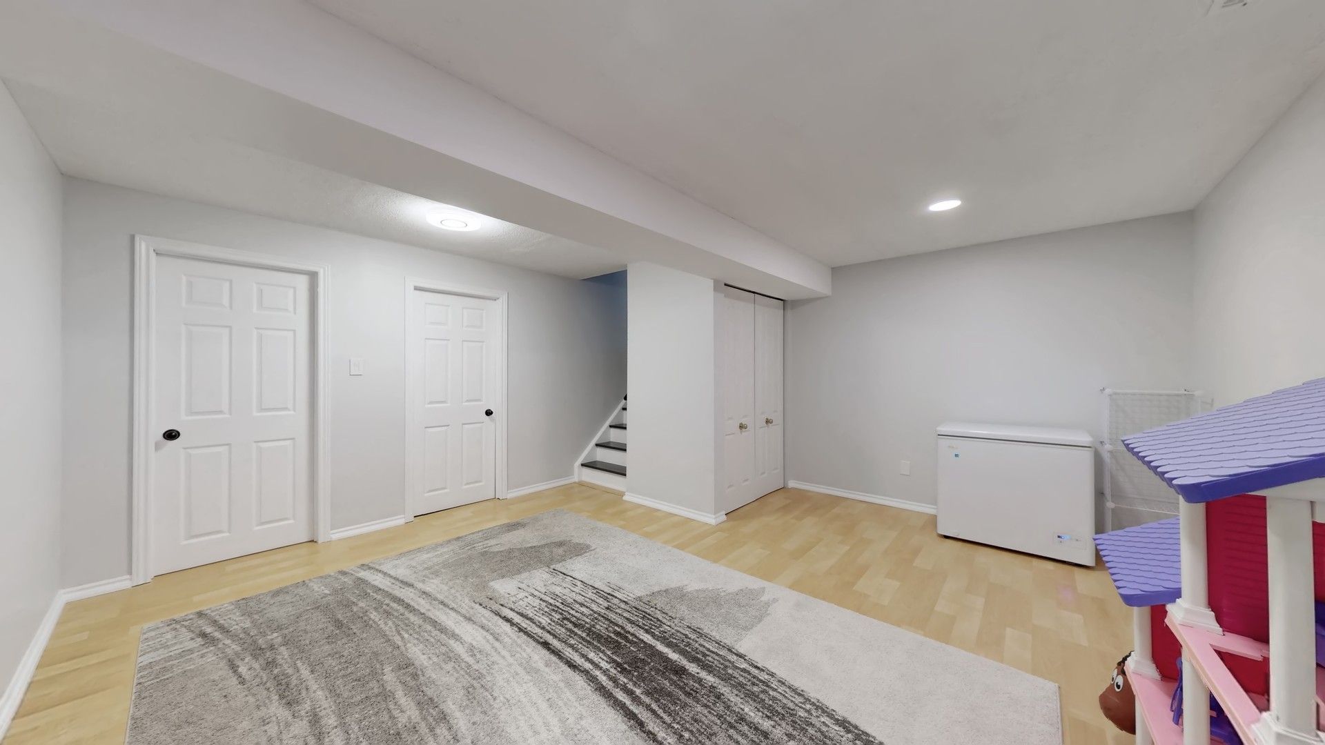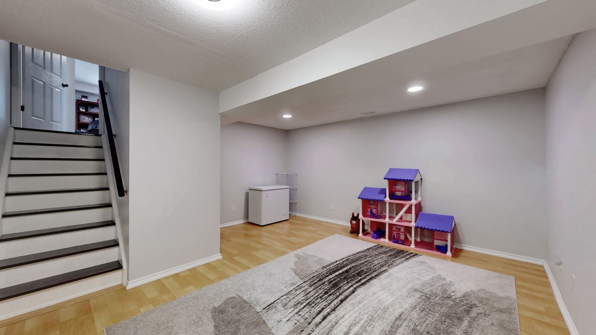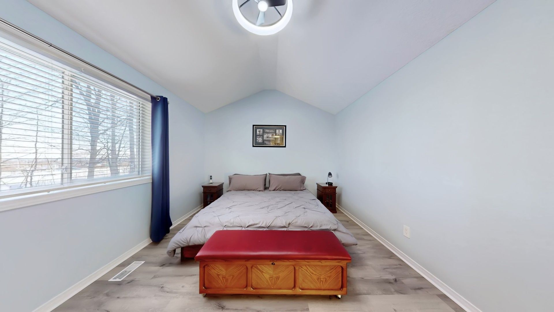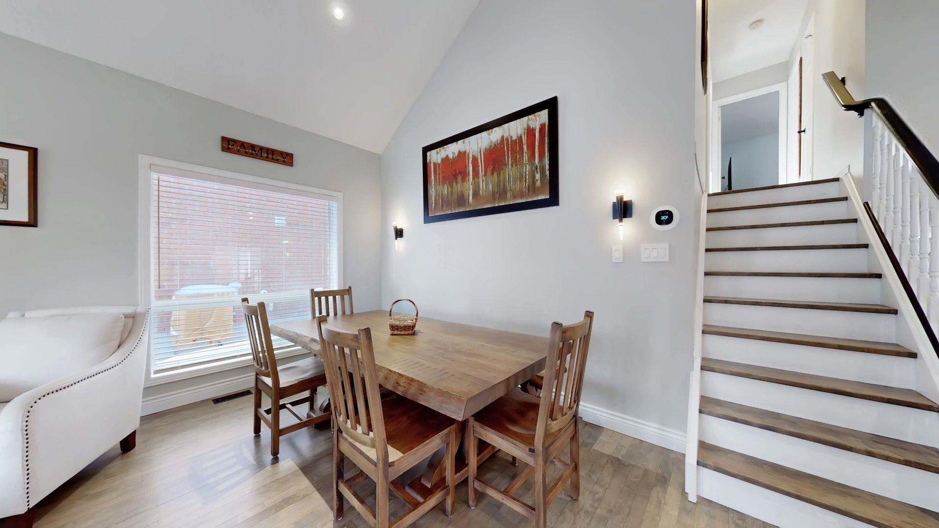 • Open and bright main level with hardwood floors and cathedral ceilings.