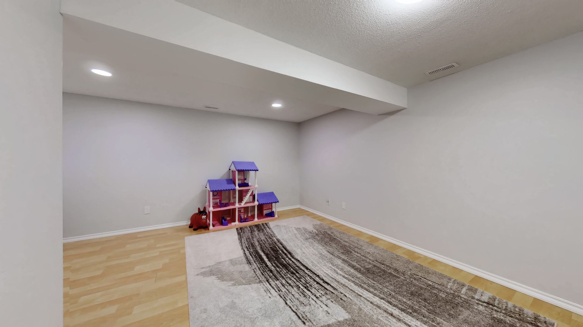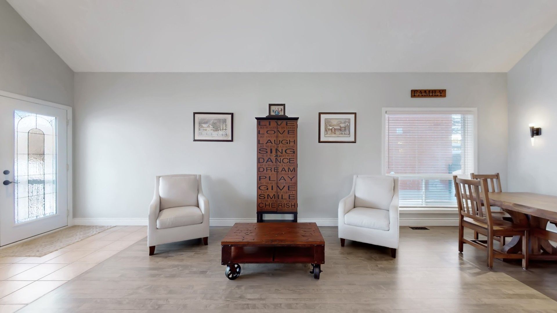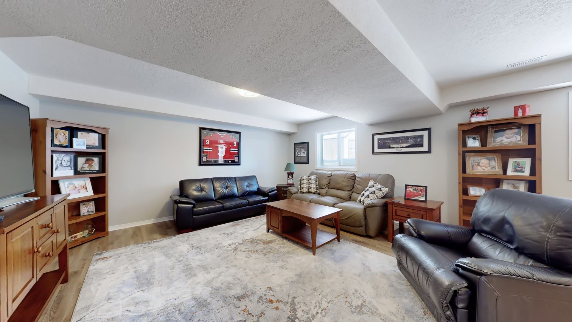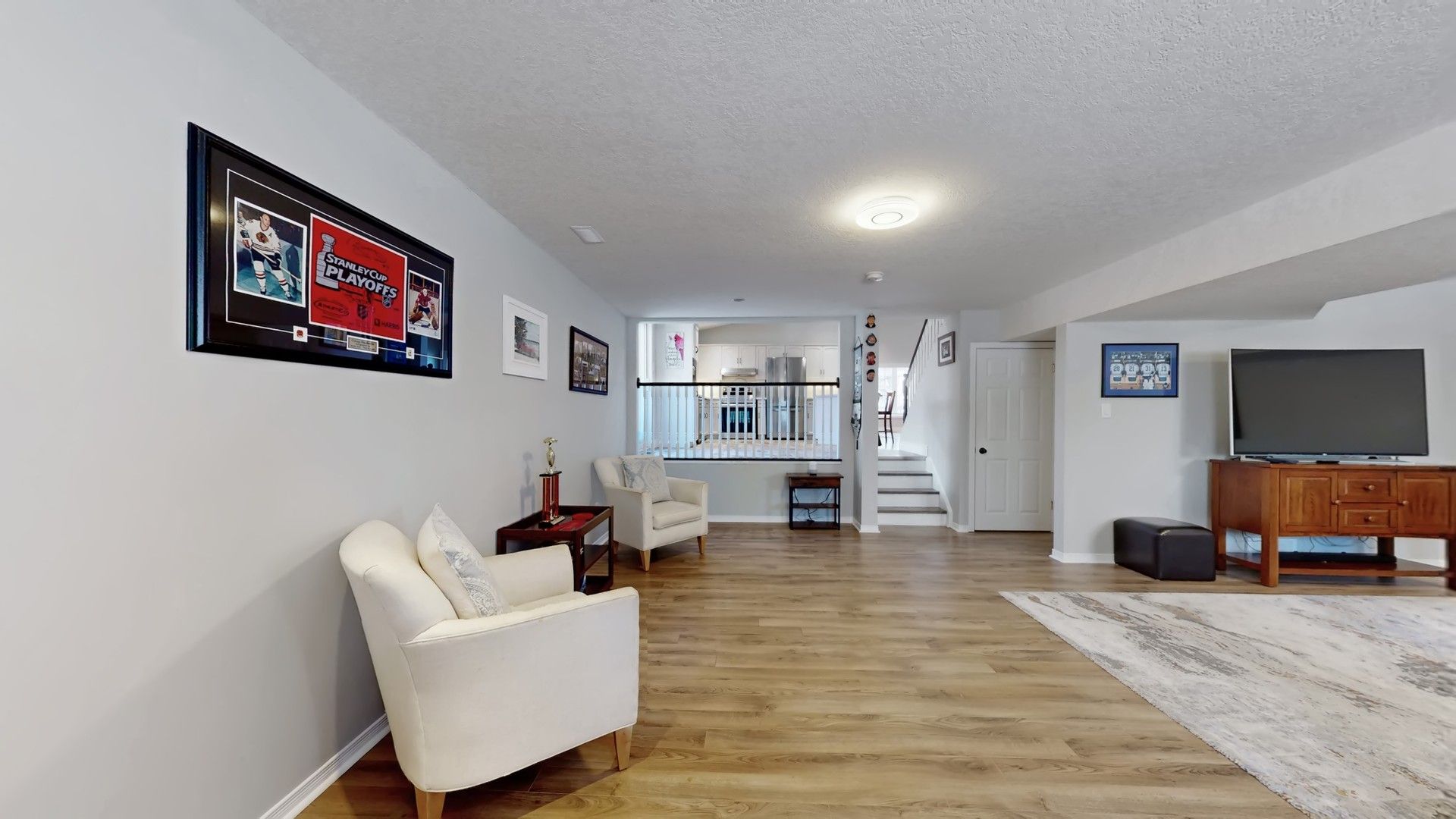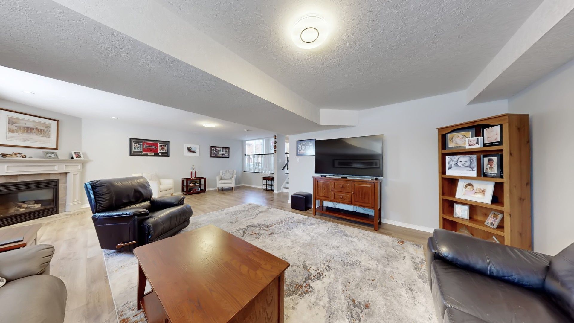 • Large great room with gas fireplace and windows for natural light.