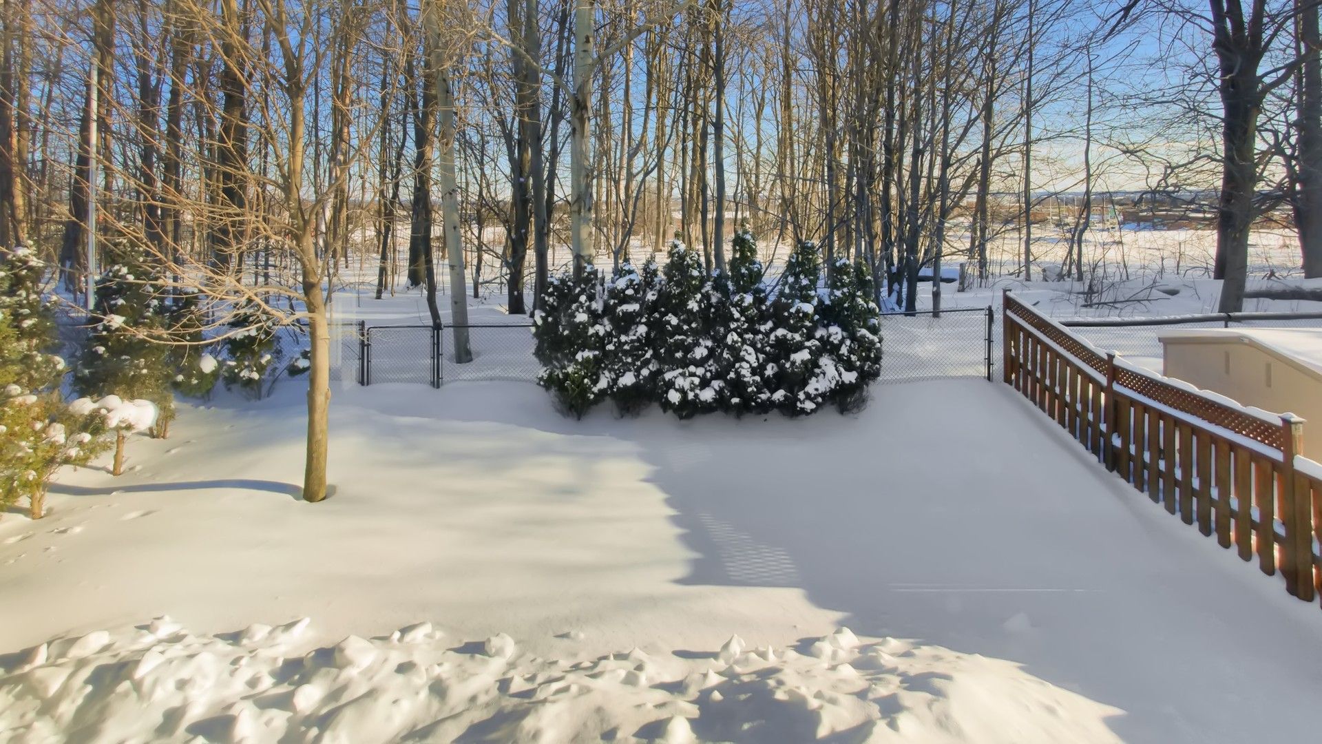 • Private fenced backyard with serene forested ravine views.