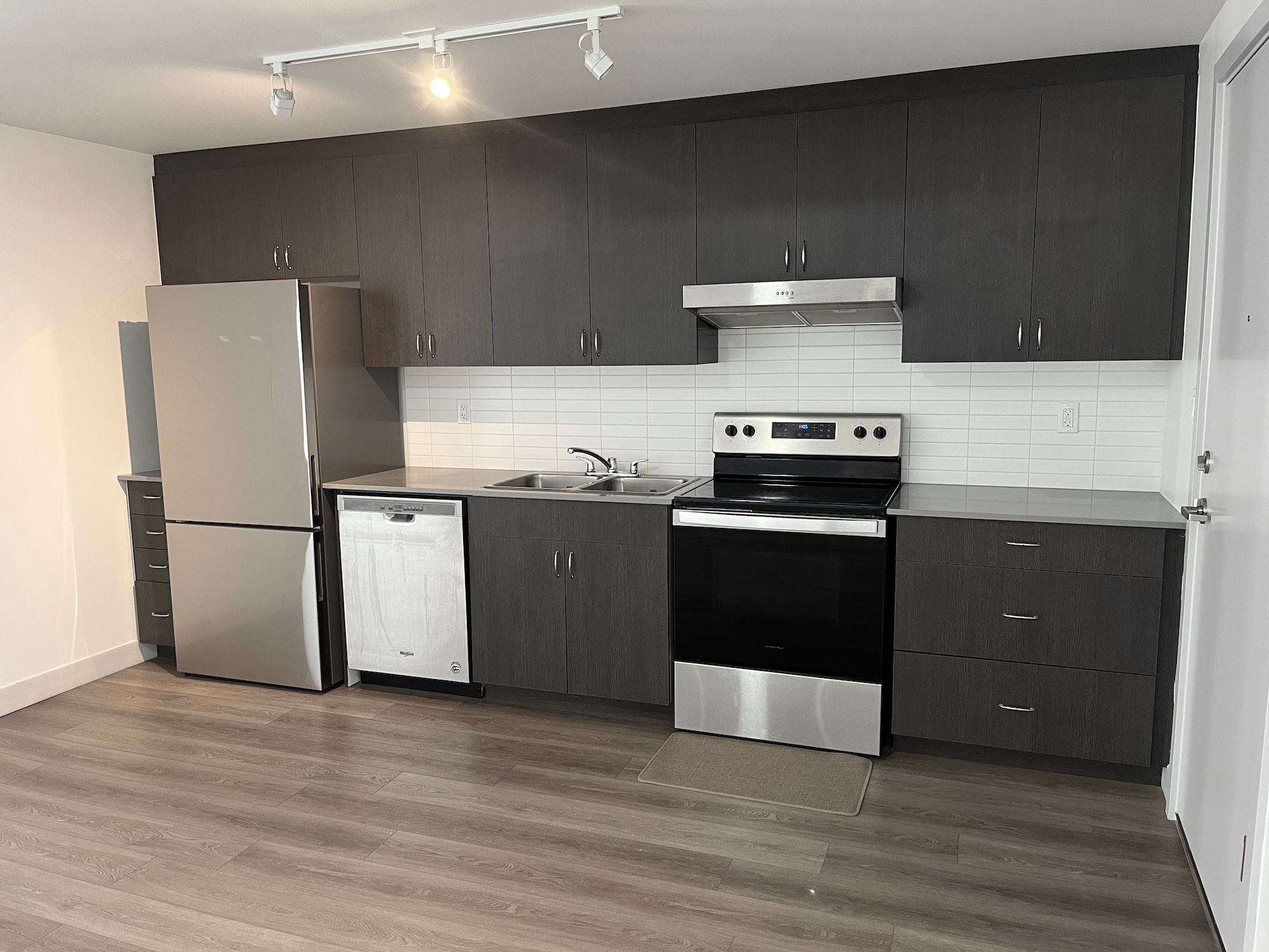 • In-suite laundry and modern stainless steel appliances for convenience.