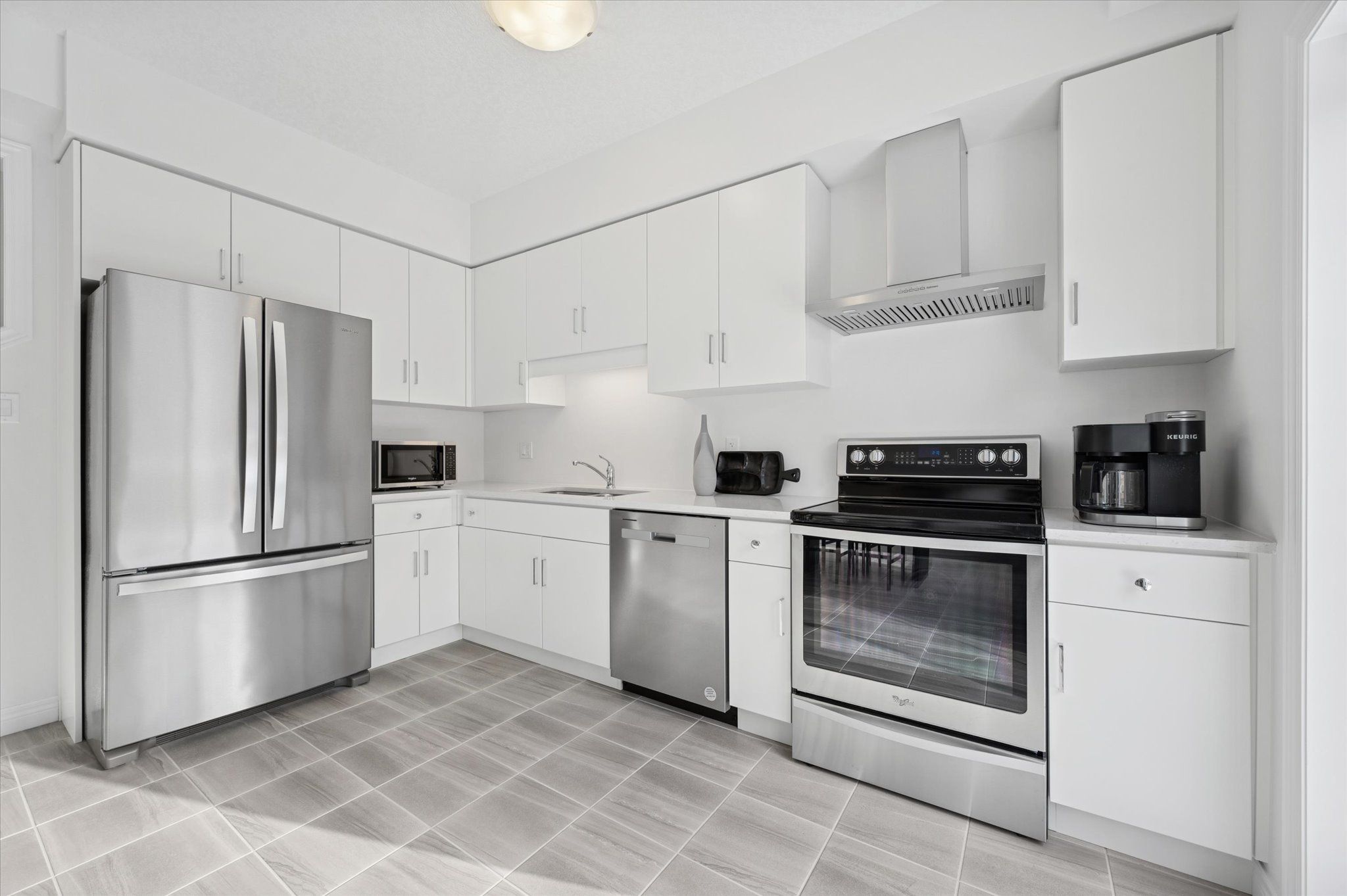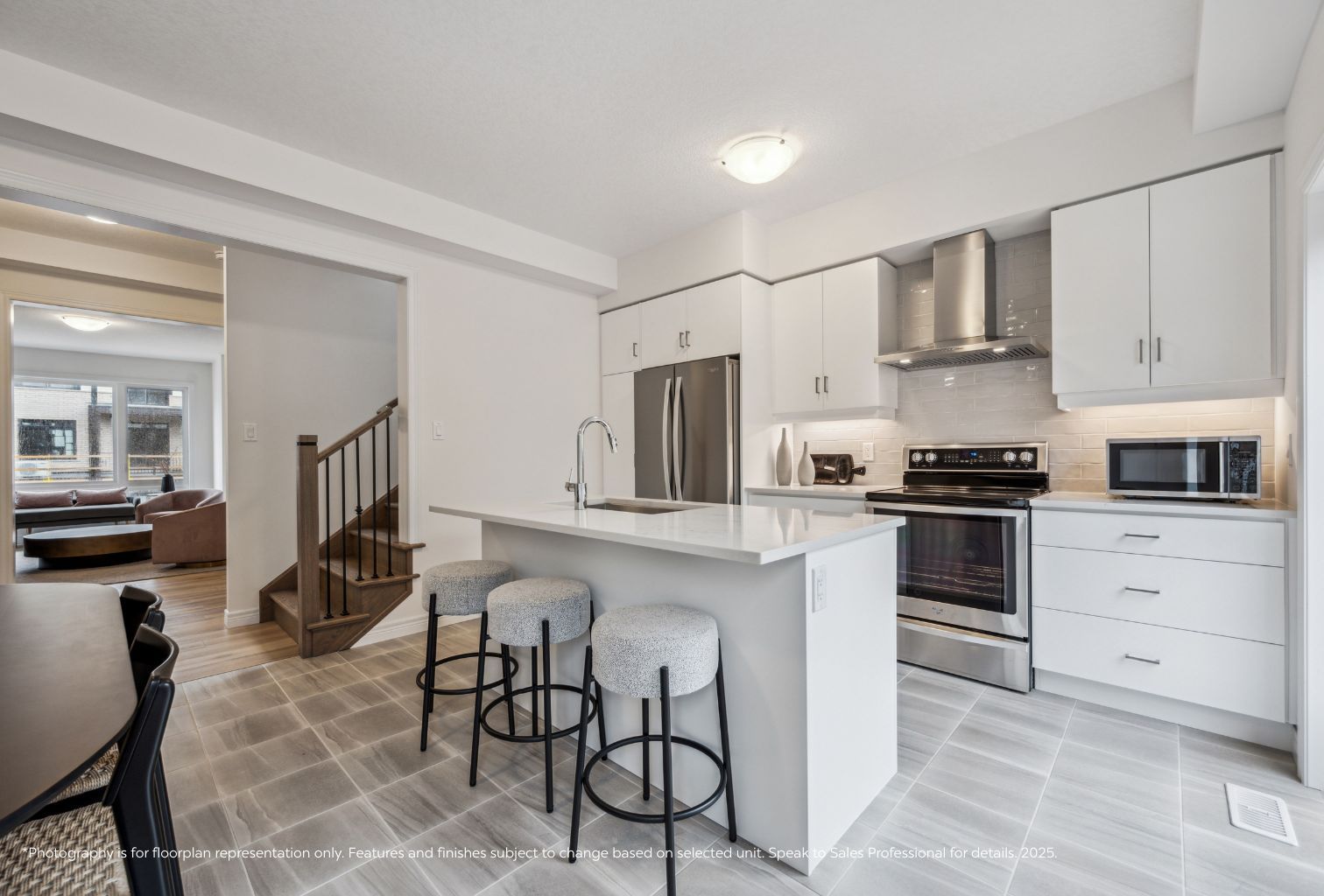 • Open-concept layout with upgraded kitchen and quartz countertops.