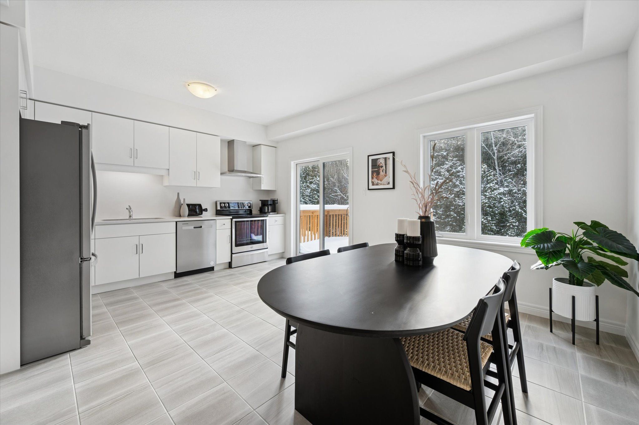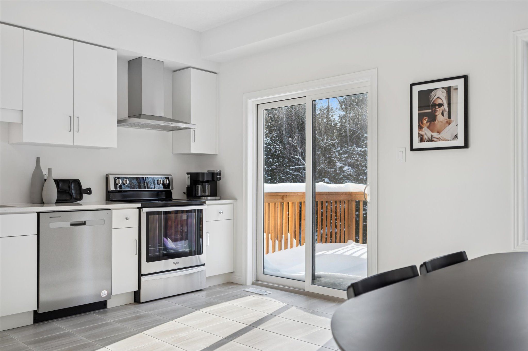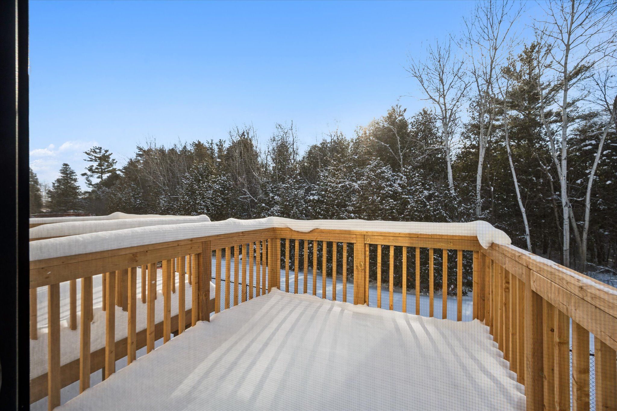• Spacious living area with large windows and walkout to deck.