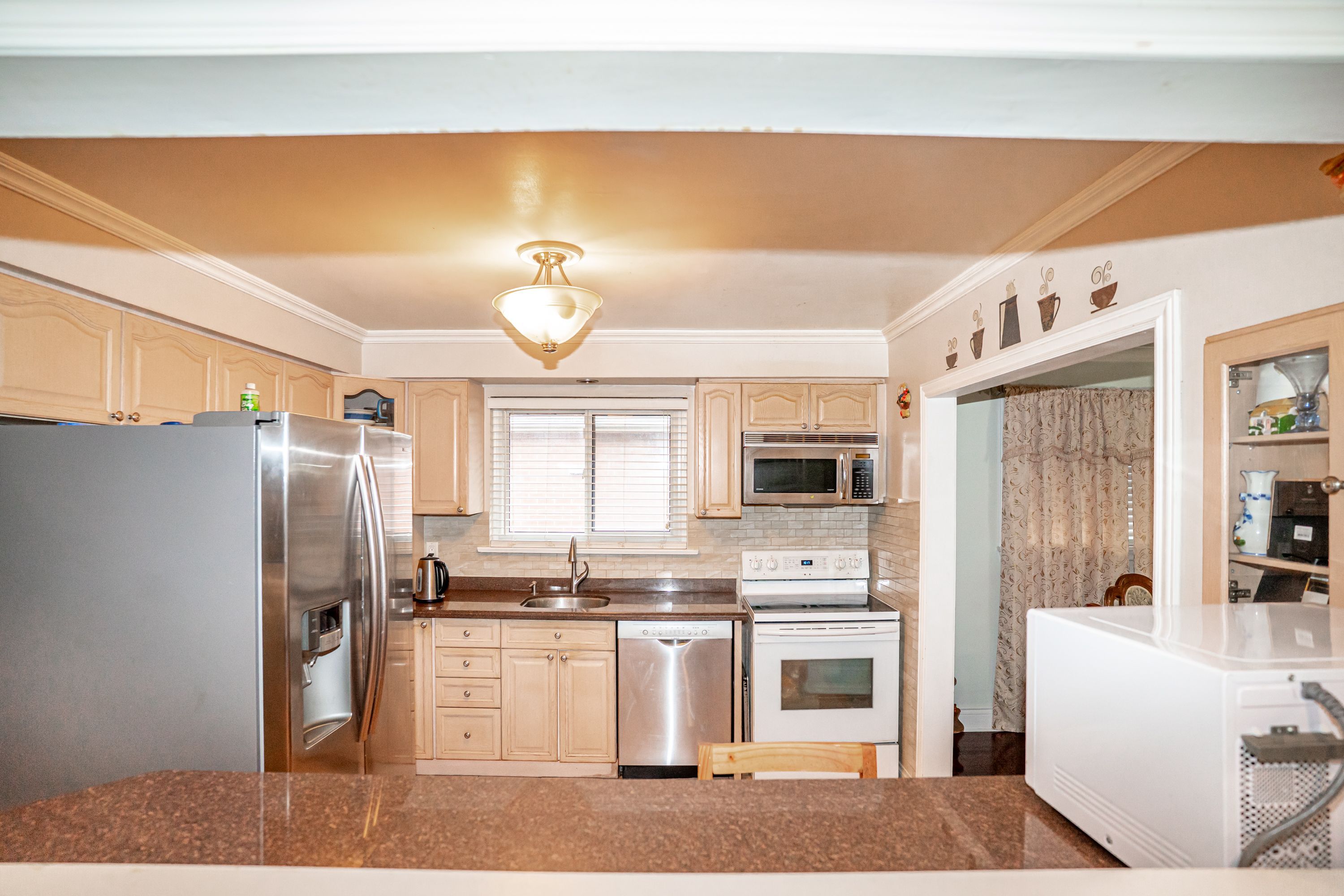 Welcome to 37 carlyle cres, brampton located on huge corner lot with 3 car garage & 9 car parking on driveway features well maintained & beautiful 3+2 bedrooms' home on 60' x 115' lot in prime location close to go transit, close to shoppers world mall, this family home features large, bright & spacious living room overlooks to manicured front yard; walks out to 3-tier deck perfect for summer bbq & gatherings with family & friends; formal dining area overlooks to large upgraded eat in kitchen with granite counter top & breakfast area; 3 generous sized bedrooms with full washroom; 2 separate laundry: 2 washers & 2 dryers (one set on main floor & 2nd in basement); finished basement with perfect in-law suite or for growing family or for extended family features rec room/eat in kitchen/2 bedrooms/full washroom/ laundry with separate entrance... Extra wide driveway triple car garage with total 12 cars on driveway.