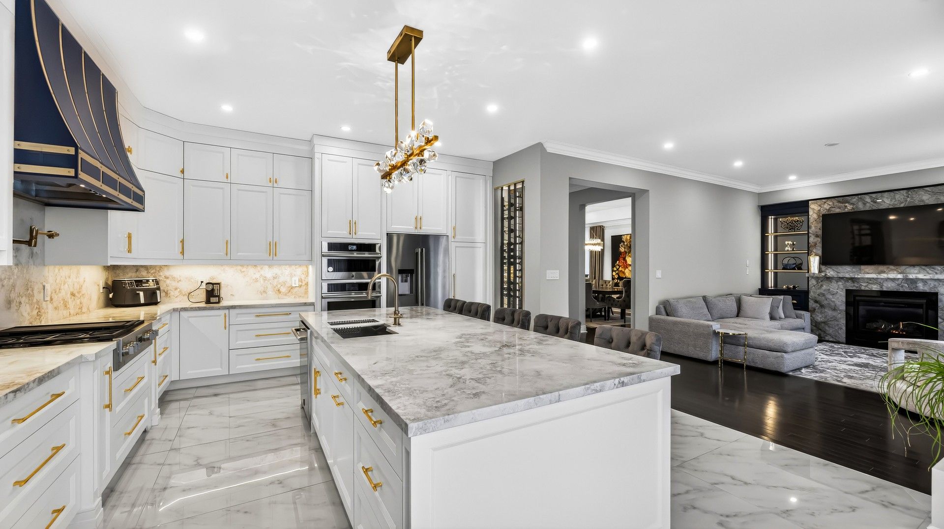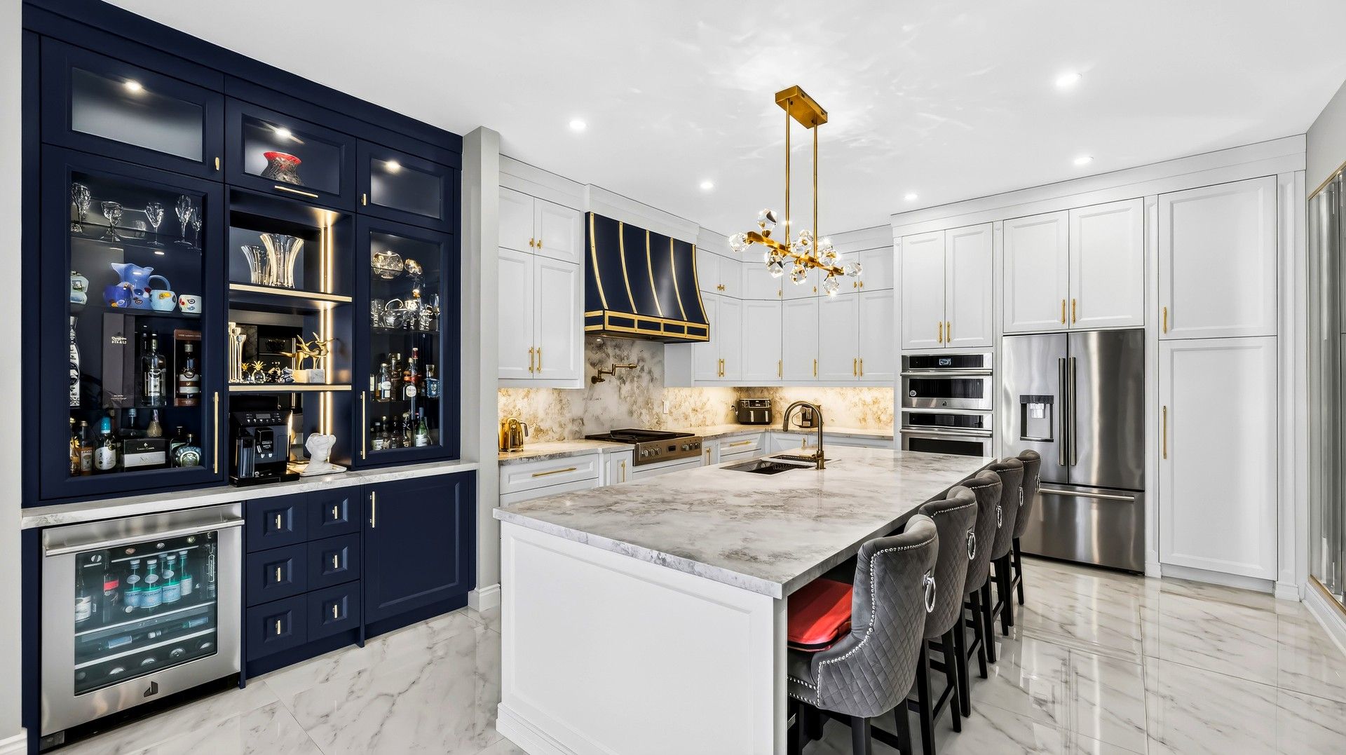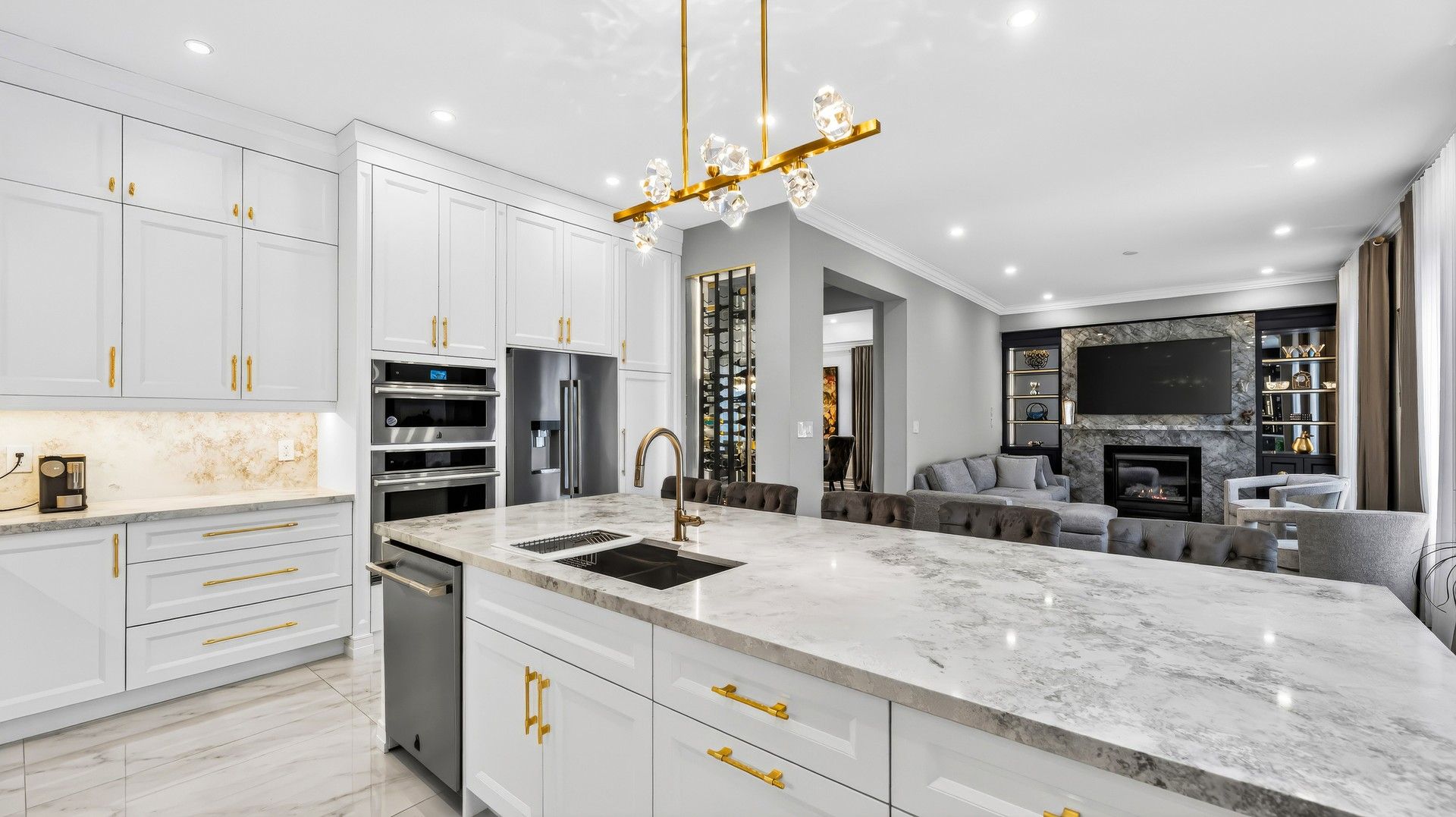 • Modern kitchen with quartz countertops and stainless steel appliances.
