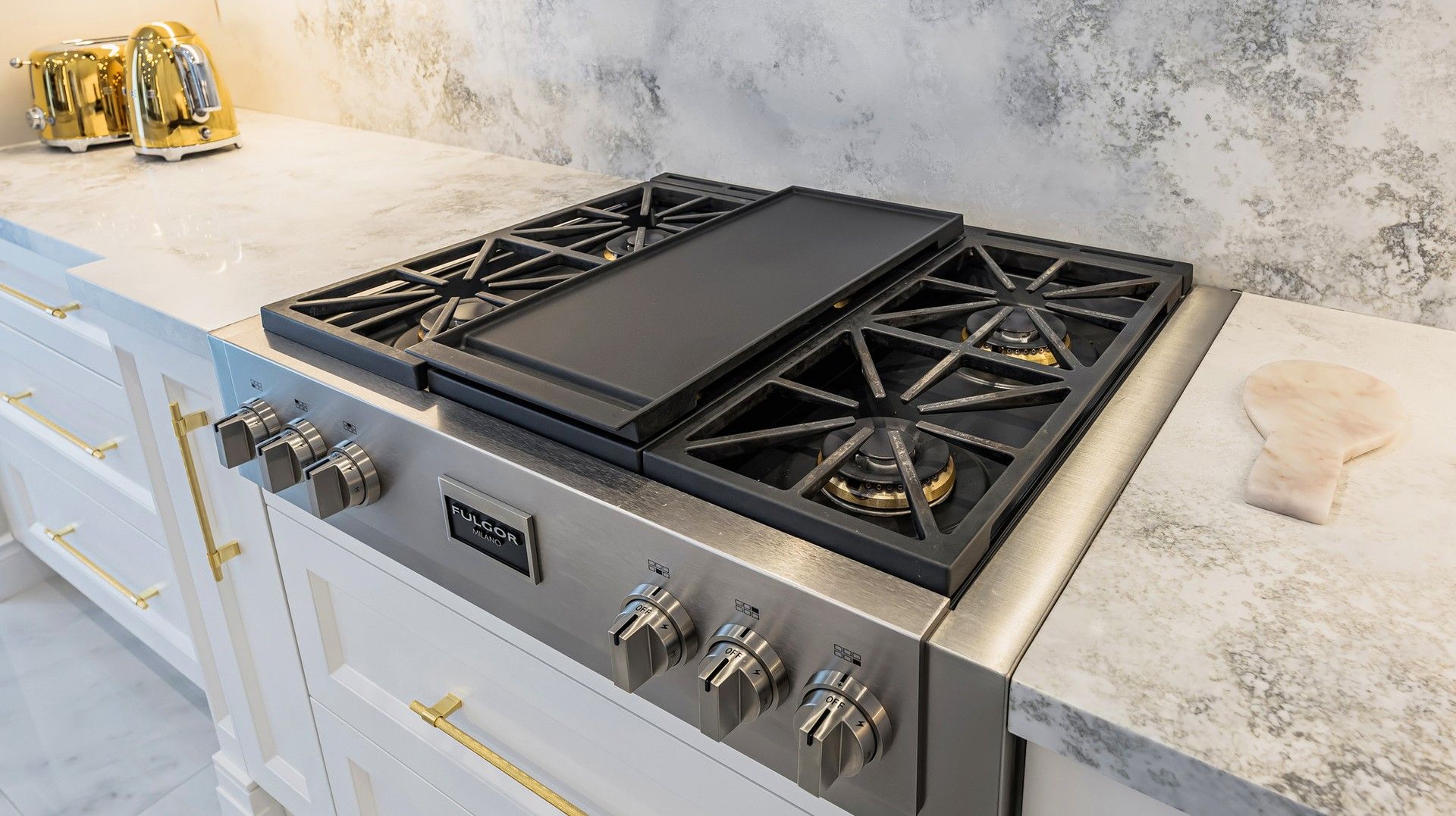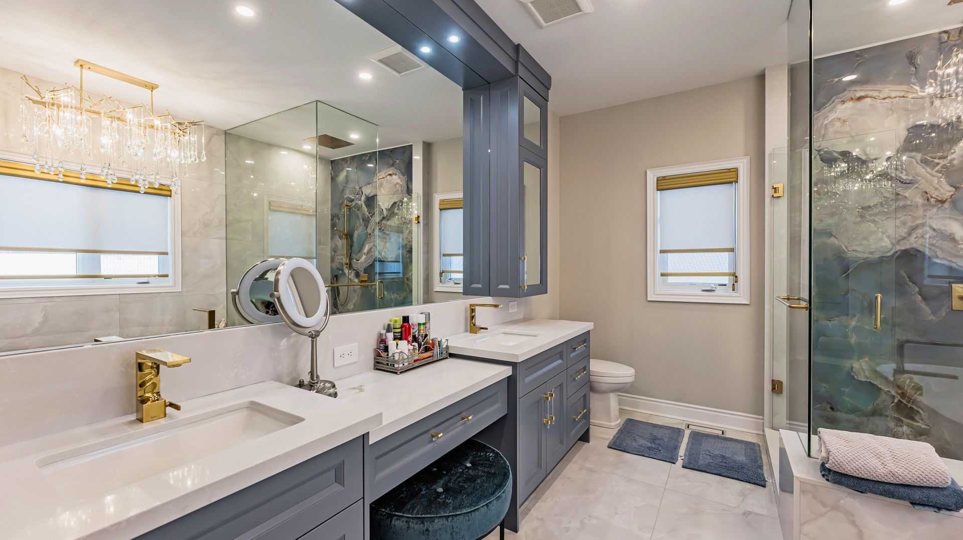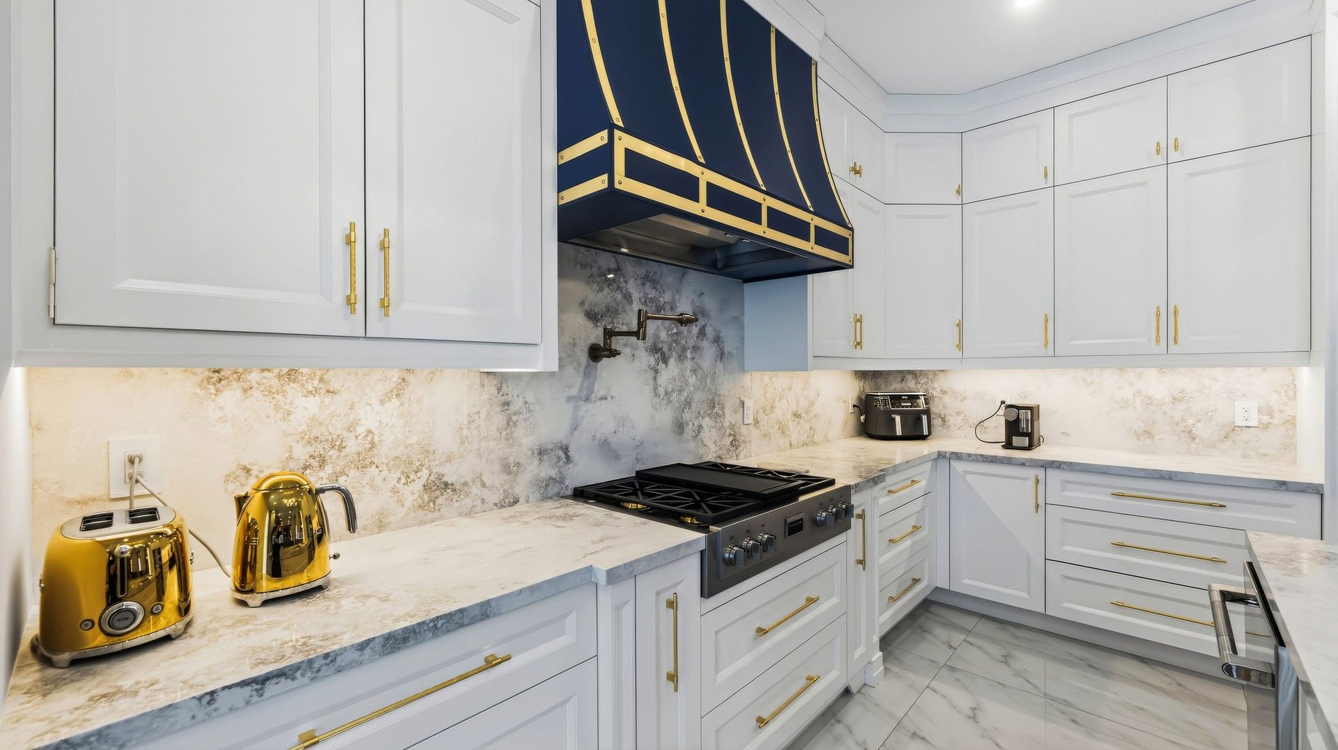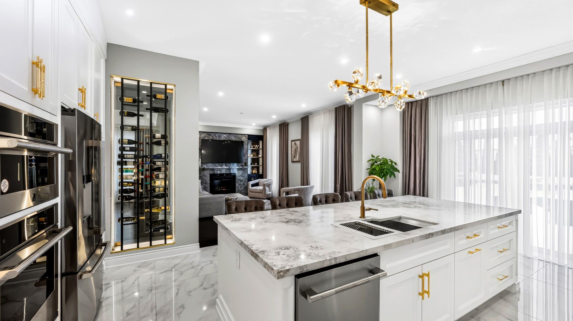 • Modern kitchen with quartz countertops and stainless steel appliances.