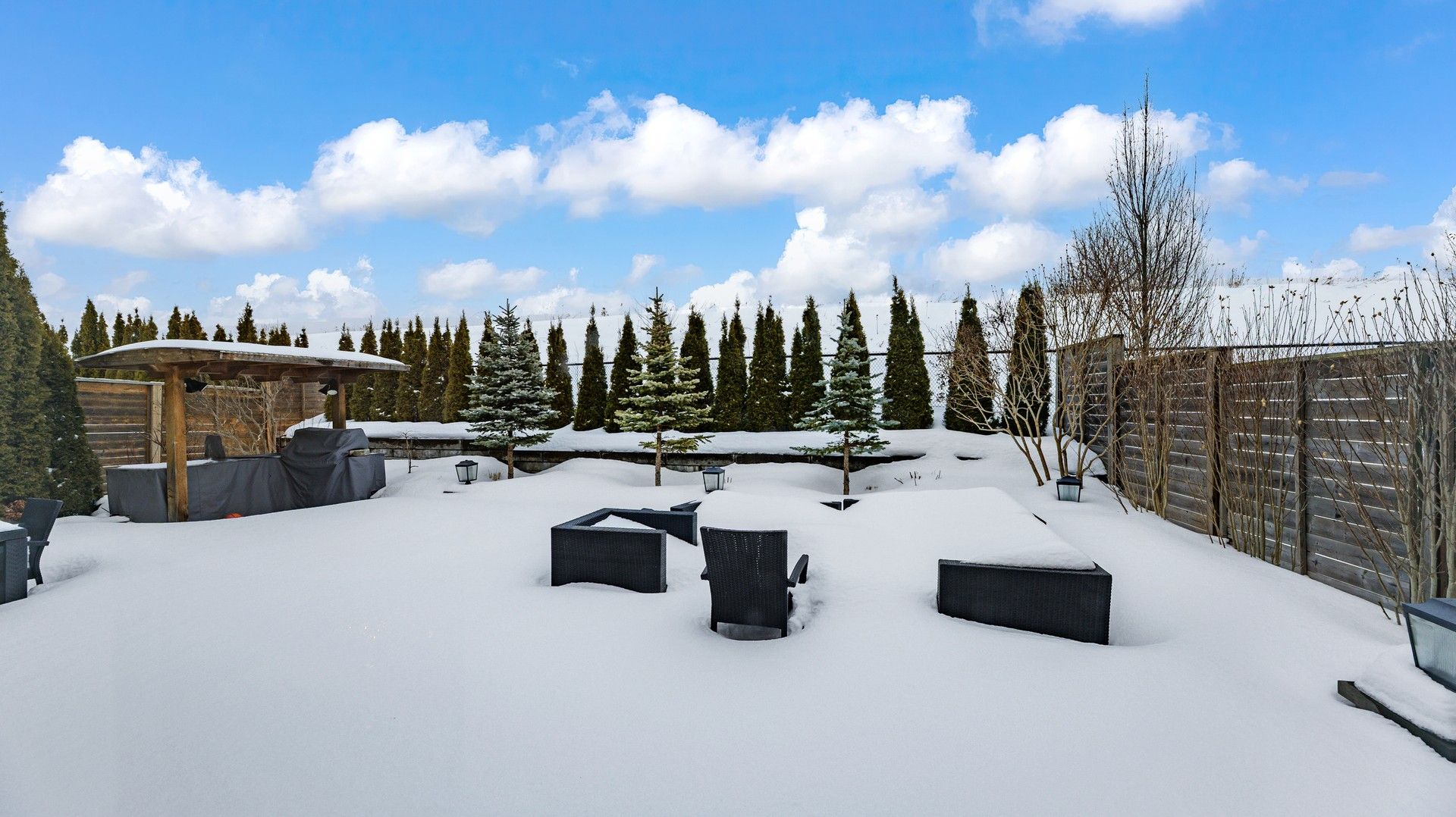 • Private backyard overlooking the ravine for tranquil outdoor space.