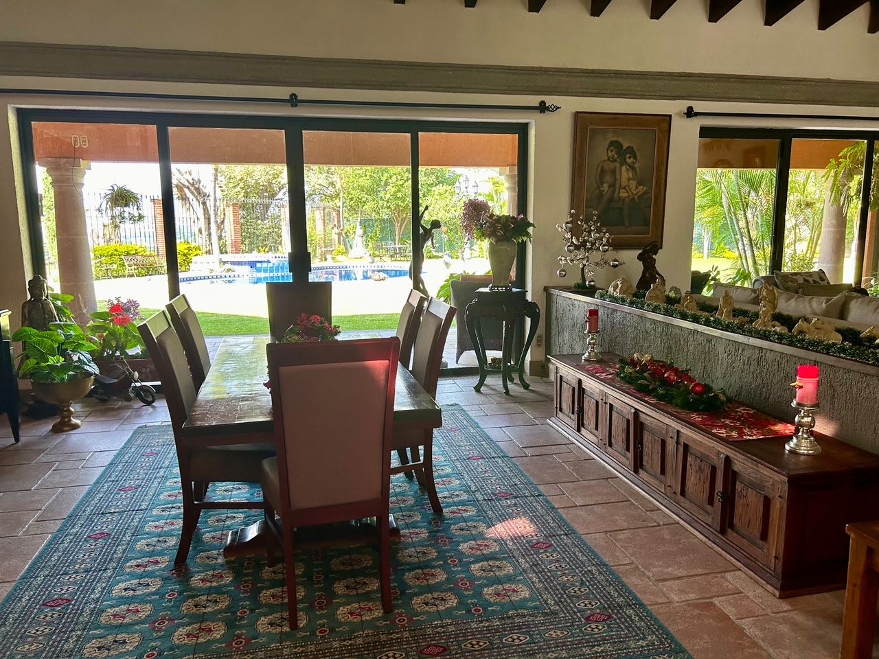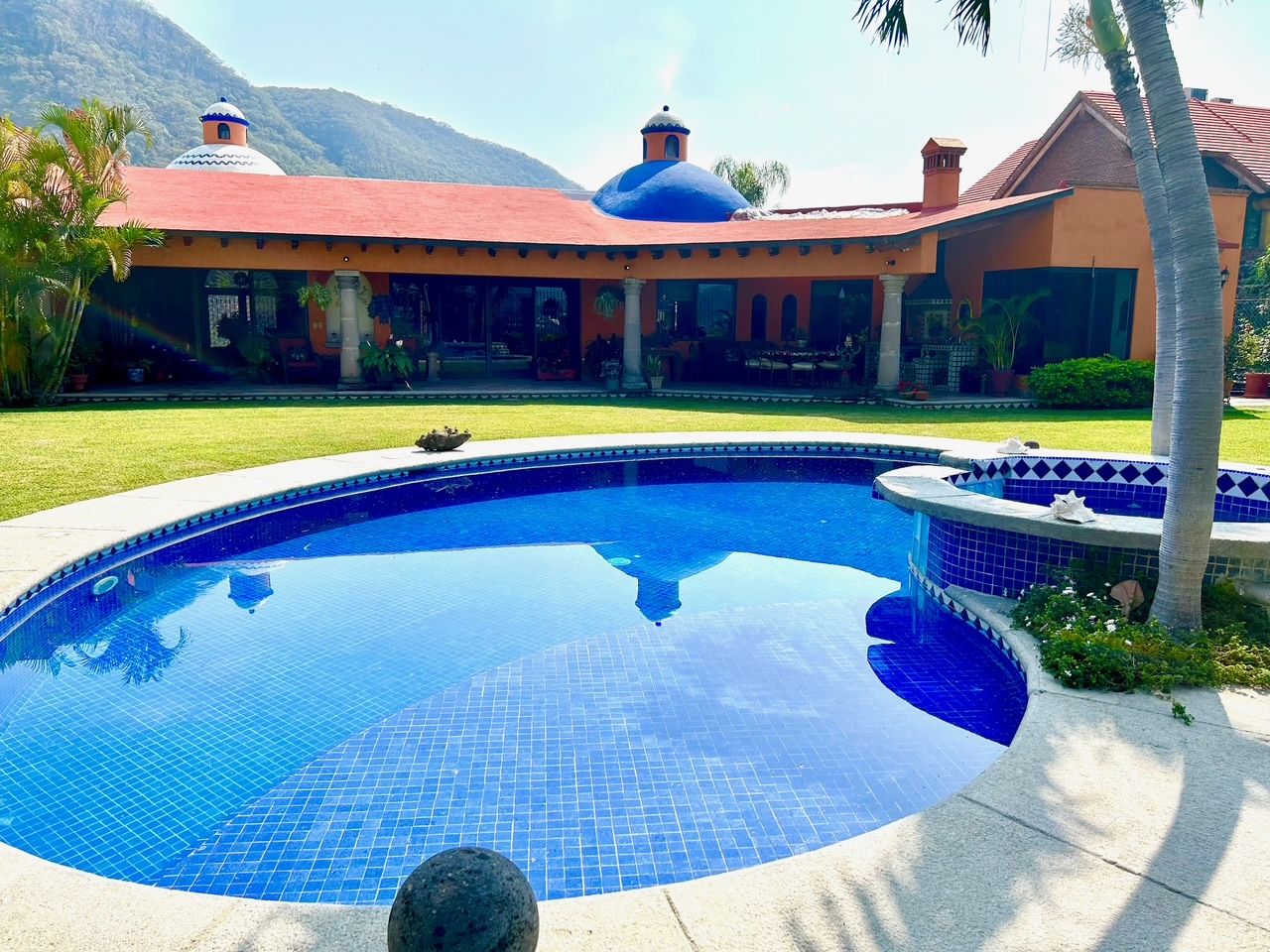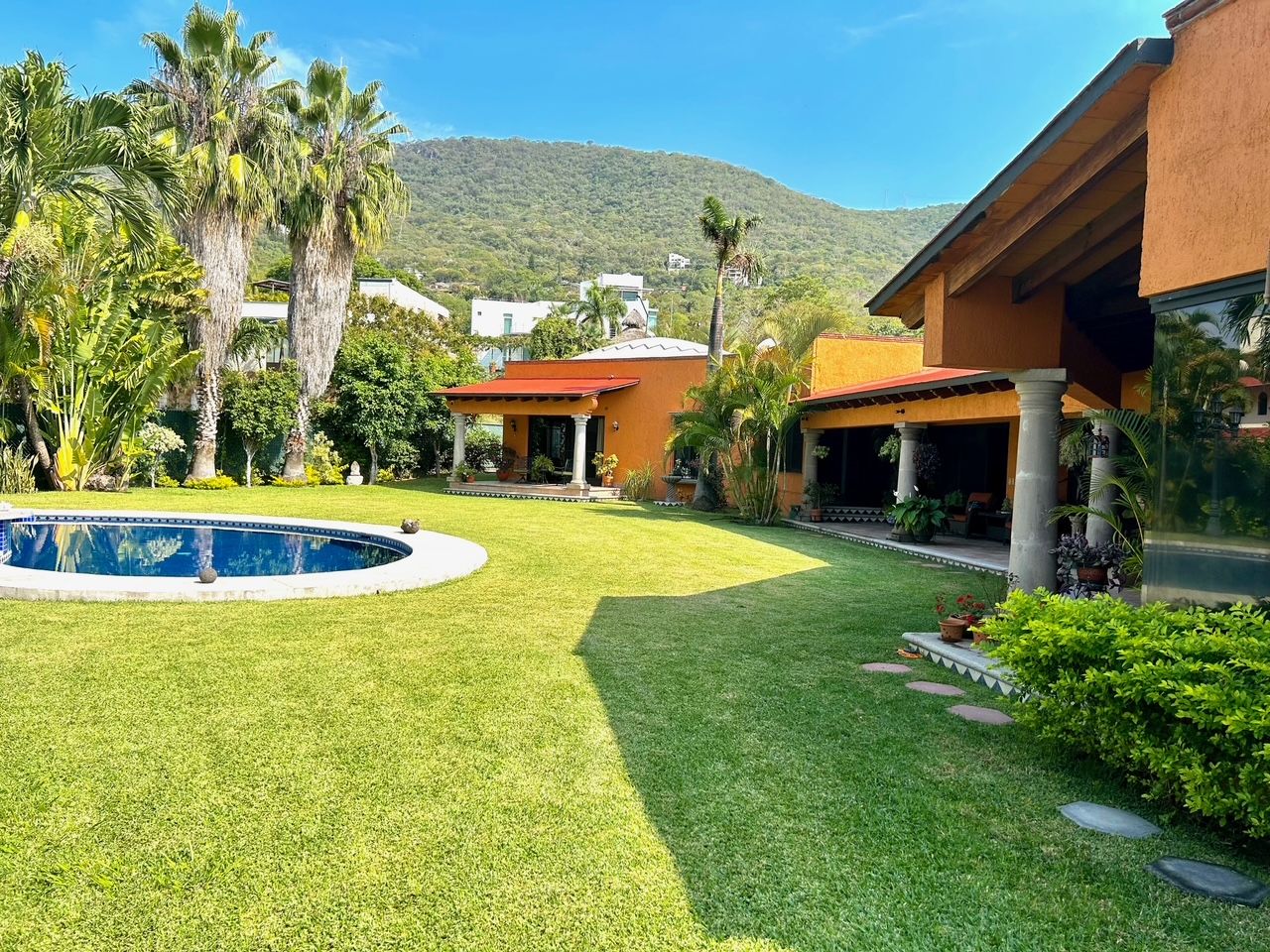 Welcome to hacienda en la montaña in the exclusive club de golf san gaspar! Just one hour south of mexico city, discover the perfect vacation escape or full-time residence only minutes from the city of eternal spring, cuernavaca, famous for its year-round sunny weather, lush landscapes, and vibrant cultural scene the ideal backdrop for this incredible hacienda-style home. Experience timeless mexican charm in this one-of-a-kind bungalow sitting on an expansive 17,000 sq ft lot and offering over 7,000 sq ft of living space, this home blends traditional elegance with modern comfort, fine craftsmanship, and resort-style amenities. Architectural highlights include catalan vaulted ceilings, exposed wooden beams, beautiful stonework throughout, and a hand-carved fountain at the main entrance. Offering 4 bedrooms, 6. 5 bathrooms, a great room, a formal dining room an office, tv and family rooms, a storage room, and more. The layout is designed for both relaxation and entertaining. The primary bedroom is a private retreat, complete with a walk-in closet, spa-like ensuite, and a serene terrace overlooking the landscaped gardens. The three additional bedrooms each feature their own bathroom and ample closet space. Outdoors, enjoy resort-style living: a sparkling pool, inviting jacuzzi, and breathtaking views of the surrounding mountains and golf course. A massive terrace overlooking the gardens is fully equipped perfect for alfresco dining and entertaining. The property also offers parking for up to 8 vehicles. Nestled within the exclusive san gaspar gated community, the residence enjoys privacy, security, and direct access to the prestigious san gaspar golf club. Residents of this sought-after enclave appreciate its tranquil atmosphere, manicured grounds, and sweeping views of the valley. Hacienda en la montaña is more than a house, its a lifestyle of sun, tranquility, and leisure, all within easy reach of mexico city.