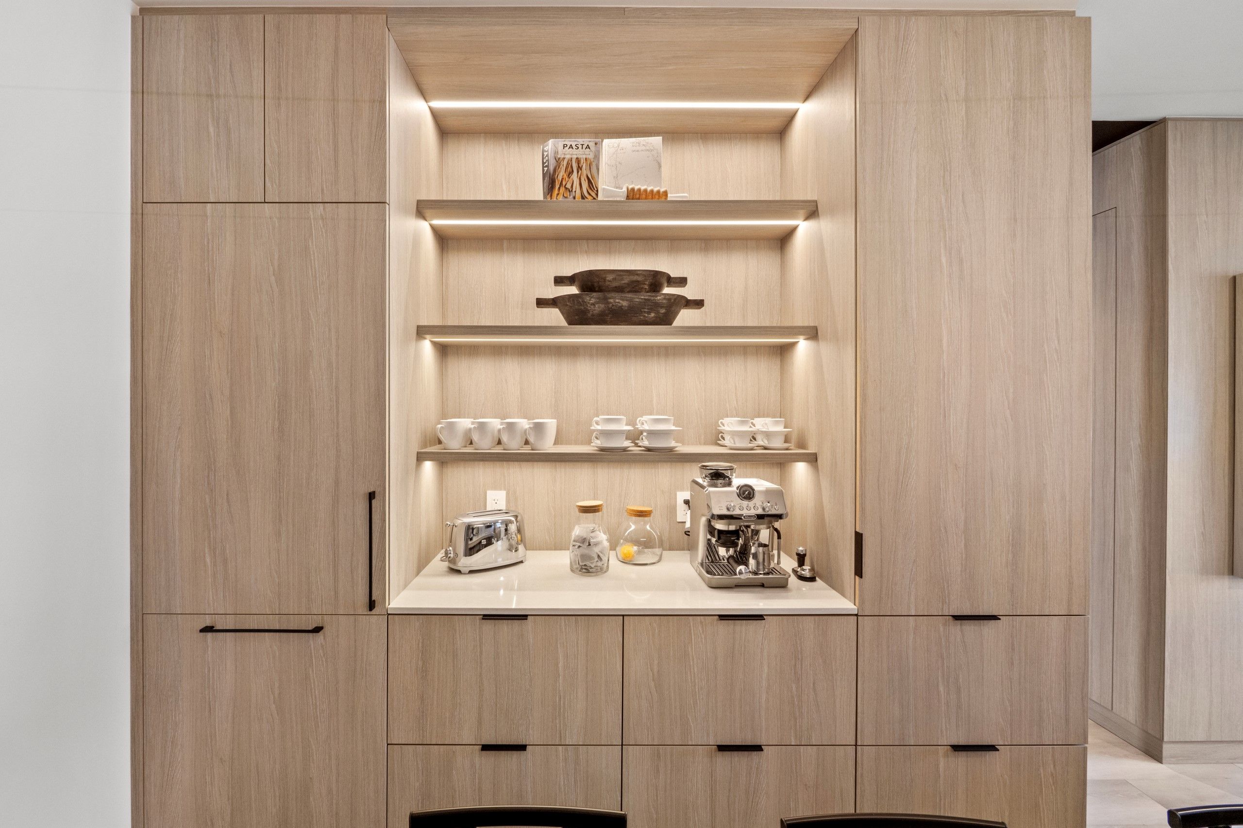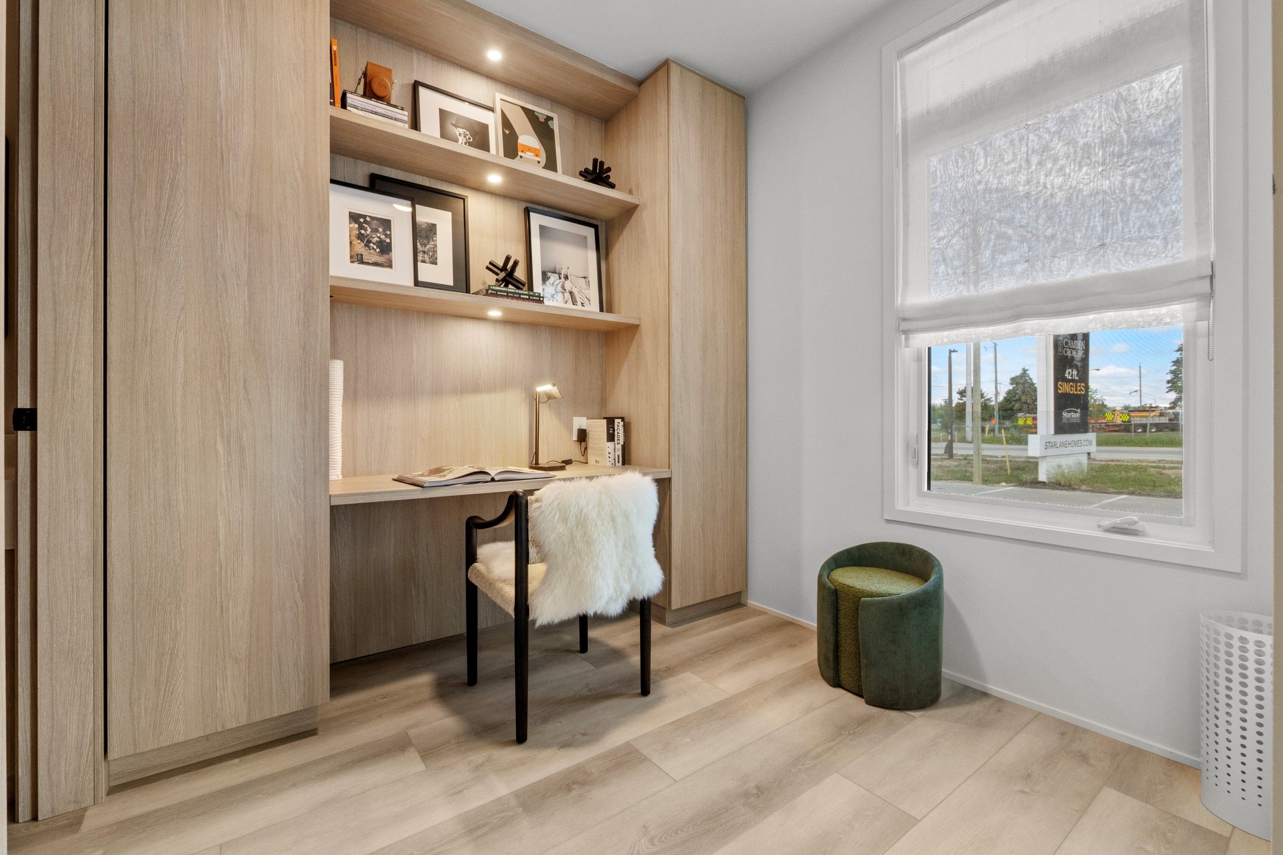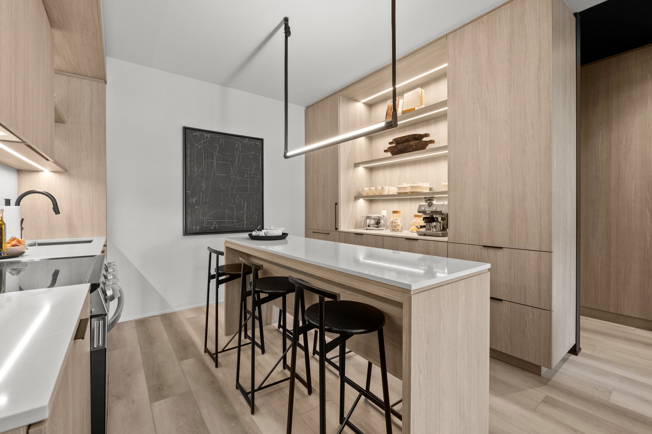 • Open-concept layout with natural wood accents throughout.