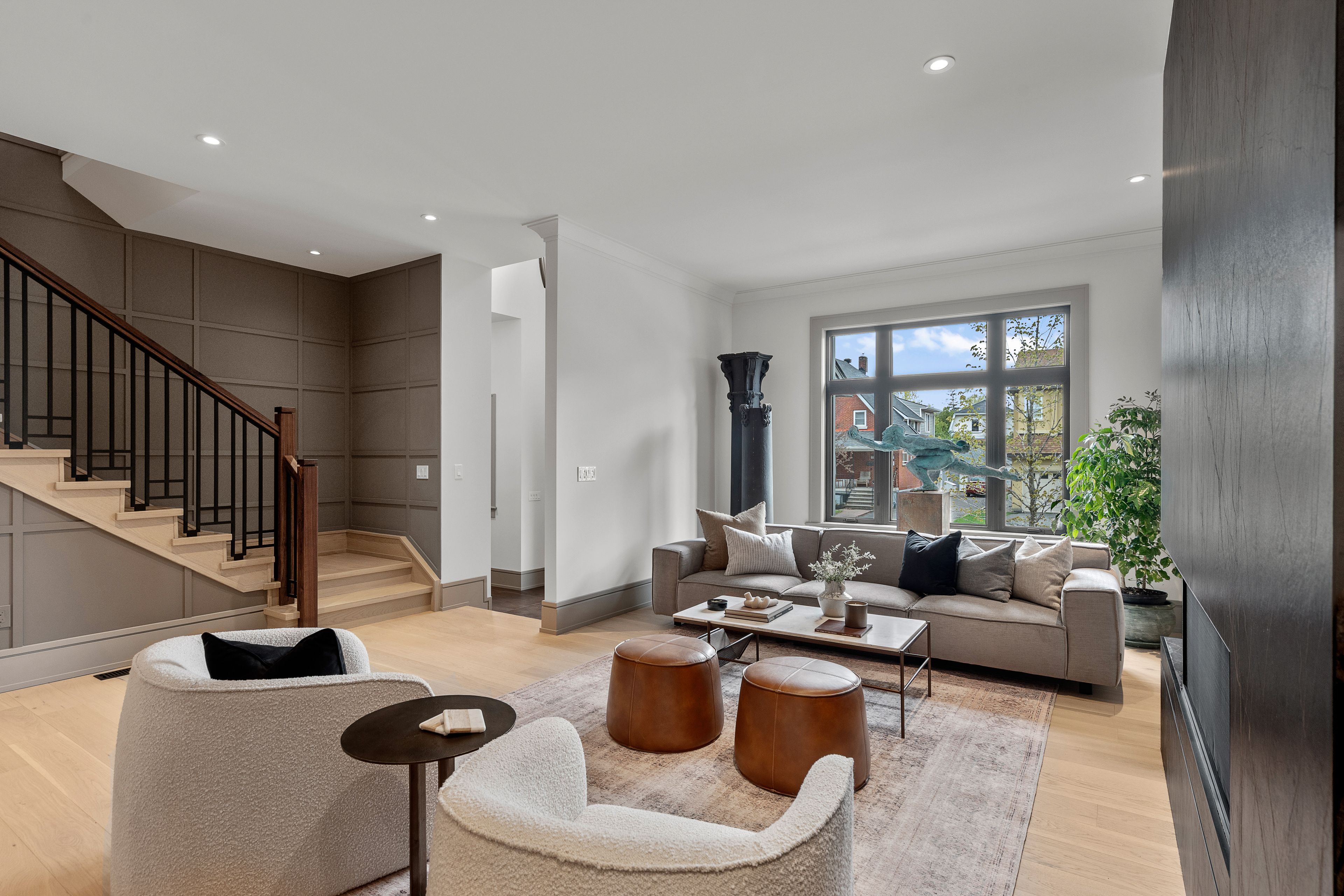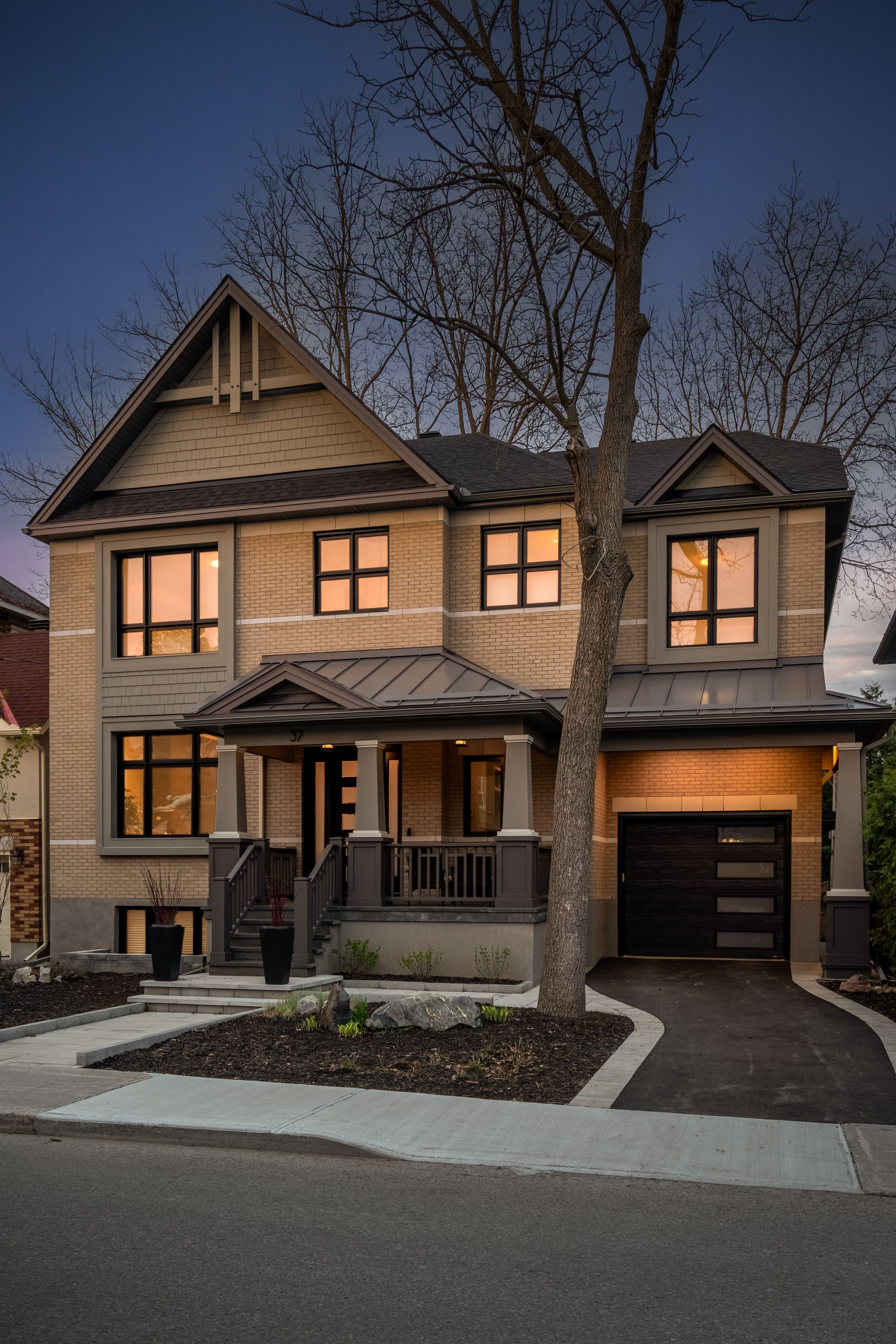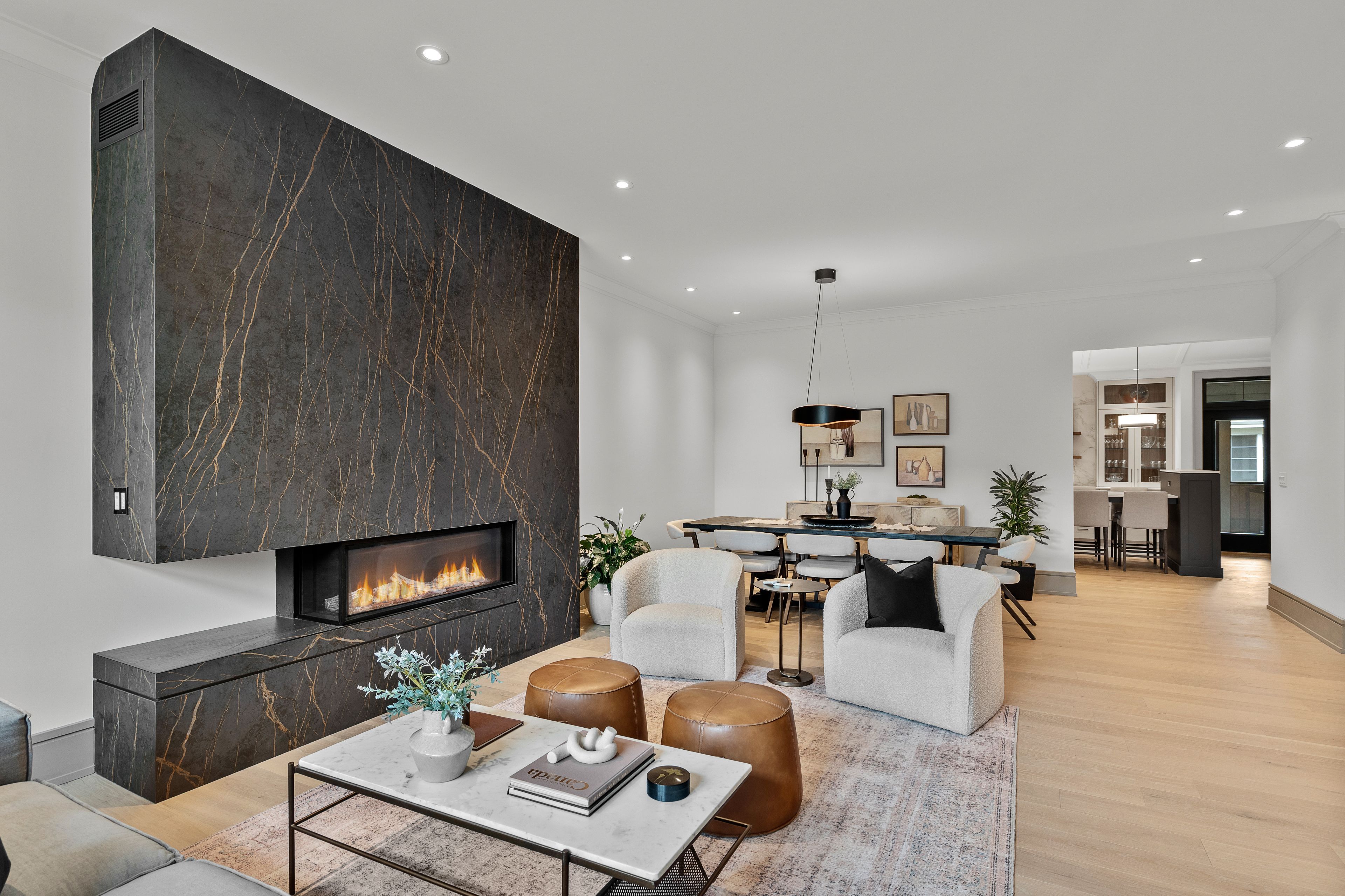 This high-quality, 3,500 sq. Ft. Custom home in the heart of wellington village is not only beautiful, the layout is functionally fabulous and features a rare double-height garage w/ reinforced floors, zoned hvac and elevated ceiling heights. The entry is anchored by a dramatic 22 ft high foyer w/ custom walnut niche, walnut light fixtures, and heated porcelain floors that lead to an adjacent mudroom or the open-concept living & dining area featuring a floor-to-10-foot-ceiling-height fireplace clad in dekton porcelain slabs & a custom staircase featuring walnut handrails and newel posts milled from a tree once on the property. At the heart of the home, a chef-inspired kitchen boasts a barrel-vaulted ceiling that extends thru to the connected family room, dekton countertops & walls, 10 ft island, a beverage station & premium fisher & paykel appliances and an adjacent screened porch. Arriving at the second level, you're met w/ a 2nd barrel-vaulted ceiling, 9 ft high and four spacious bedrooms all with ensuite bathrooms & a nursery/office. The primary suite features his & hers walk-in closets & an ensuite w/ dekton counters & shower surround, wood-accent shelving as with other bathrooms, & a free-standing tub. A well-appointed laundry room with a proper sink, quartz counters & ample storage. The lower level provides bonus living space w/ a sprawling recreation room w/ rough-in for a bar, a bedroom w/ an ensuite, a powder room, & heated flooring throughout. 8'-4" ceilings, w/ pot lighting & lvp wide-plank floors maintain the character of the home's upper levels. The remainder of flooring throughout the home is wide-plank, white oak engineered hardwood. The landscaped, fully fenced backyard includes an interlock patio, a cedar pergola-topped bbq deck, defined garden beds & mature trees. Set on a tree-lined street in wellington village, this home is just steps from elmdale public school, parkdale market, and the shops, cafés, & restaurants of wellington west & westboro.
