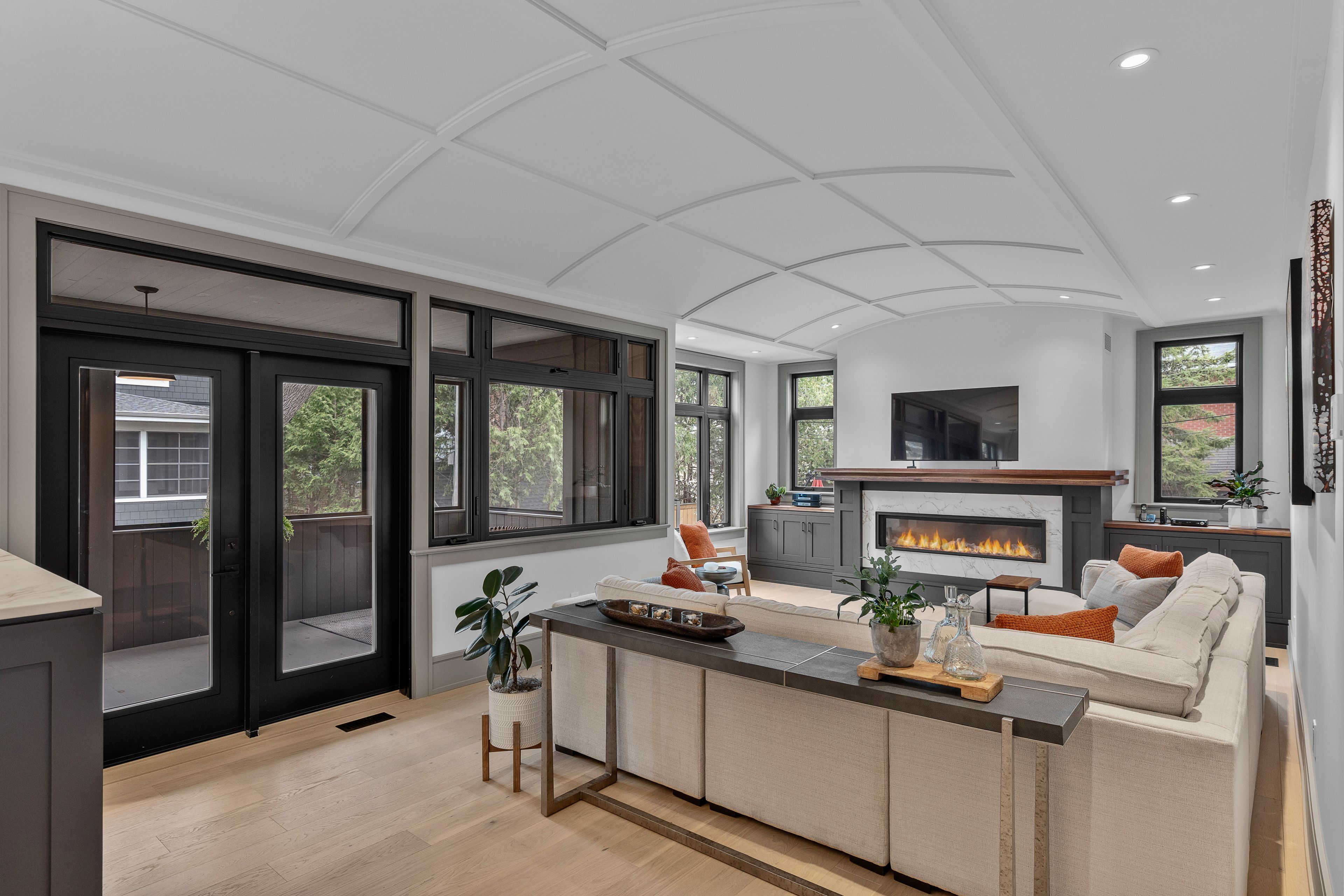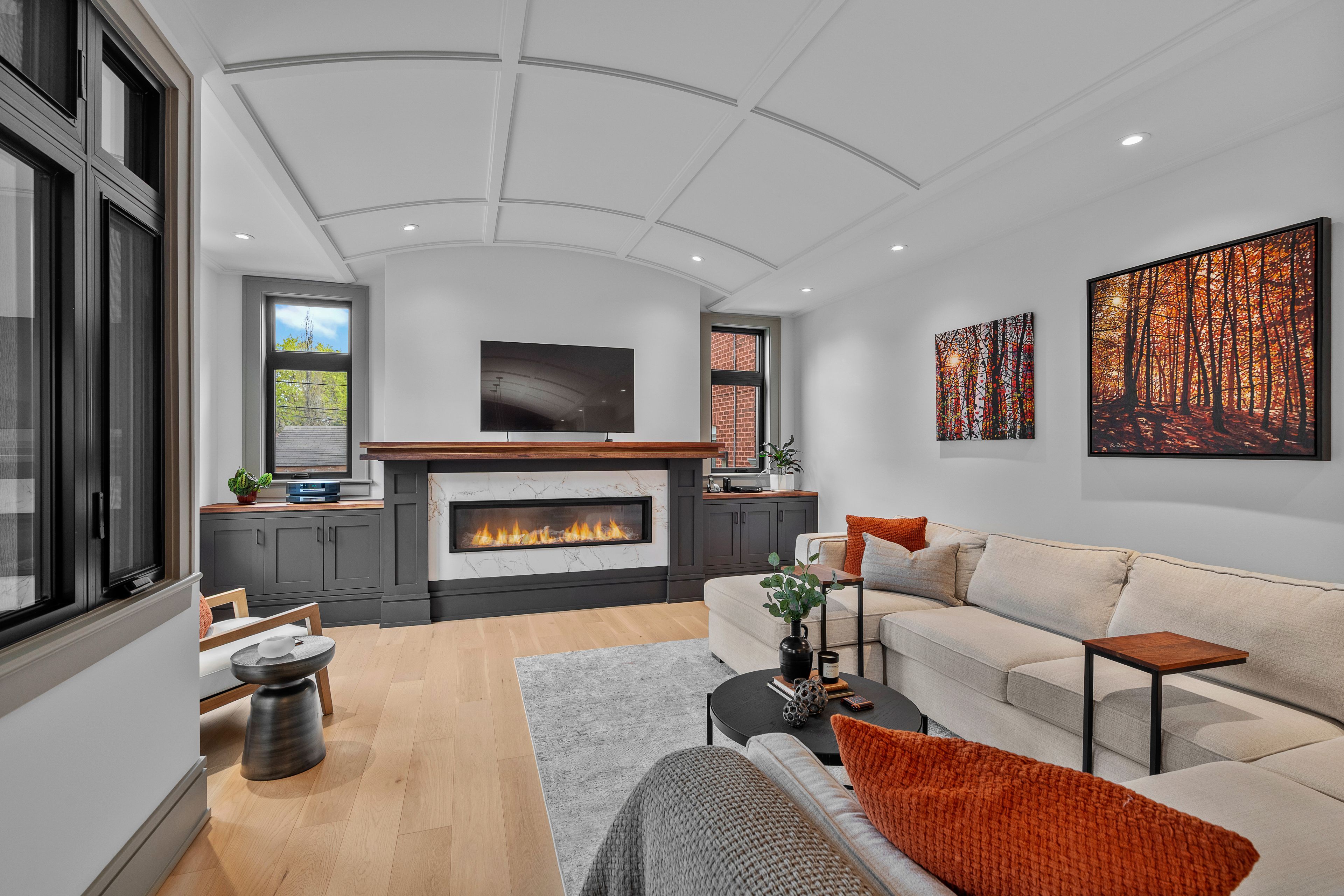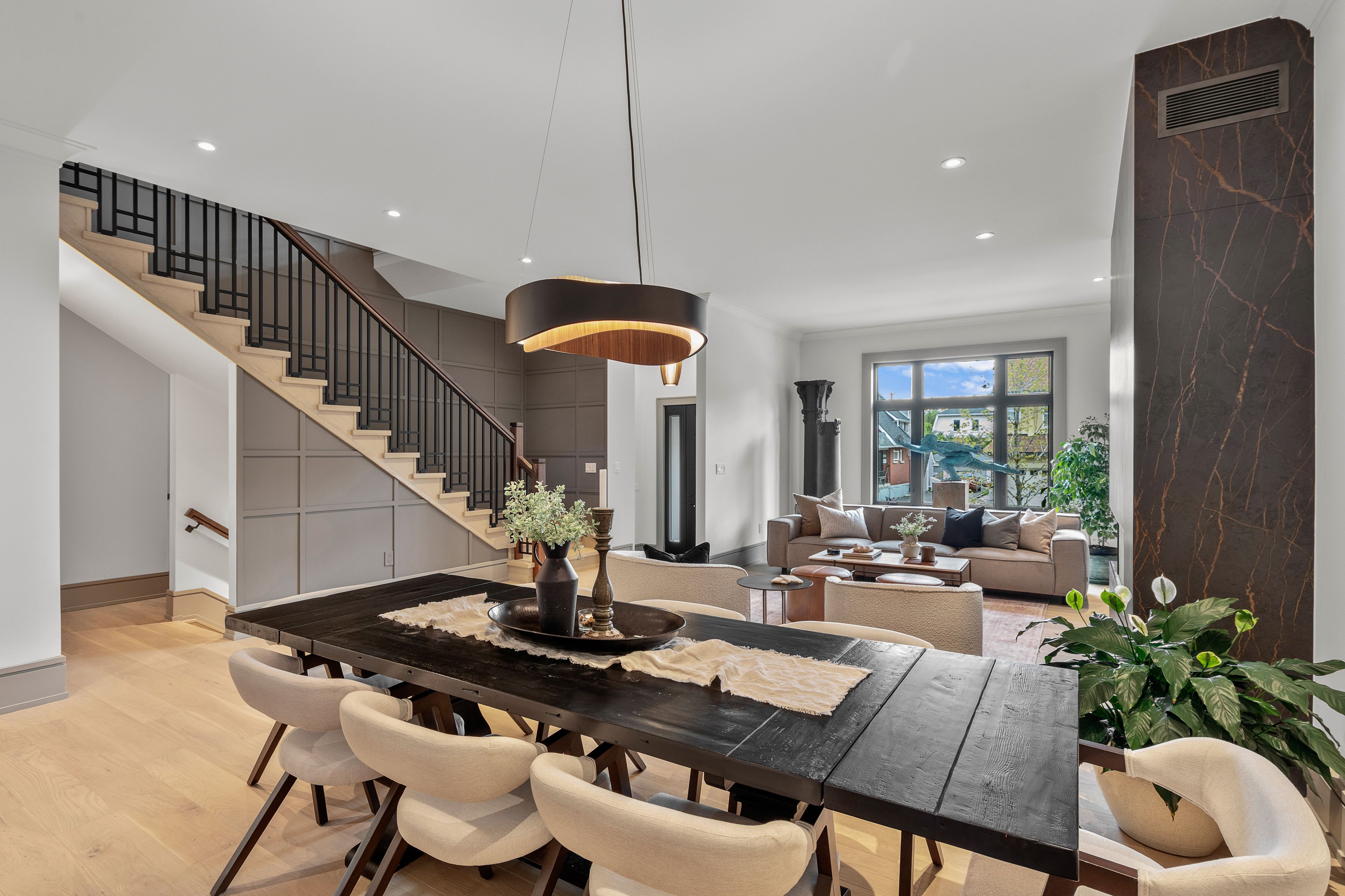This high-quality, 3,500 sq. Ft. Custom home in the heart of wellington village is not only beautiful, the layout is functionally fabulous and features a rare double-height garage w/ reinforced floors, zoned hvac and elevated ceiling heights. The entry is anchored by a dramatic 22 ft high foyer w/ custom walnut niche, walnut light fixtures, and heated porcelain floors that lead to an adjacent mudroom or the open-concept living & dining area featuring a floor-to-10-foot-ceiling-height fireplace clad in dekton porcelain slabs & a custom staircase featuring walnut handrails and newel posts milled from a tree once on the property. At the heart of the home, a chef-inspired kitchen boasts a barrel-vaulted ceiling that extends thru to the connected family room, dekton countertops & walls, 10 ft island, a beverage station & premium fisher & paykel appliances and an adjacent screened porch. Arriving at the second level, you're met w/ a 2nd barrel-vaulted ceiling, 9 ft high and four spacious bedrooms all with ensuite bathrooms & a nursery/office. The primary suite features his & hers walk-in closets & an ensuite w/ dekton counters & shower surround, wood-accent shelving as with other bathrooms, & a free-standing tub. A well-appointed laundry room with a proper sink, quartz counters & ample storage. The lower level provides bonus living space w/ a sprawling recreation room w/ rough-in for a bar, a bedroom w/ an ensuite, a powder room, & heated flooring throughout. 8'-4" ceilings, w/ pot lighting & lvp wide-plank floors maintain the character of the home's upper levels. The remainder of flooring throughout the home is wide-plank, white oak engineered hardwood. The landscaped, fully fenced backyard includes an interlock patio, a cedar pergola-topped bbq deck, defined garden beds & mature trees. Set on a tree-lined street in wellington village, this home is just steps from elmdale public school, parkdale market, and the shops, cafés, & restaurants of wellington west & westboro.