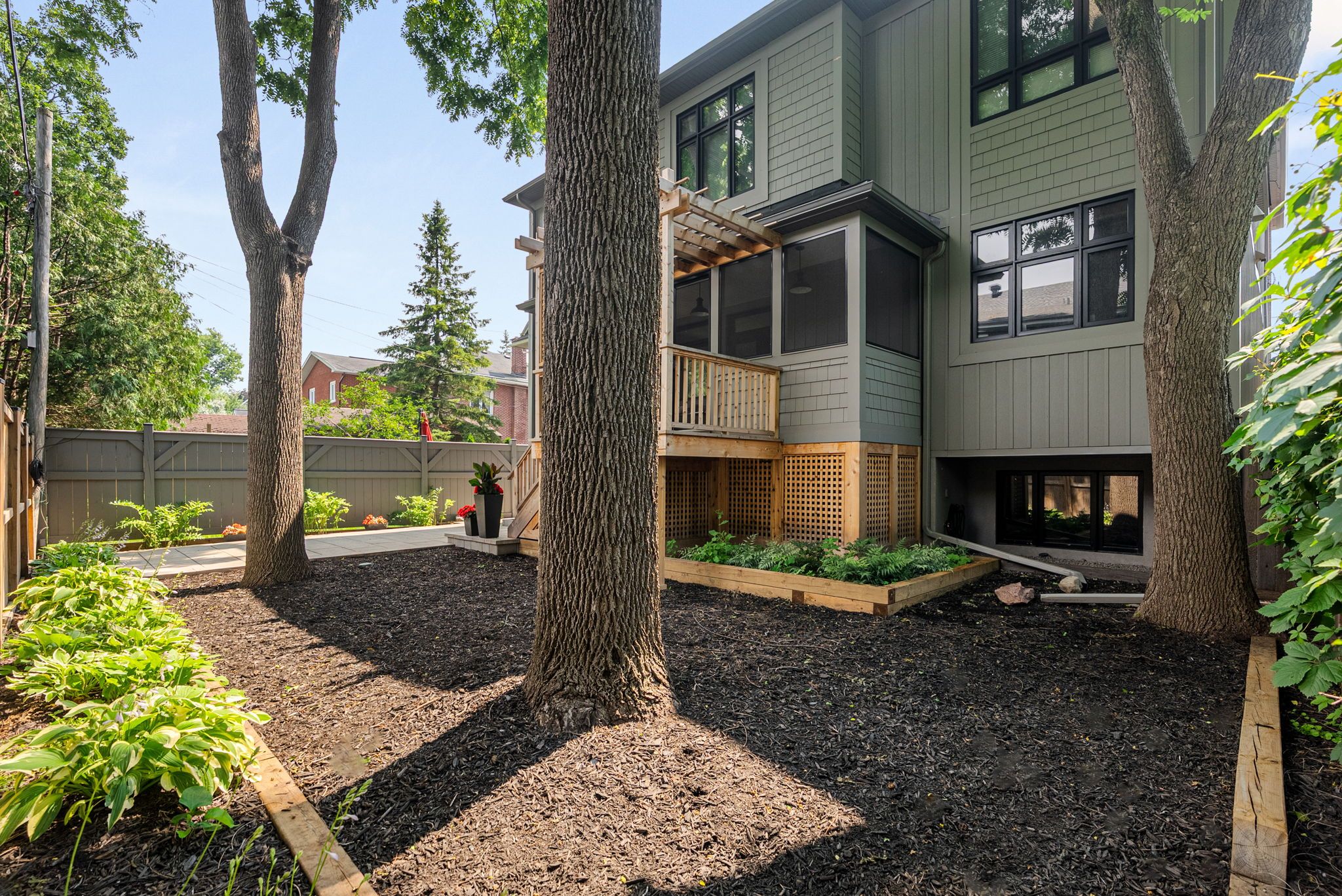 • Fully fenced backyard with interlock patio and outdoor BBQ deck.