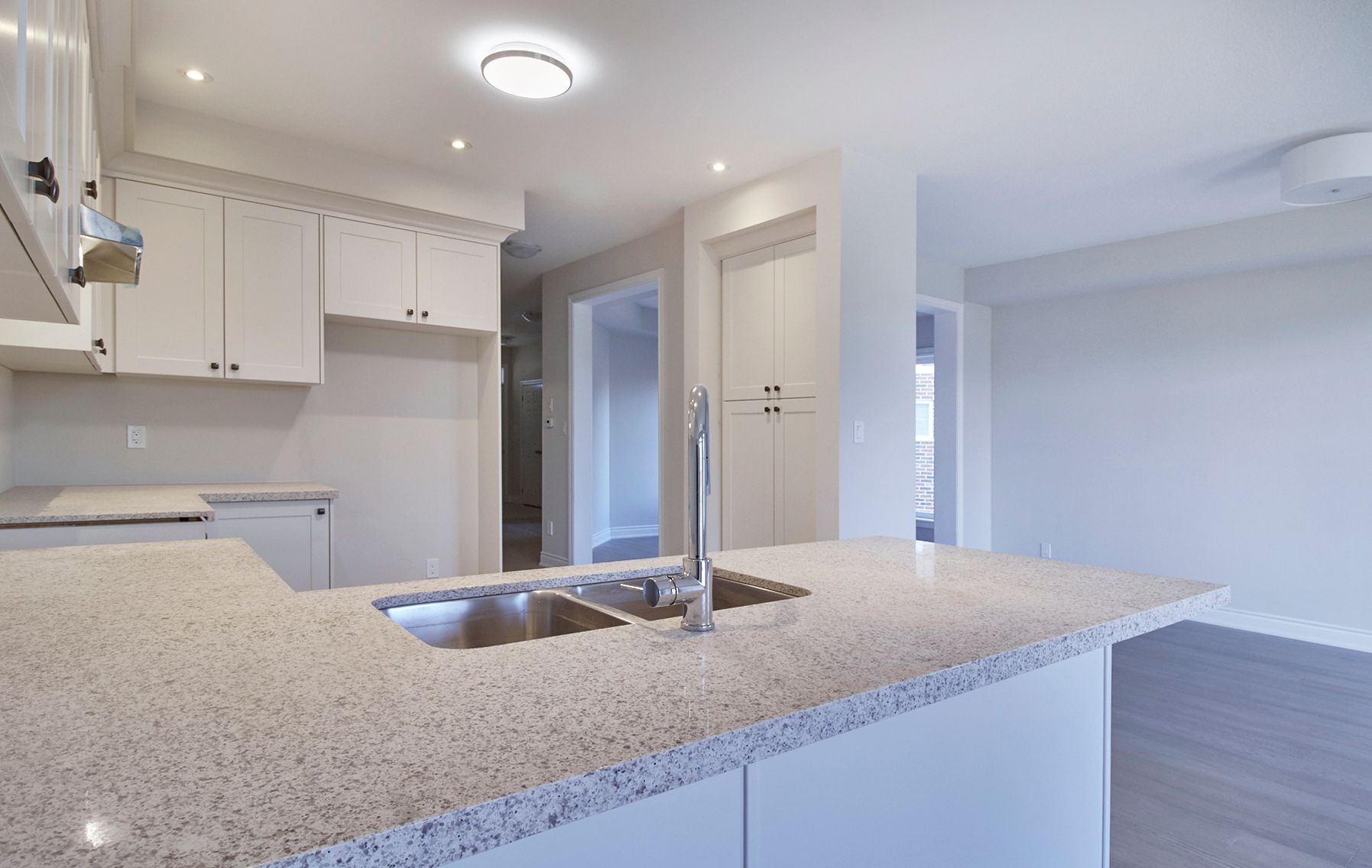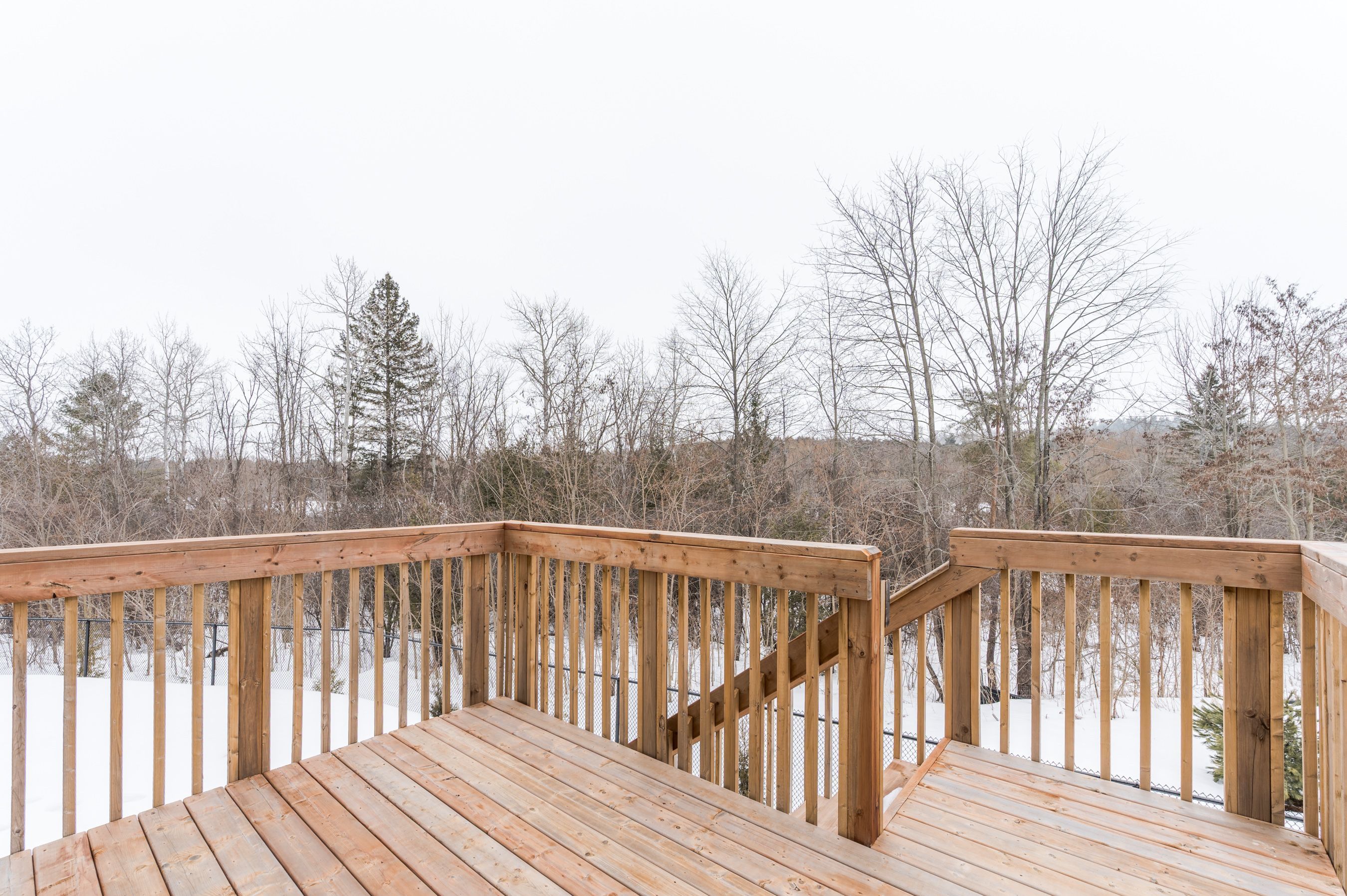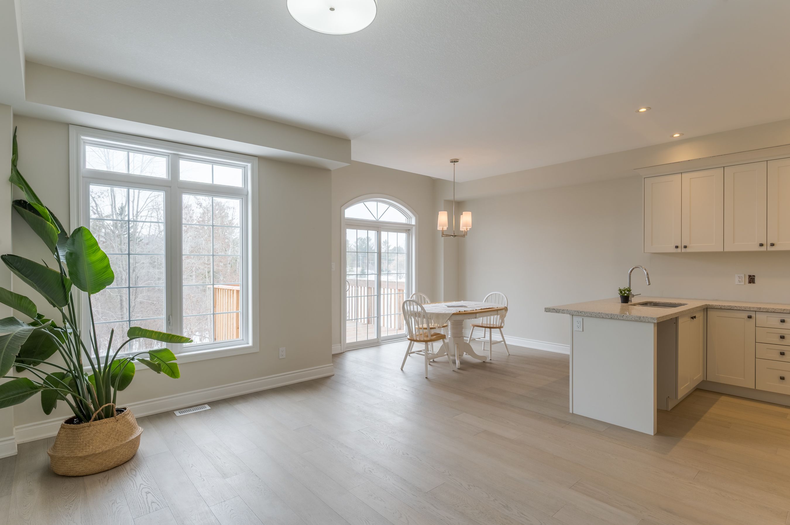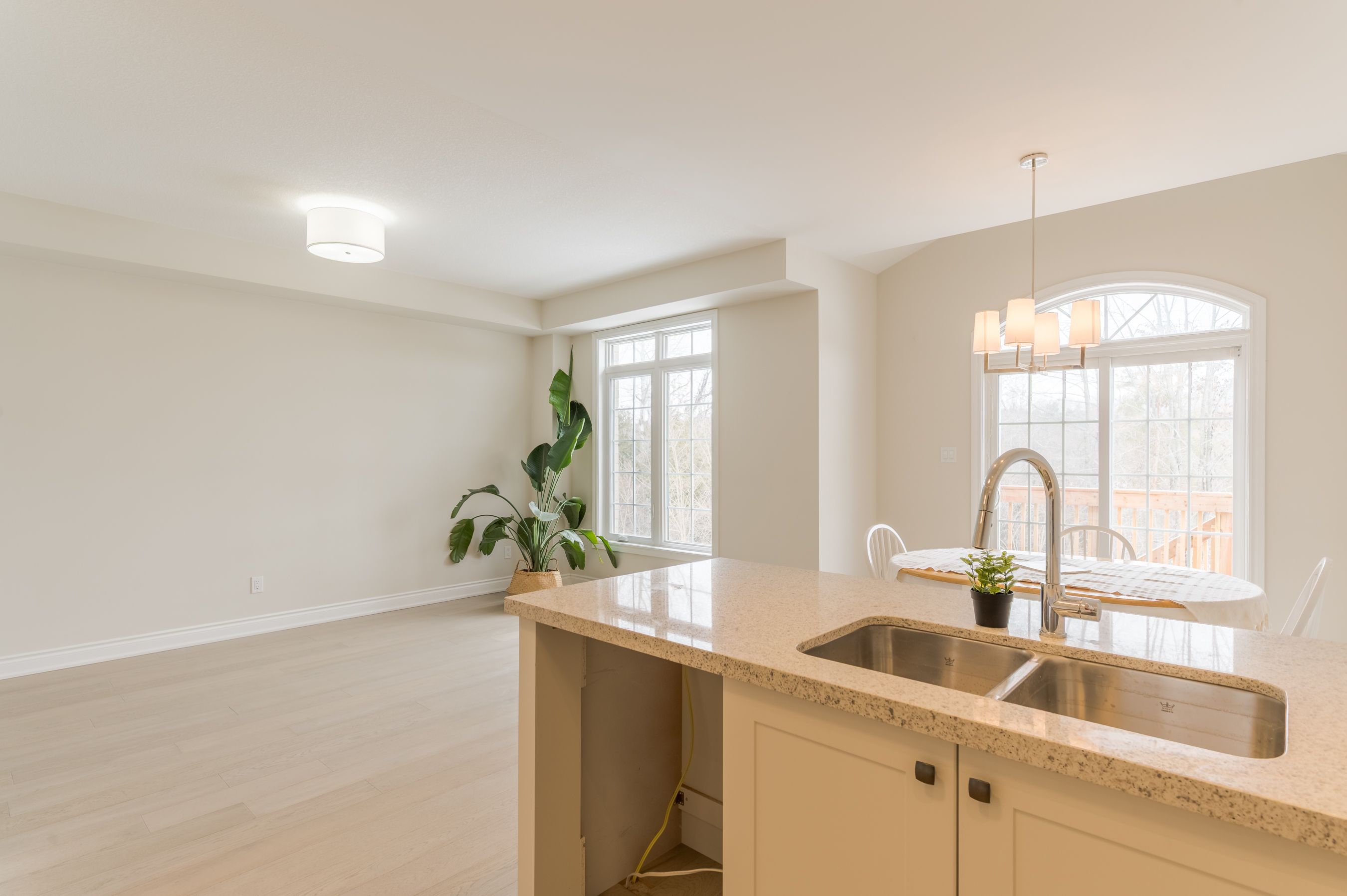 • Open concept kitchen with quartz counters and a walkout deck for outdoor views.