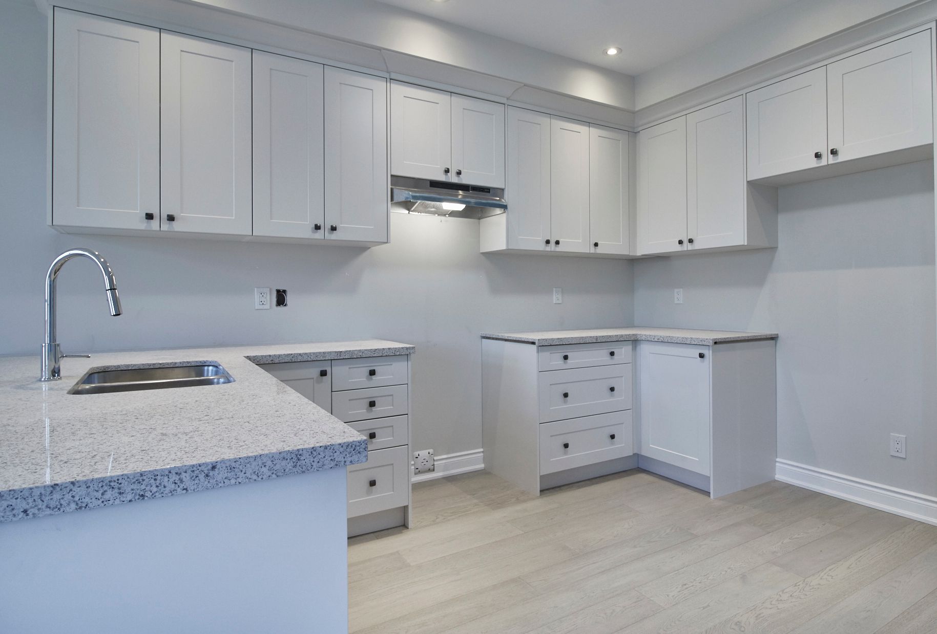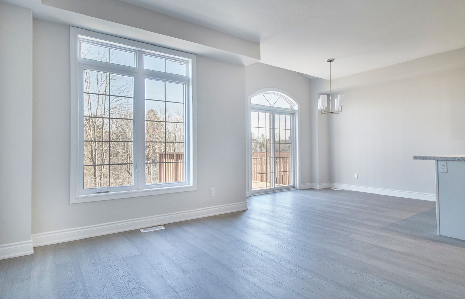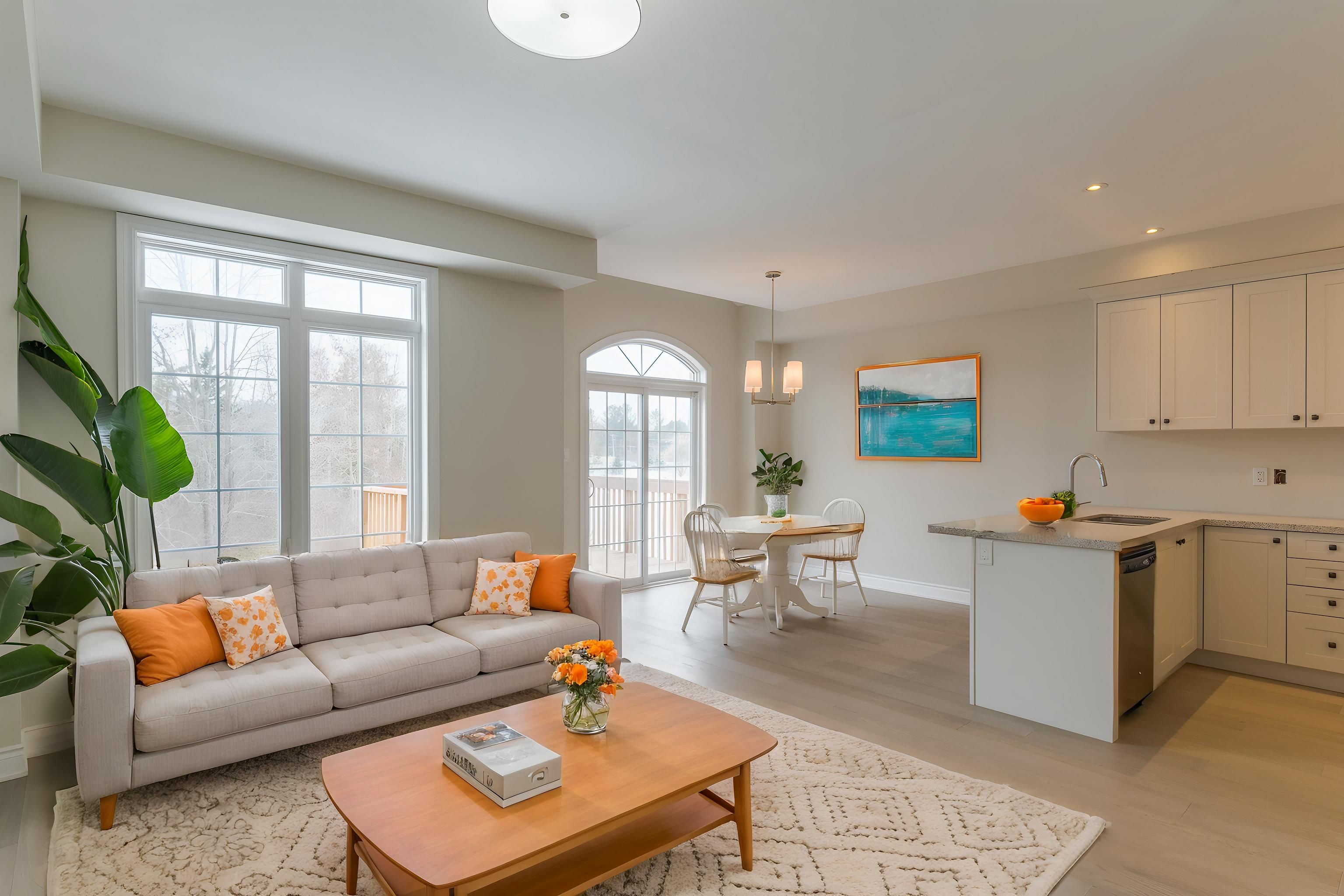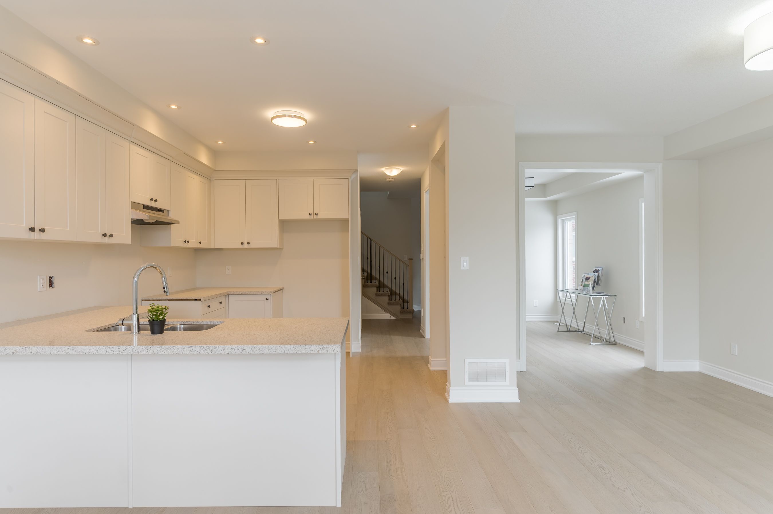 • Open concept kitchen with quartz counters and a walkout deck for outdoor views.