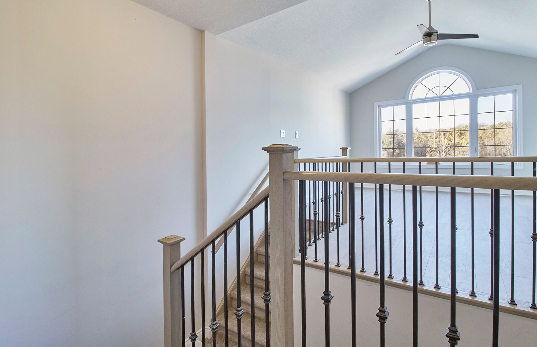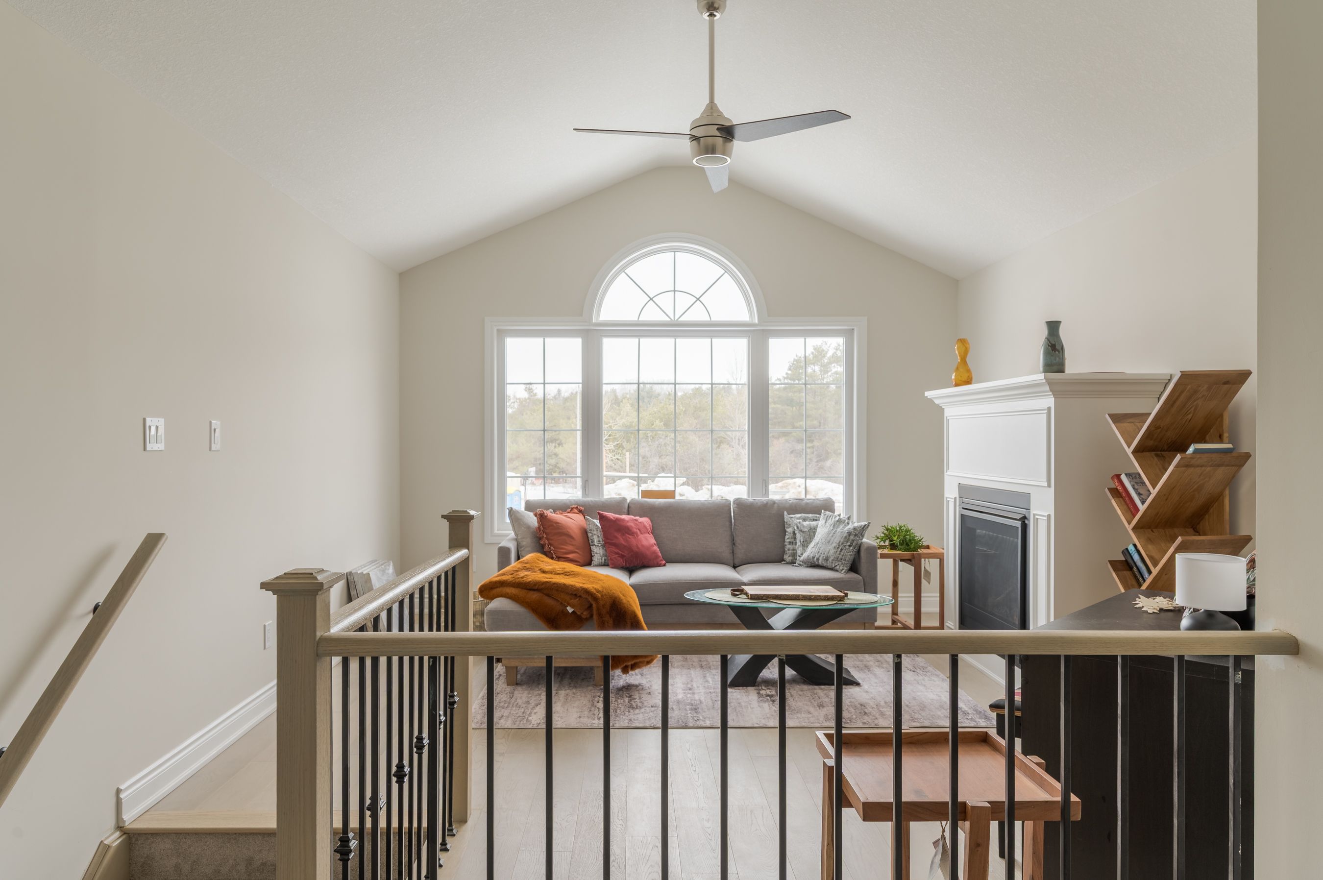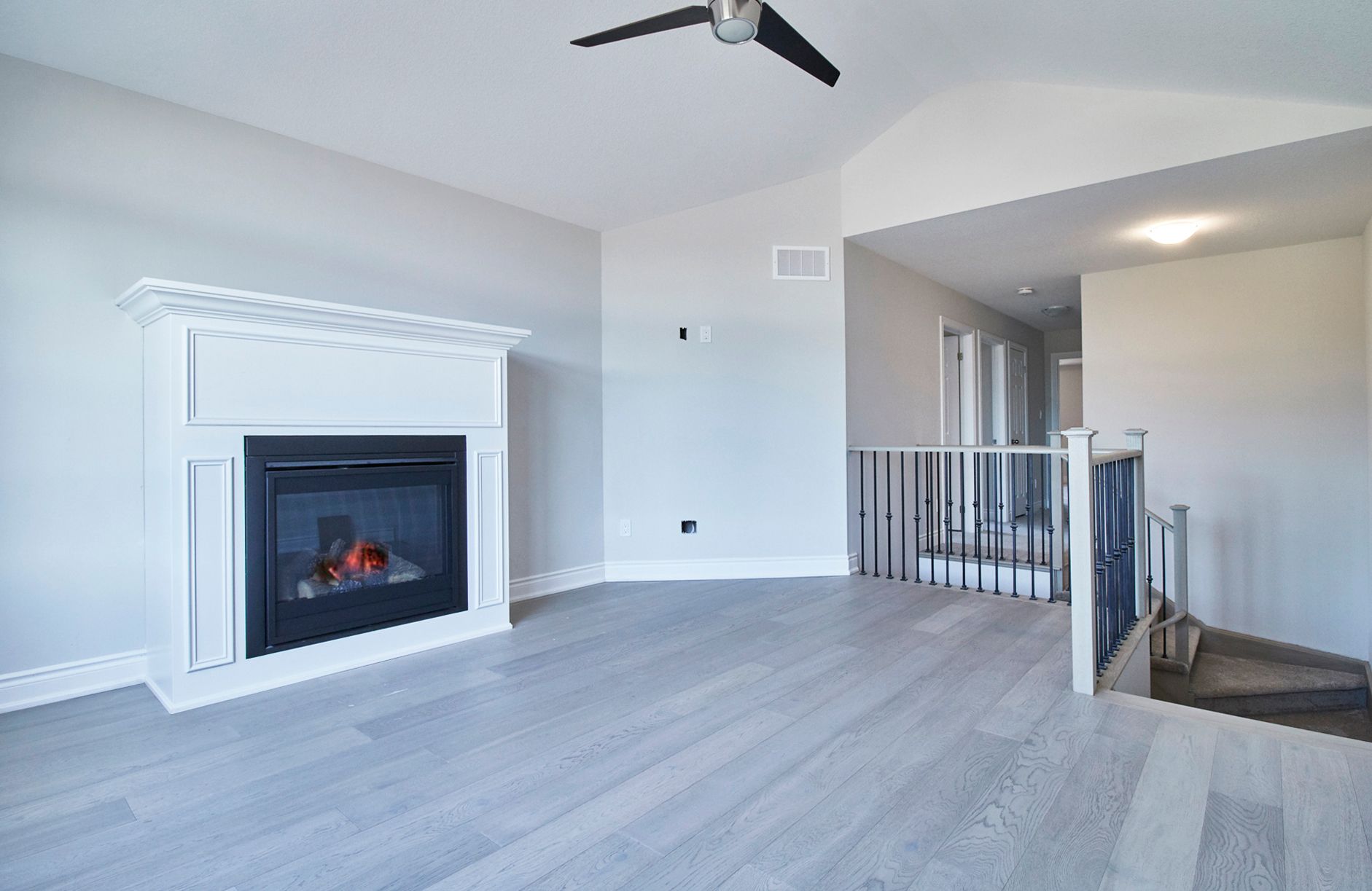 • Second storey family room with cathedral ceiling and cozy gas fireplace.
