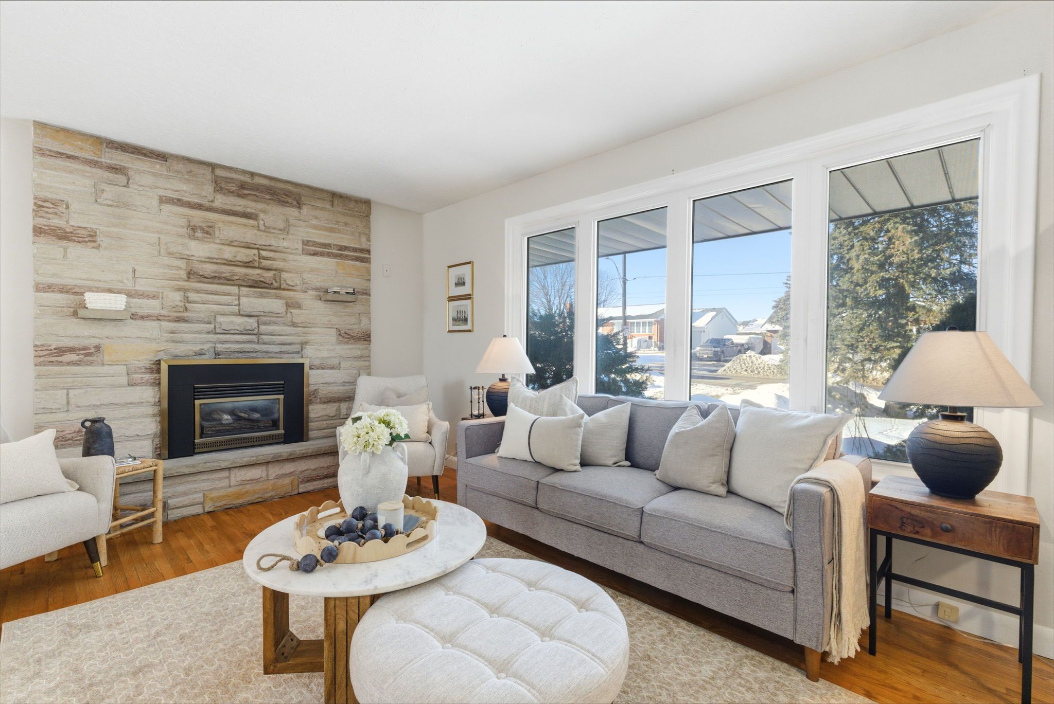 Solid brick bungalow on a premium 78 ft wide lot in one of bowmanville's most convenient locations. Proudly owned by the same family for 34 years, this well-maintained home offers a fantastic opportunity to enjoy now and personalize over time. The main floor spans an impressive 1,275 sq ft and features three bedrooms, a full bathroom, and a generous living and dining room combination with a walkout to the backyard. Original hardwood flooring runs throughout most of the main level, adding warmth and character. The living room is anchored by a gas fireplace with a stone surround and a large picture window overlooking mature front yard trees and gardens. The kitchen currently includes a main floor laundry, which can easily be relocated back to the basement if desired. Downstairs offers a separate entrance, large recroom with bar, a 2-pc bath and 4th bedroom. Freshly painted and all new modern lighting. Set on a wide, beautifully sized lot with a large backyard, this property offers outdoor space that is increasingly hard to find. Just steps to historic downtown bowmanville with its shops, restaurants, amenities, and transit outside your doorstep. Ideally located for commuters with quick access to highway 401 and highway 115/35. A solid, well-cared-for home in a prime location with endless potential!
