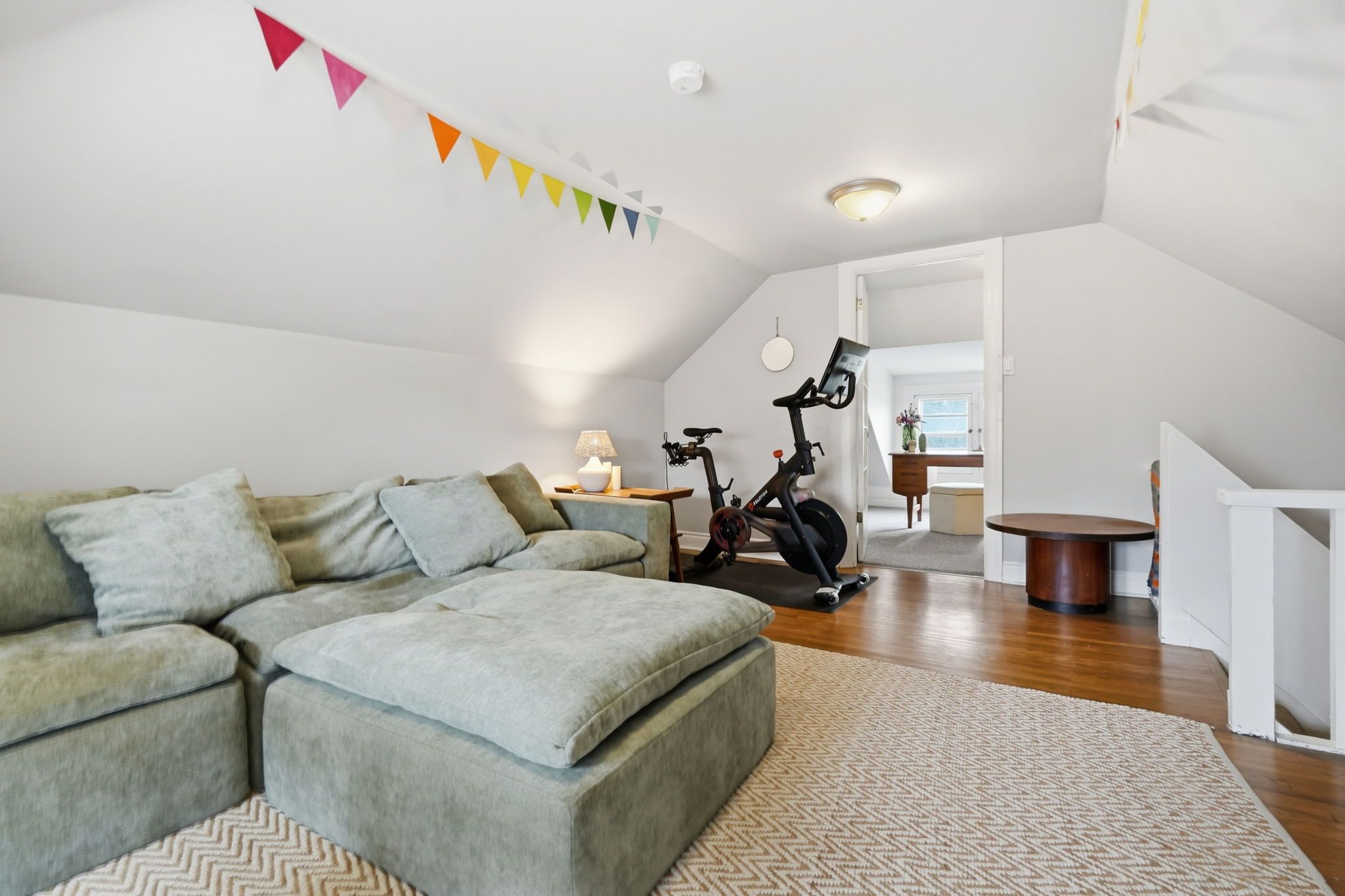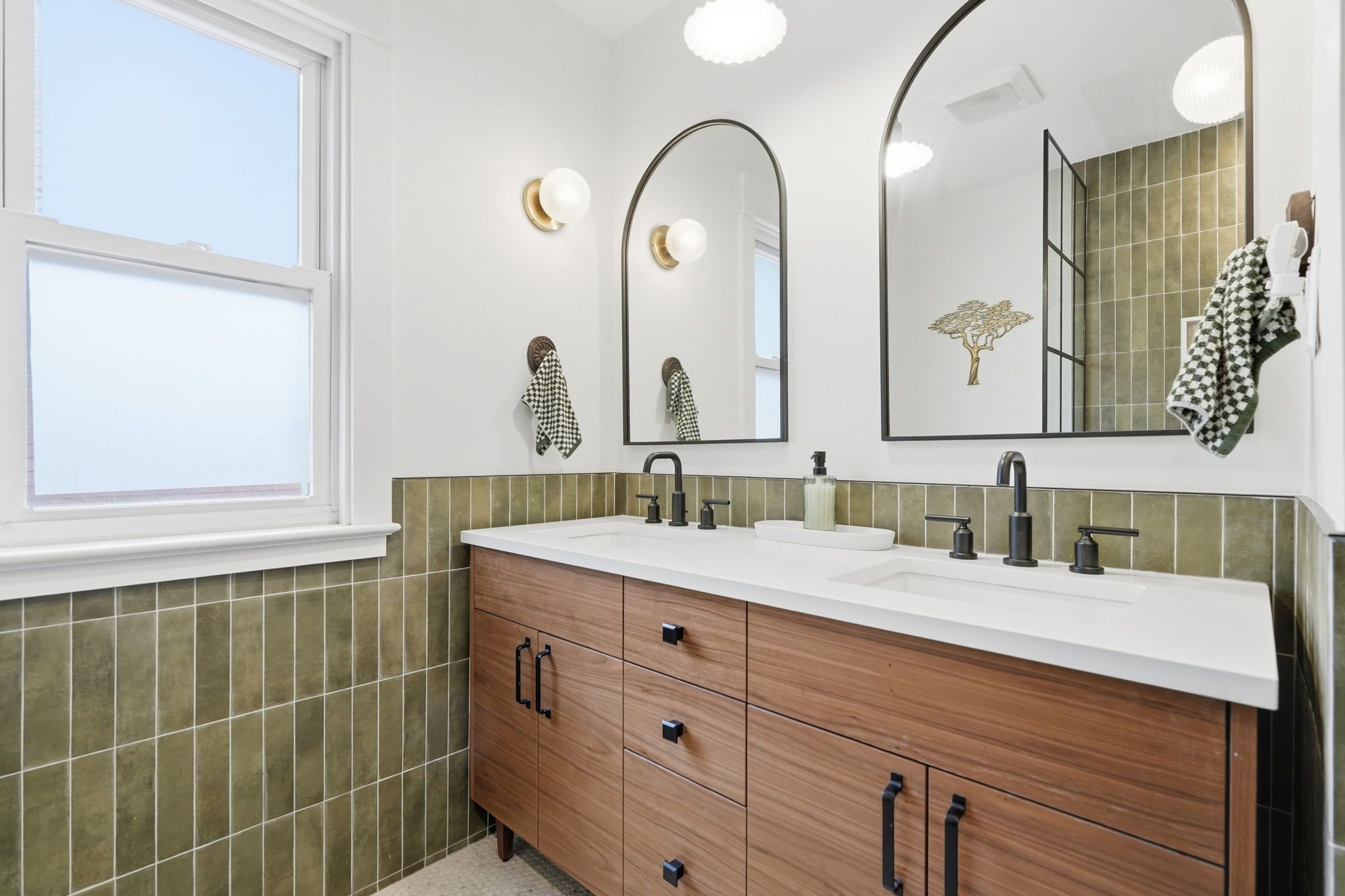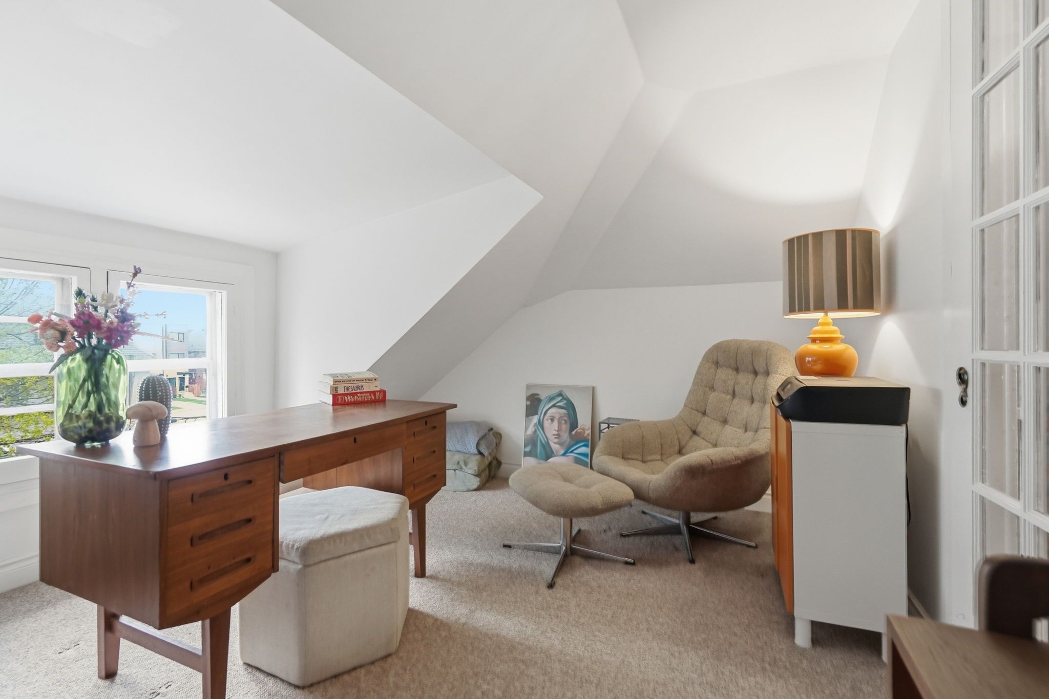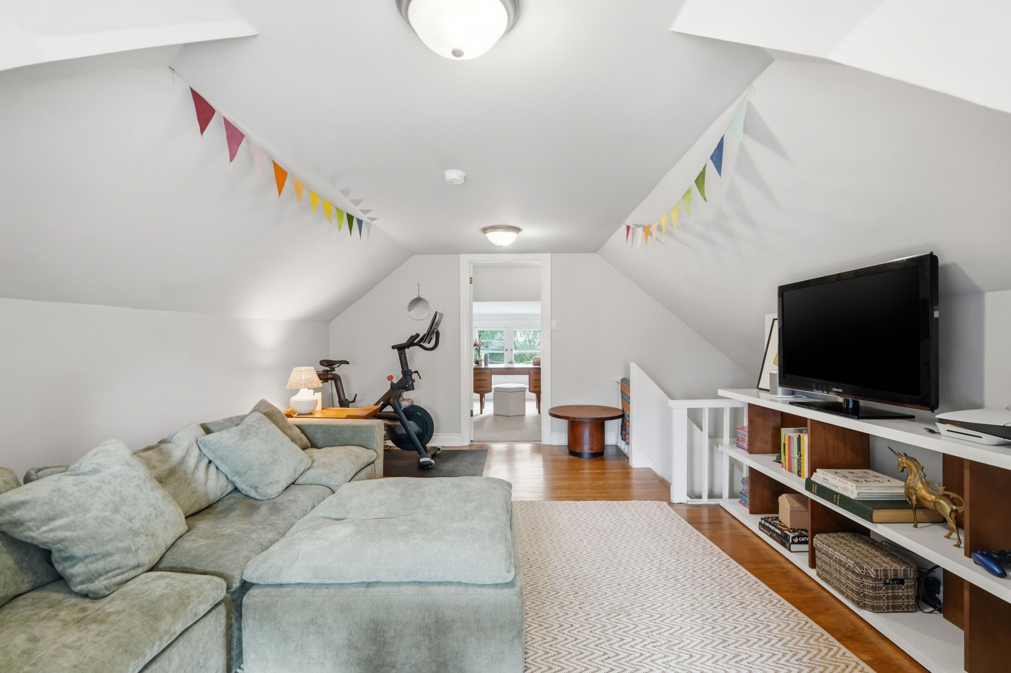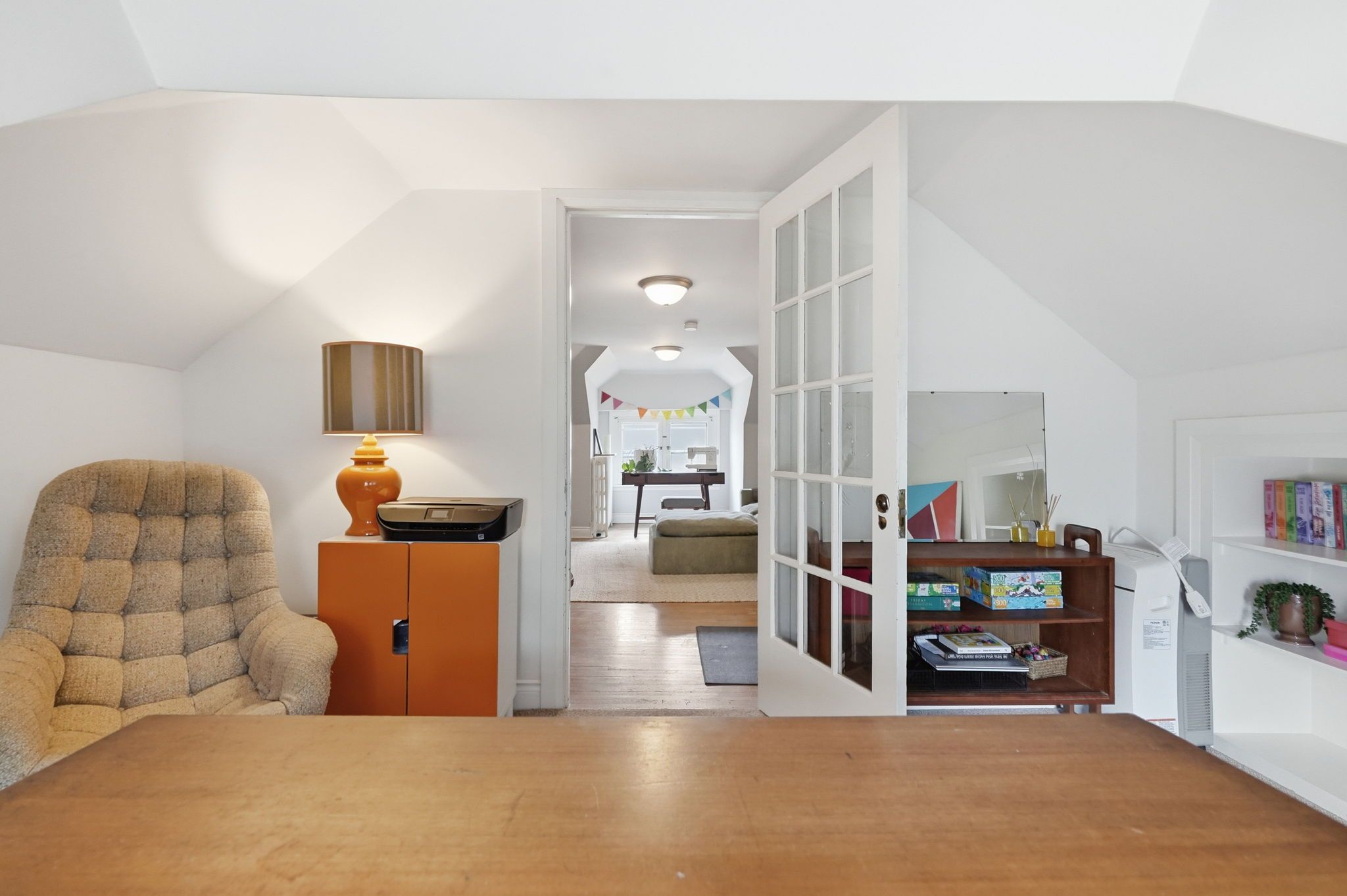 • Original character with coffered ceilings, stained glass, and antique hardware.