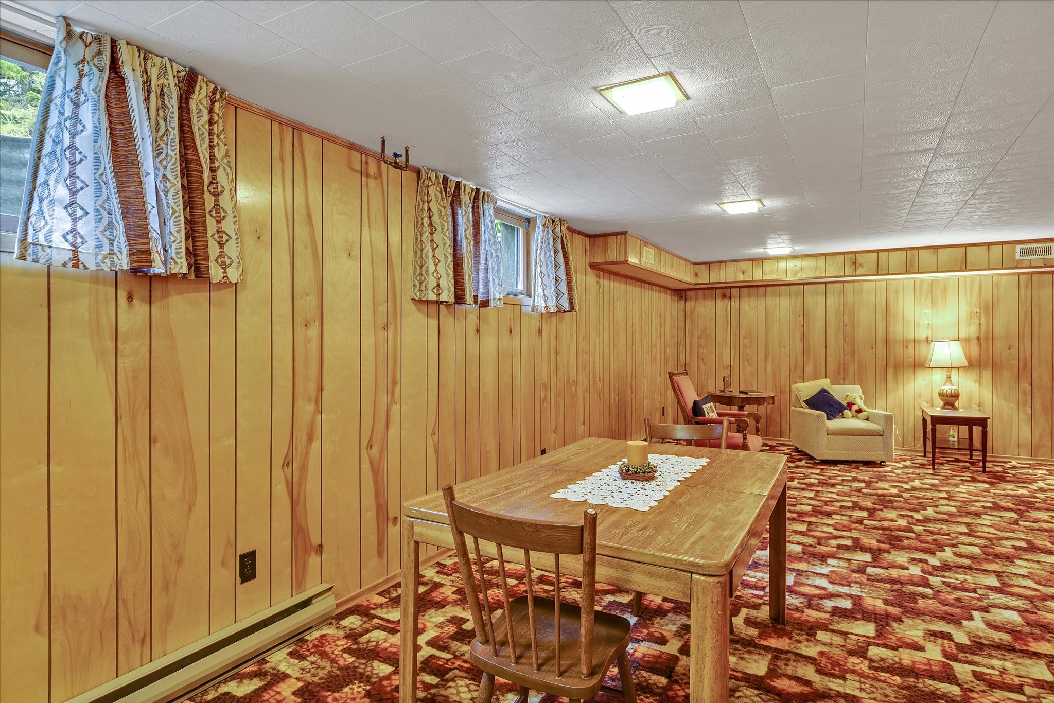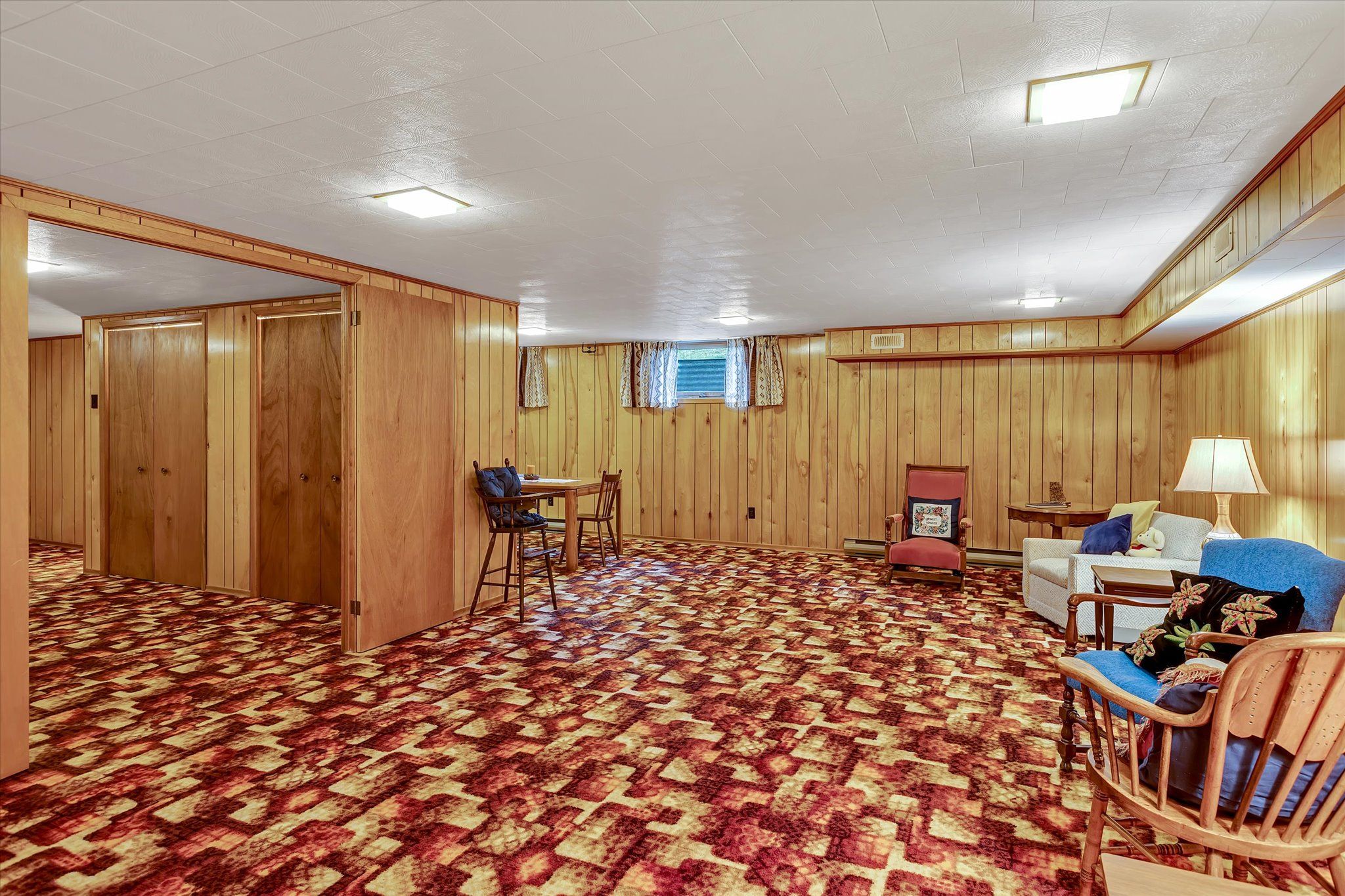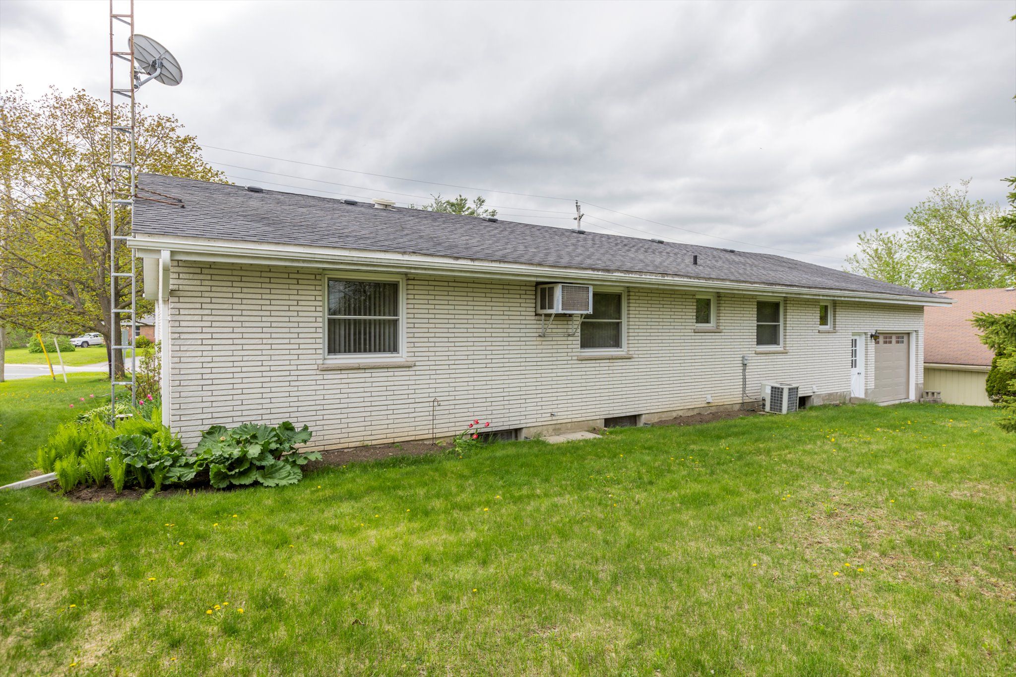 All brick bungalow on large lot close to all amenities. This bungalow has large principle rooms. Central air, open concept kitchen and dining room, massive living room with large window for loads of natural light. Three good size bedrooms, a four piece bath, a main floor laundry area, and an extra 2 pc powder room. The lower level has a large sitting room, a three piece bath, loads of cupboard/storage space, a massive rec room complete with a second kitchen. A large workshop area/ storage room with a cold room attached, great for wine or preserves. Another large unfinished room would be great for another bedroom making the lower level a possible in law suite. An attached two car garage with a drive through door giving access to the backyard. Loads of room on top of the hill for a massive garden. Sit on the hill and watch the sun come while overlooking the village. Walking distance to groceries, churches, schools and the downtown area. Great family home.
