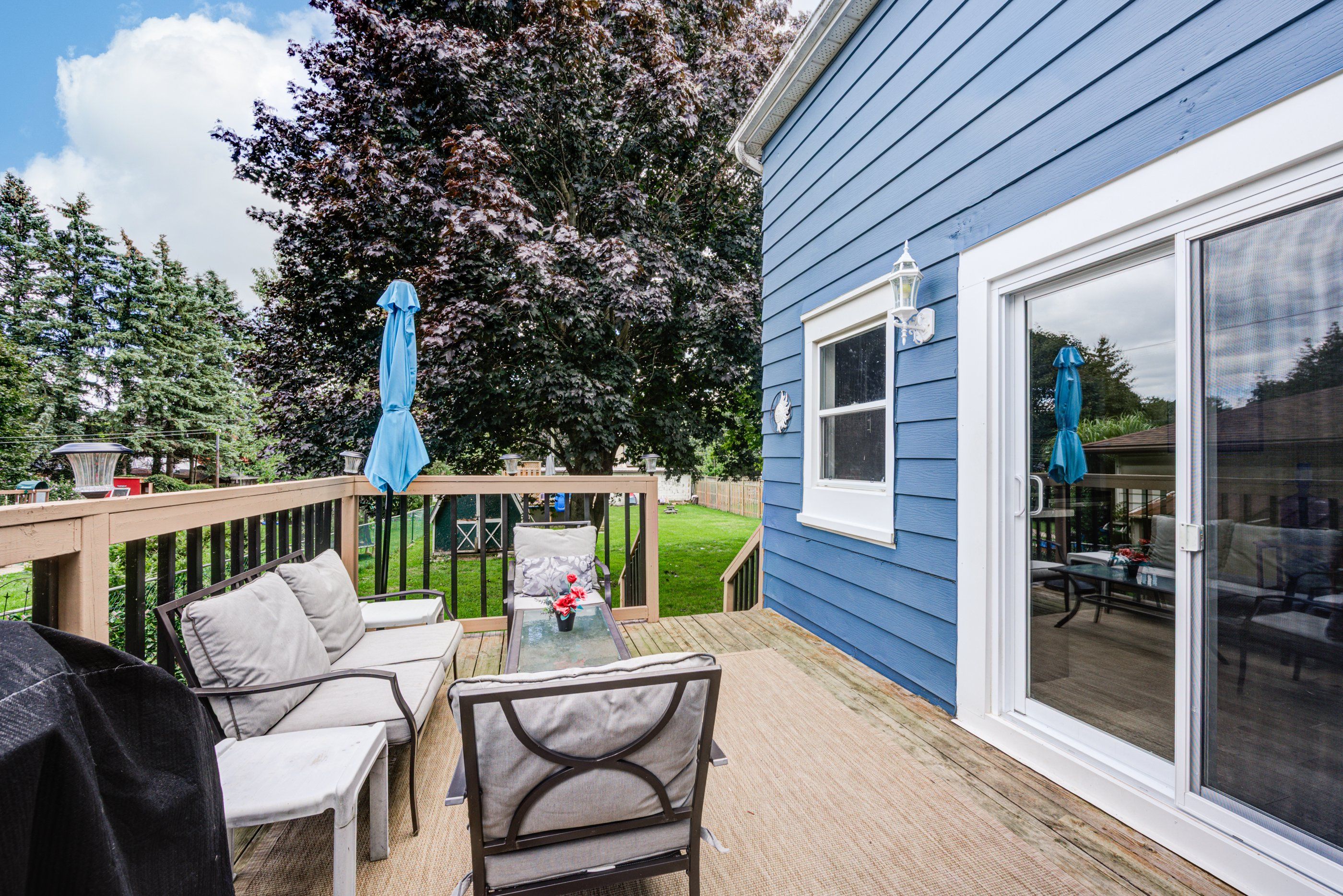 • Private, fully fenced backyard with above-ground pool for summer fun.
