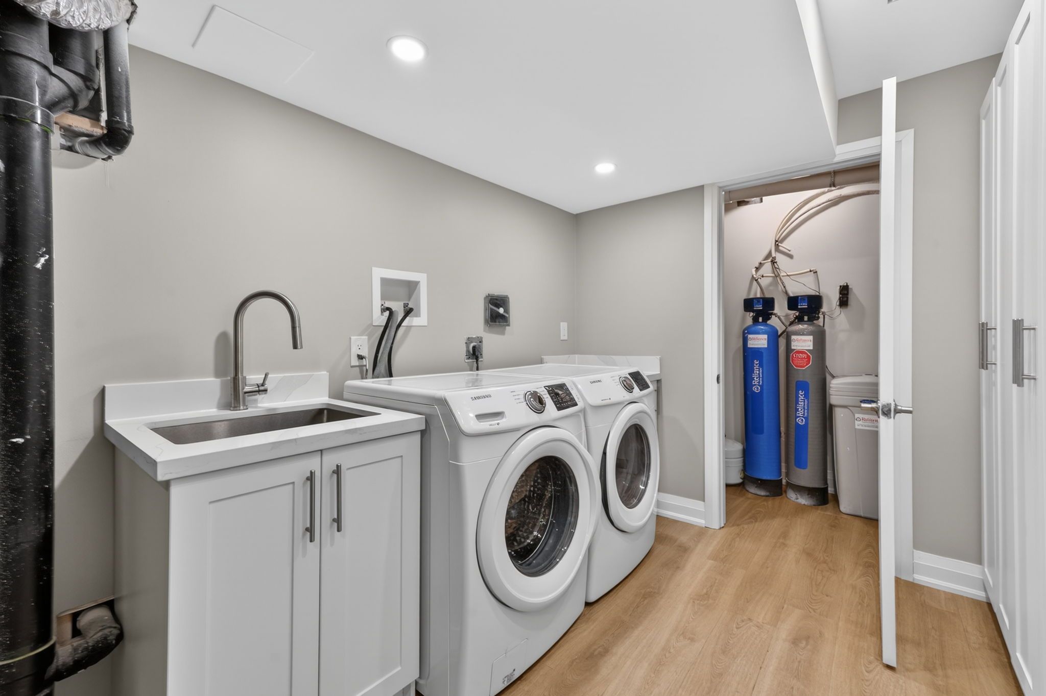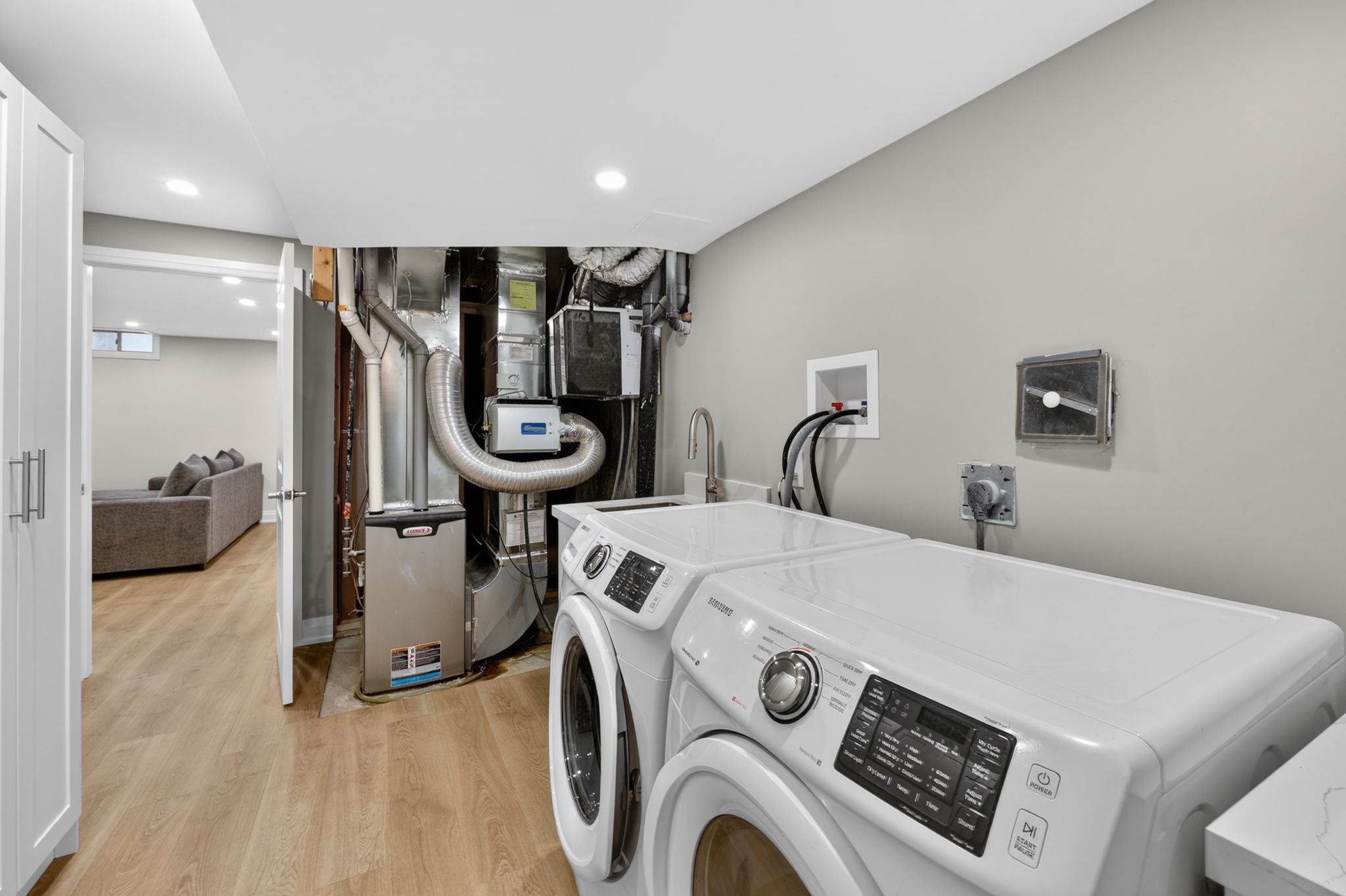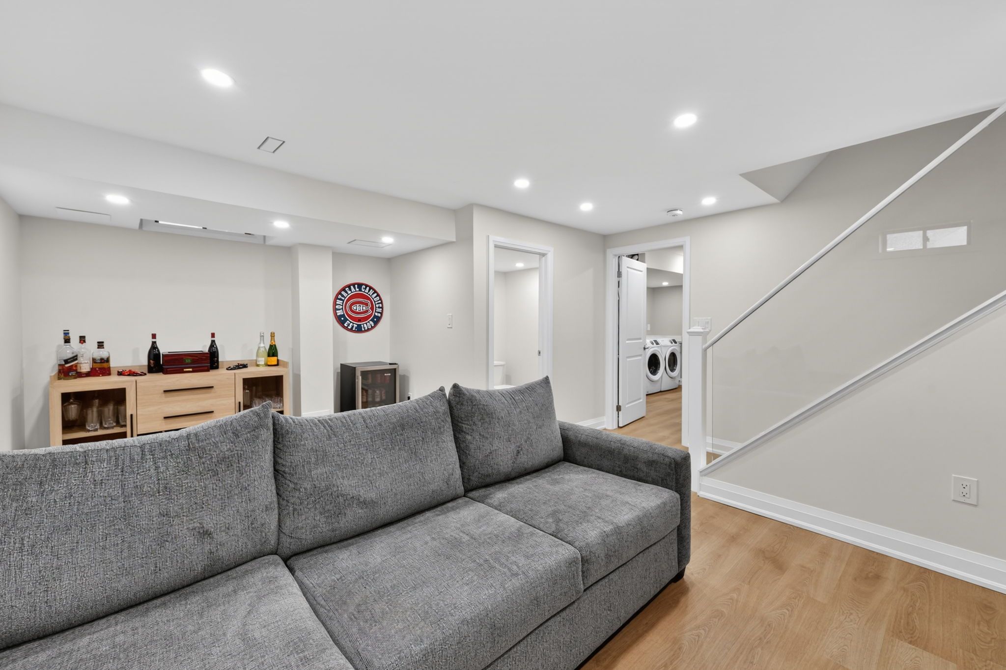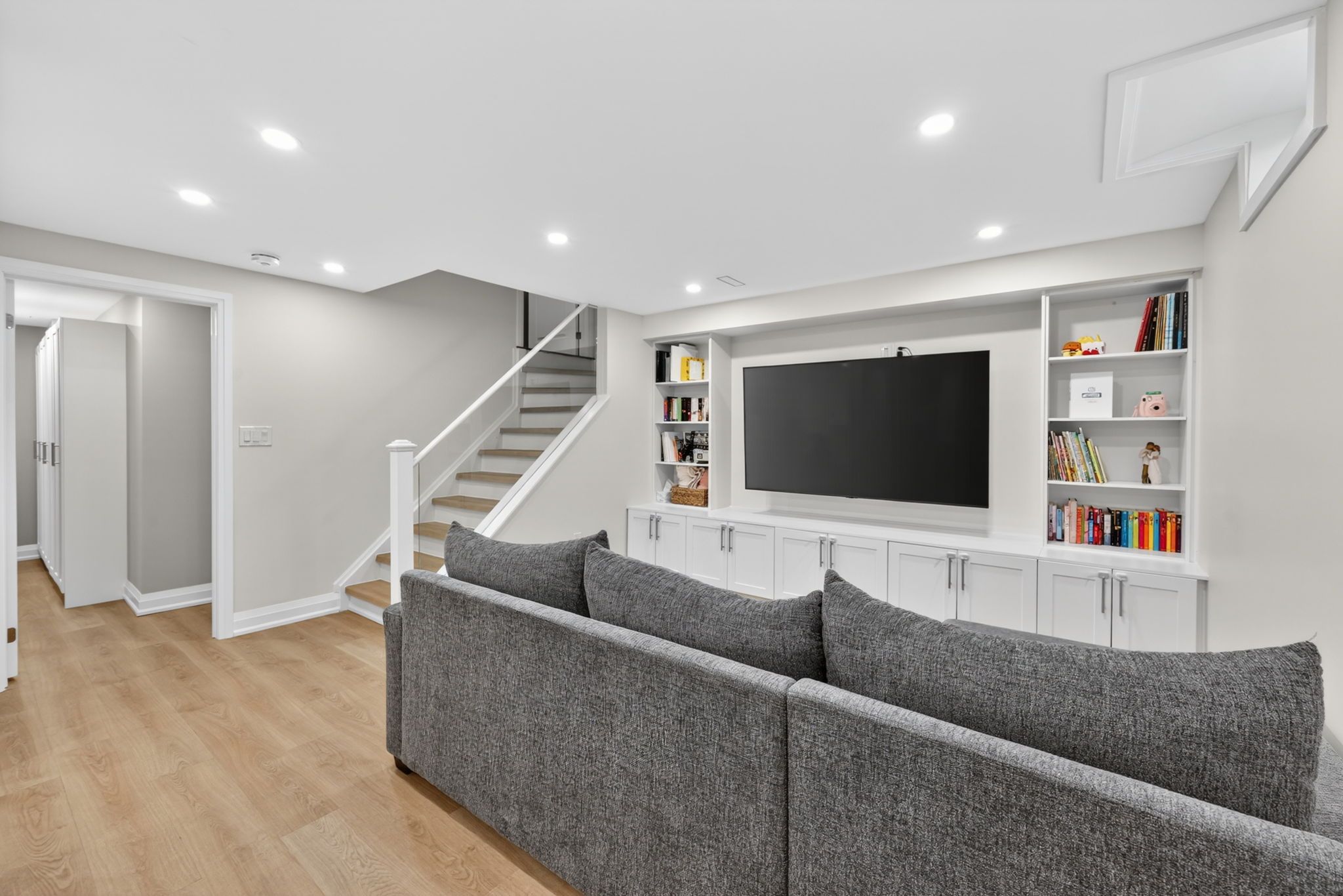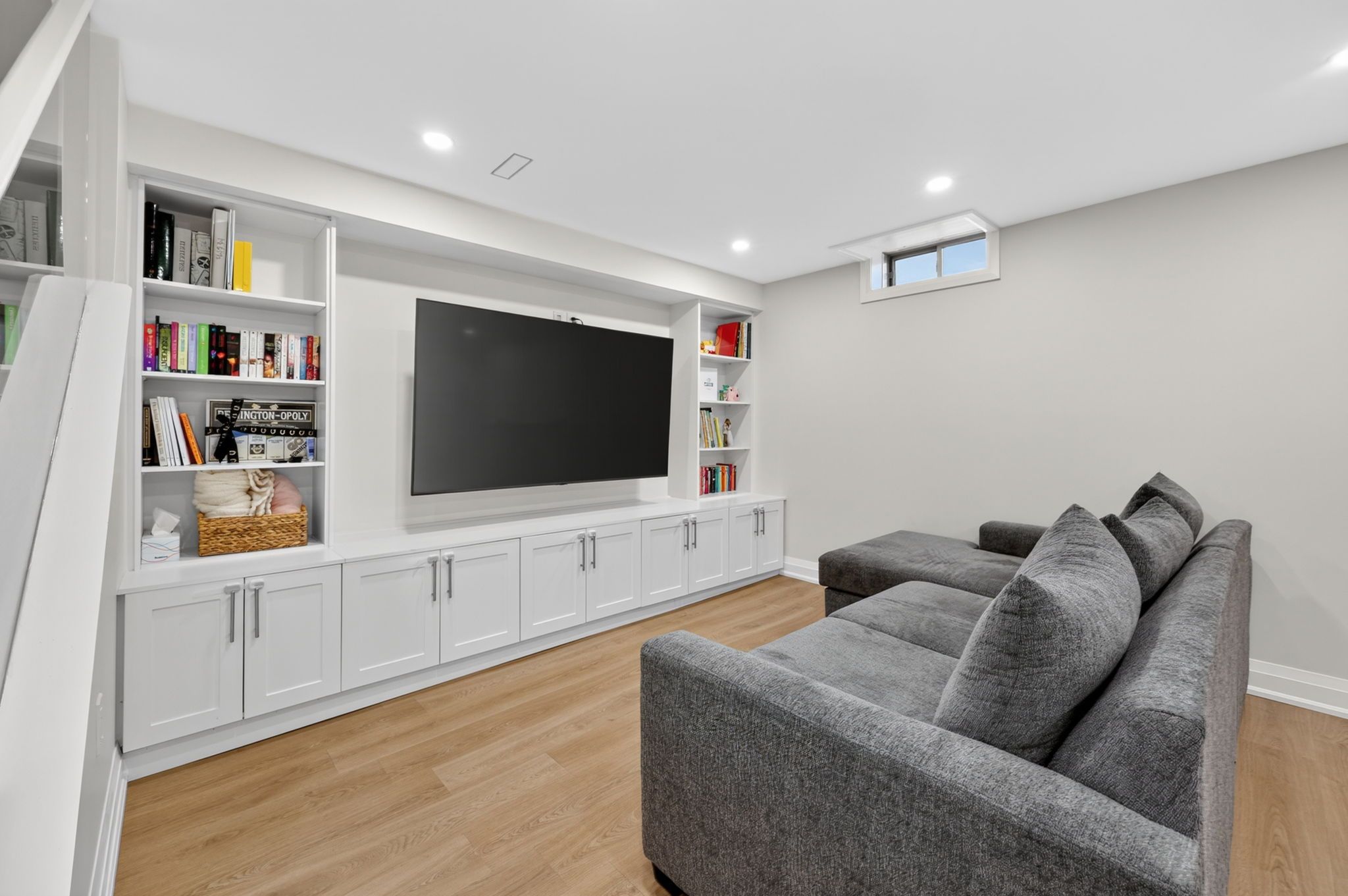 • Fully finished basement adds extra living space with built-in cabinetry.
