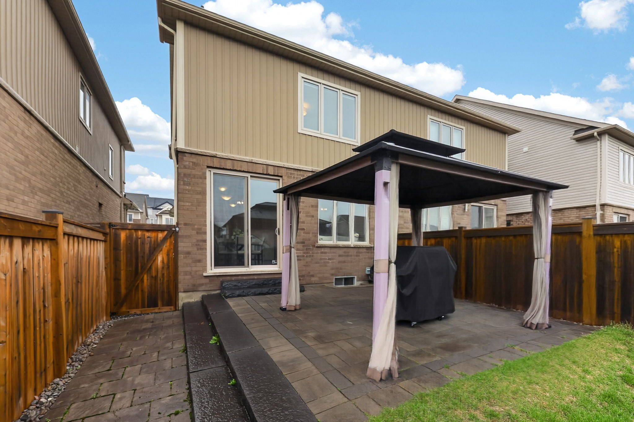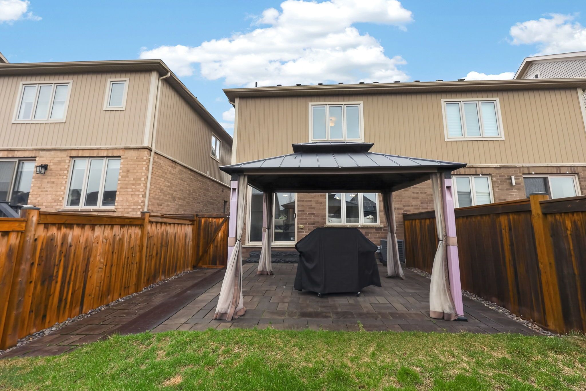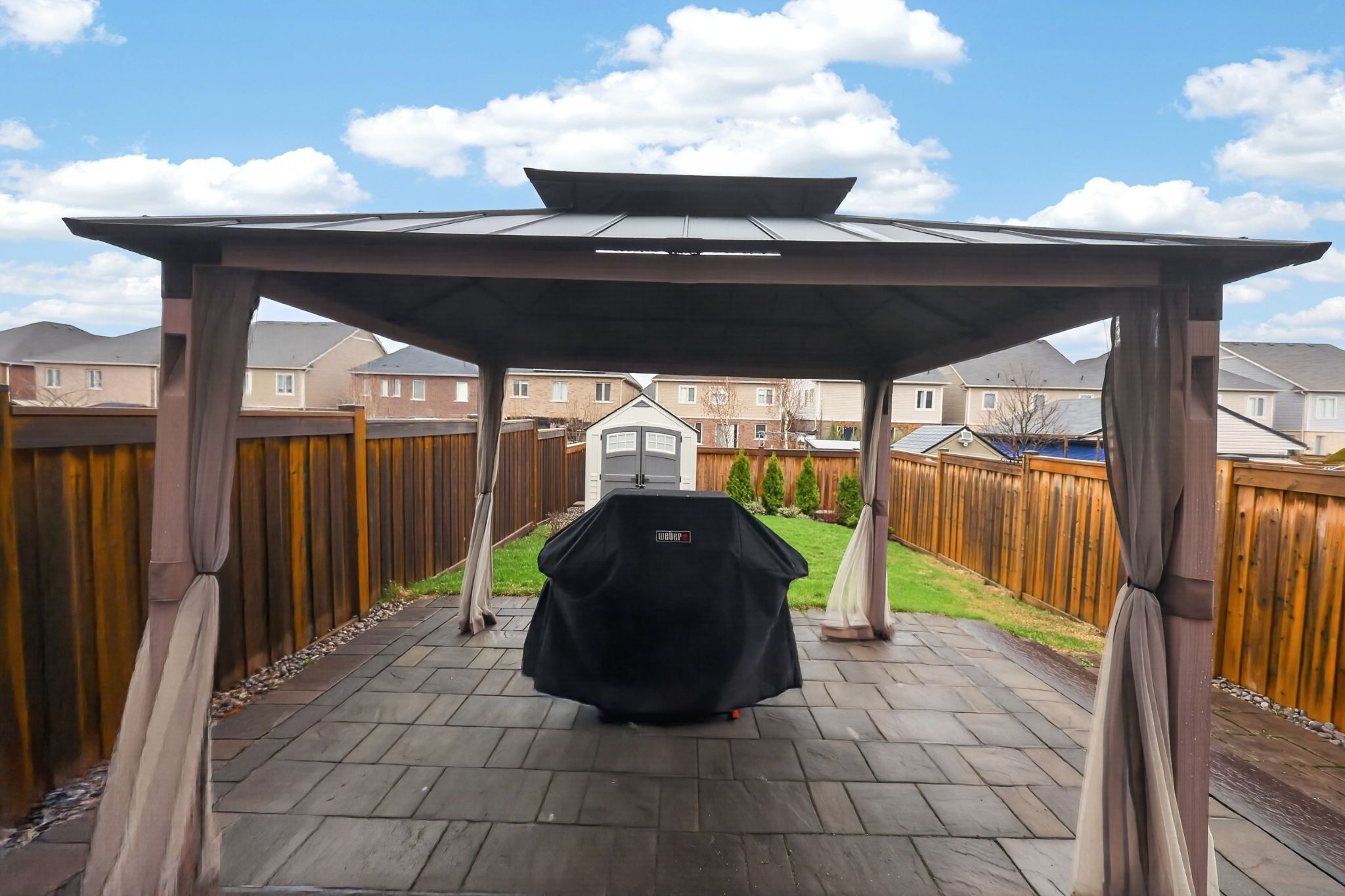 • Landscaped backyard with patio and gazebo, perfect for relaxation.