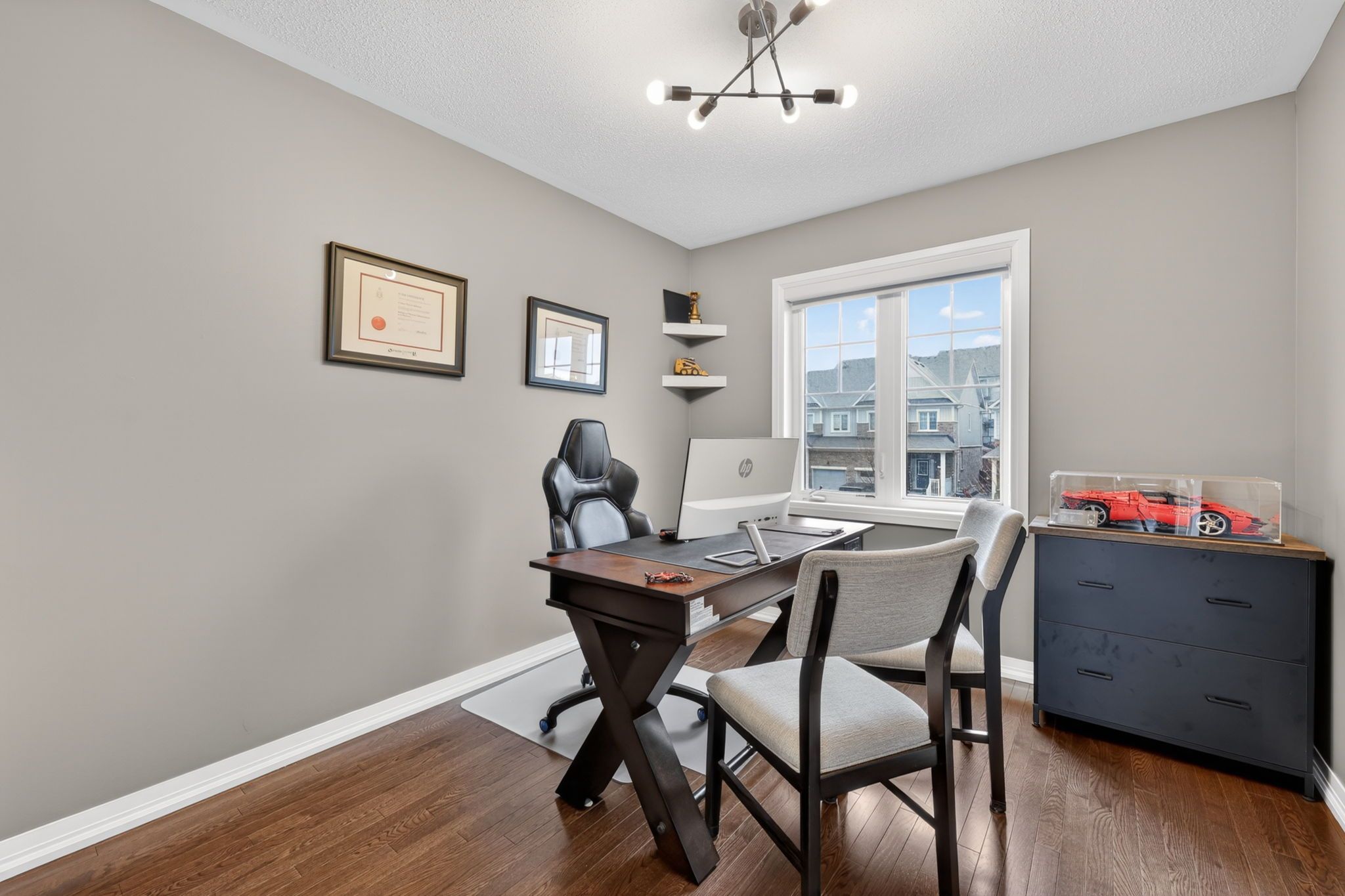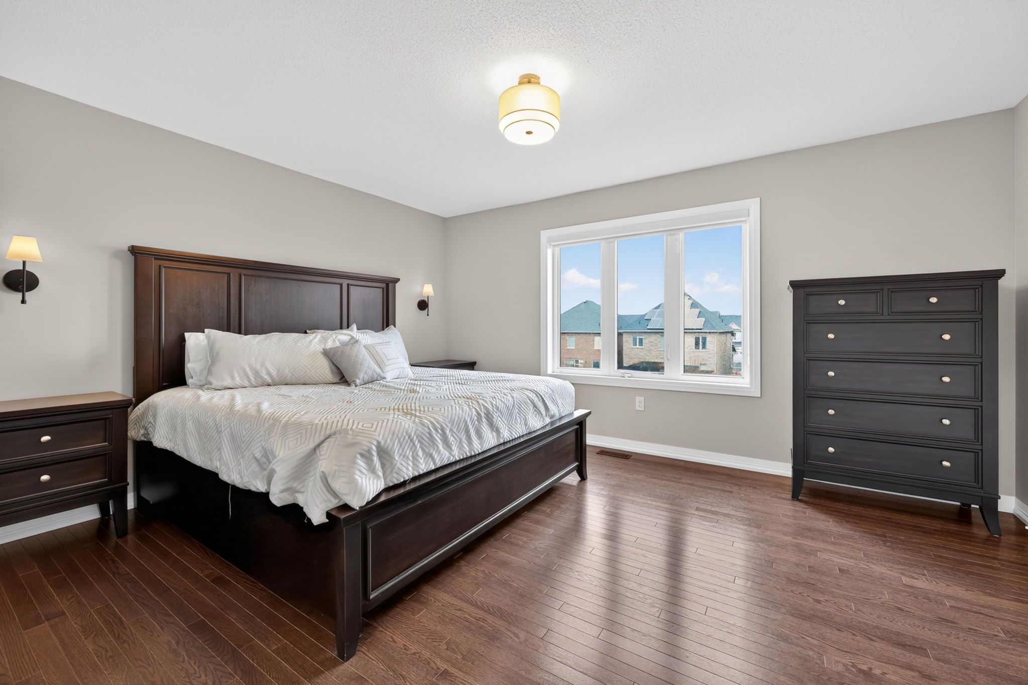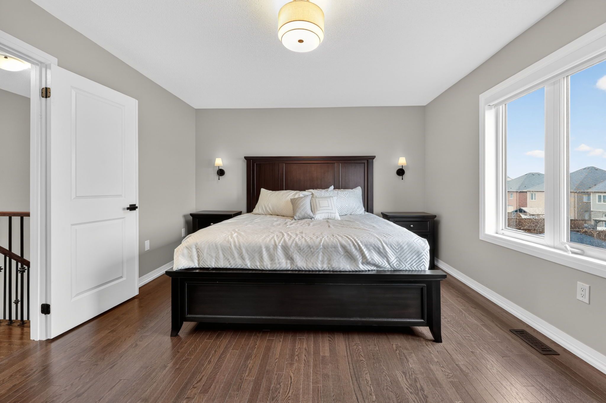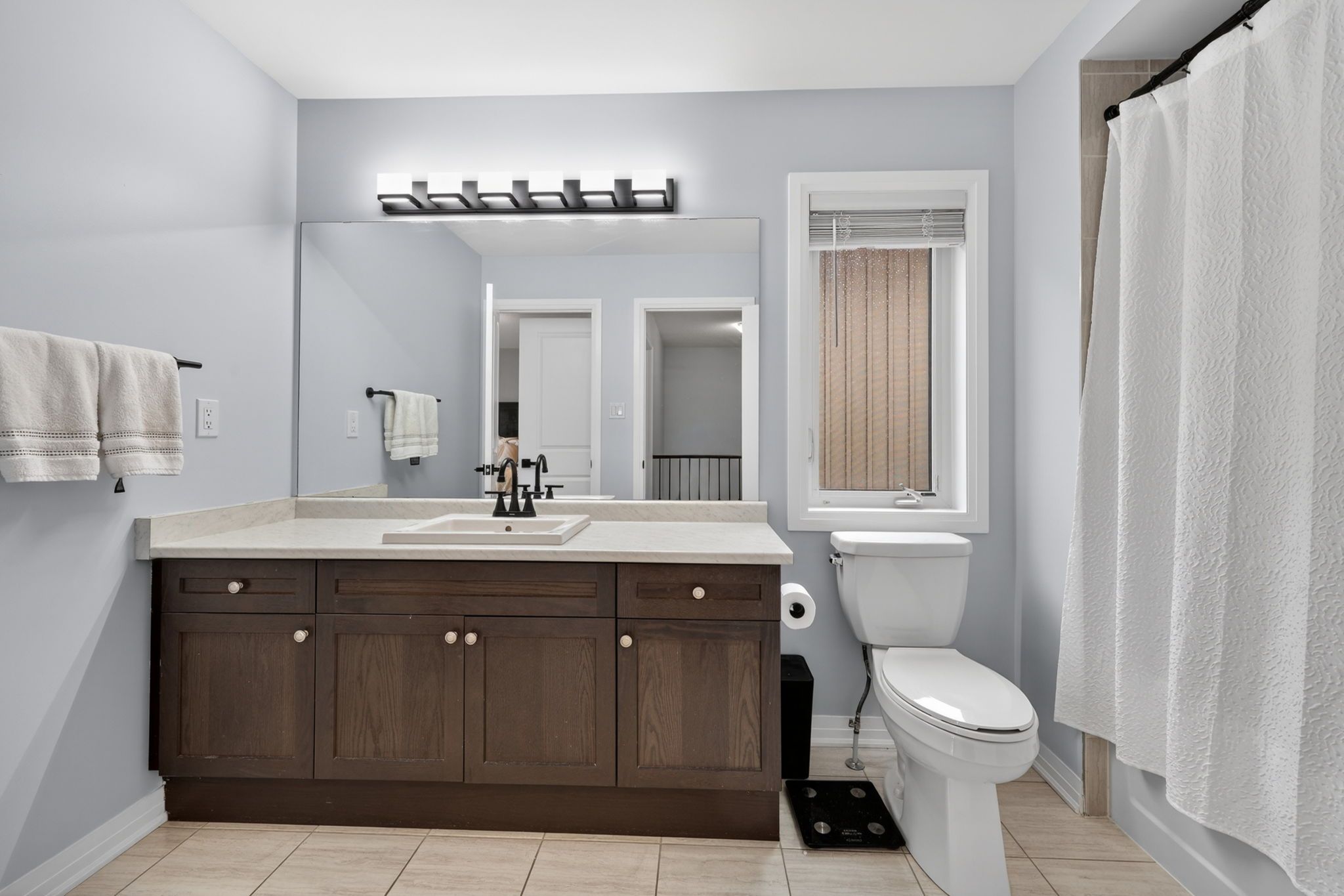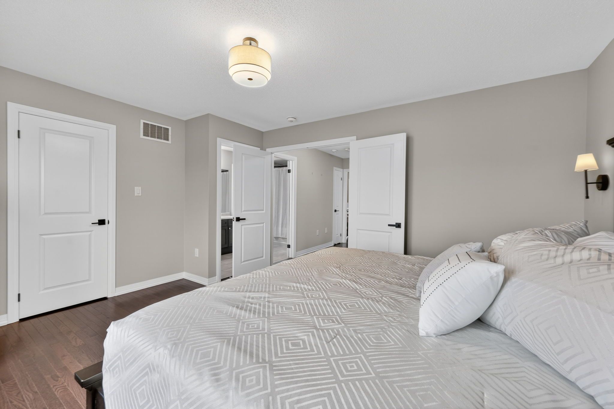 Beautifully maintained semi-detached home, ideally situated in a sought-after, family-oriented neighbourhood in tottenham. From the moment you arrive, you'll appreciate the charming curb appeal, highlighted by elegant stone walkways leading to a generous covered front porch, perfect for morning coffee or evening relaxation. Step inside to a bright and welcoming foyer featuring a double mirrored closet, a convenient powder room, and soaring 9-foot ceilings that carry throughout the main level. The open-concept layout seamlessly connects the kitchen, dining, and living spaces, designing the area for both everyday living and entertaining. Stylish kitchen with upgraded quartz countertops, stainless steel appliances, and a tasteful mosaic backsplash. The adjoining living and dining areas offer a warm, inviting atmosphere with a walkout to the beautifully landscaped backyard, ideal for hosting or enjoying quiet outdoor moments. This carpet-free home showcases a refined combination of tile and hardwood flooring throughout, along with direct interior access to the spacious garage for added convenience. A striking solid oak staircase with wrought iron pickets leads to the upper level, where you'll find generously sized bedrooms featuring new hardwood floors, oversized closets, large sun-filled windows, and a well-appointed main bathroom. The fully finished basement extends your living space with an impressive recreation room, complete with wall-to-wall built-in cabinetry, laminate flooring, and pot lighting, perfect for movie nights, a playroom, or a home office setup. The laundry and utility room is thoughtfully designed with ample built-in storage. Freshly painted throughout, this home is truly move-in ready. The backyard is a private retreat, featuring a large stone patio, hard-top gazebo, level lawn, storage shed, full privacy fencing, and beautifully curated landscaping, offering the perfect blend of function and outdoor enjoyment.
