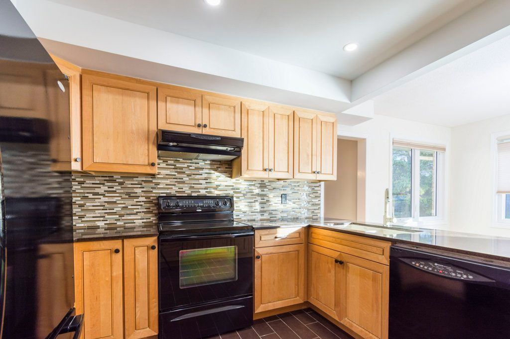 • Sunny eat-in kitchen with quartz countertops and Thomasville cabinets.