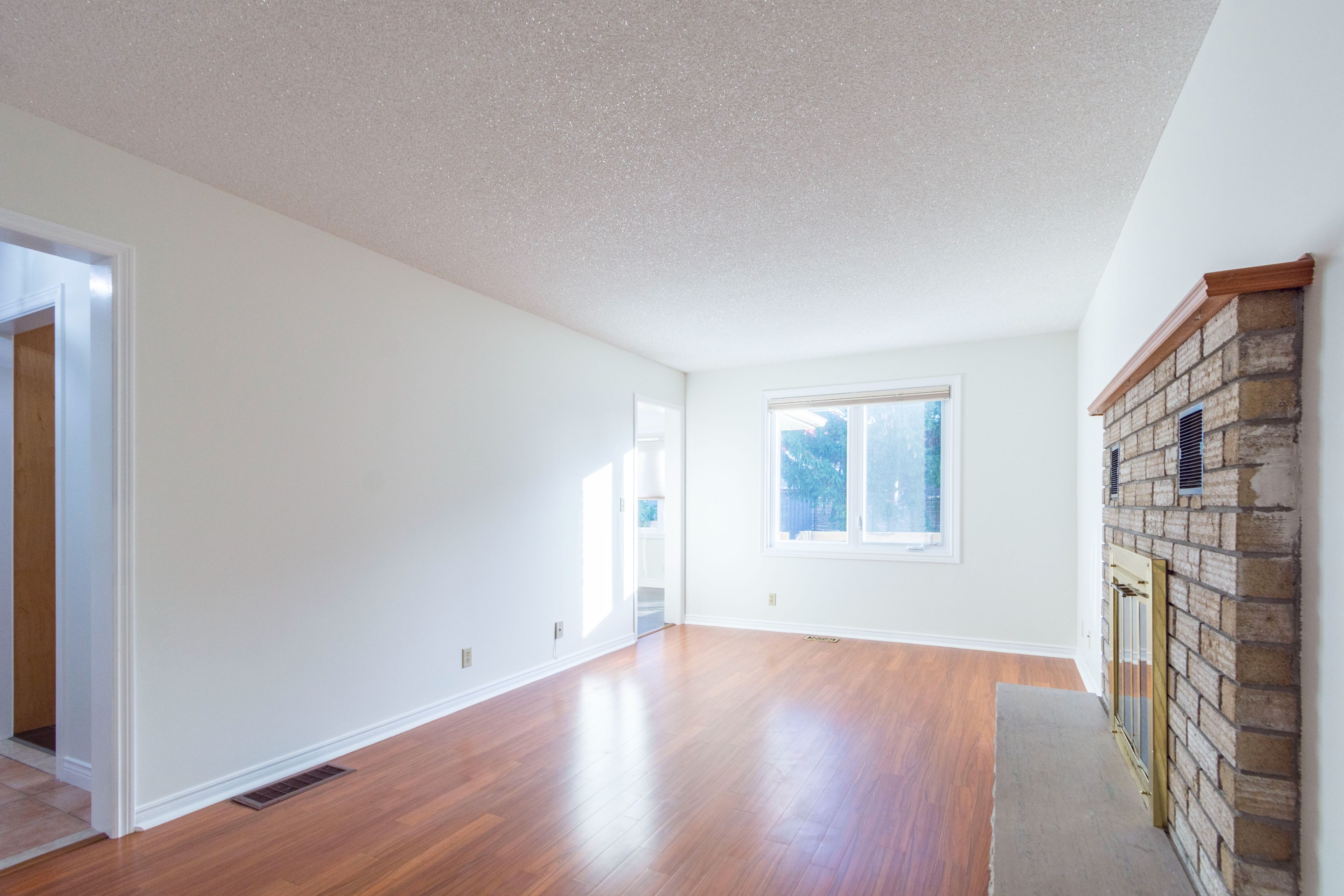 • Spacious living areas with hardwood floors and a cozy wood burning fireplace.