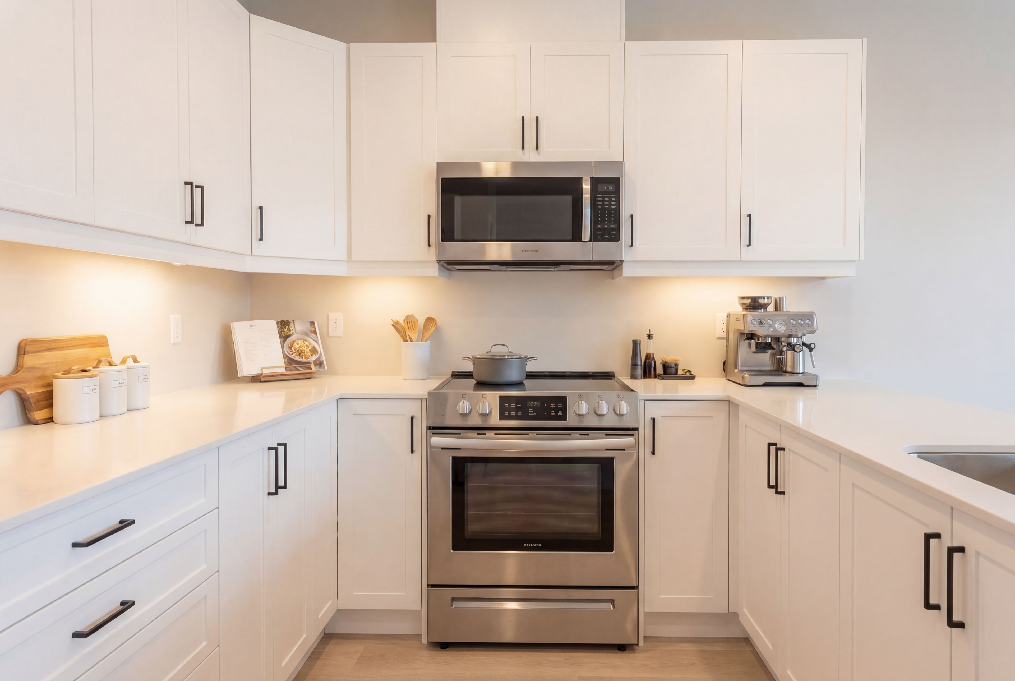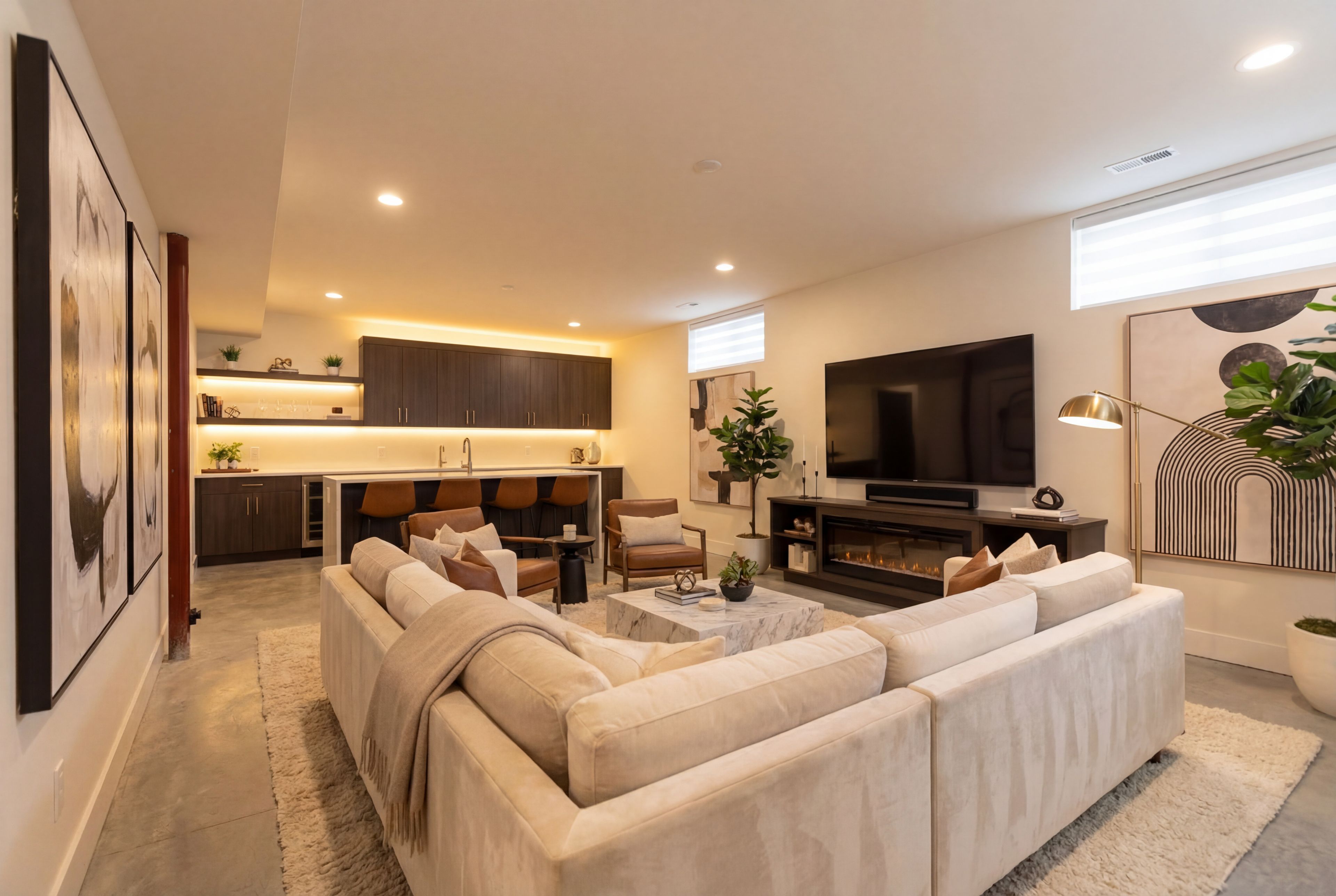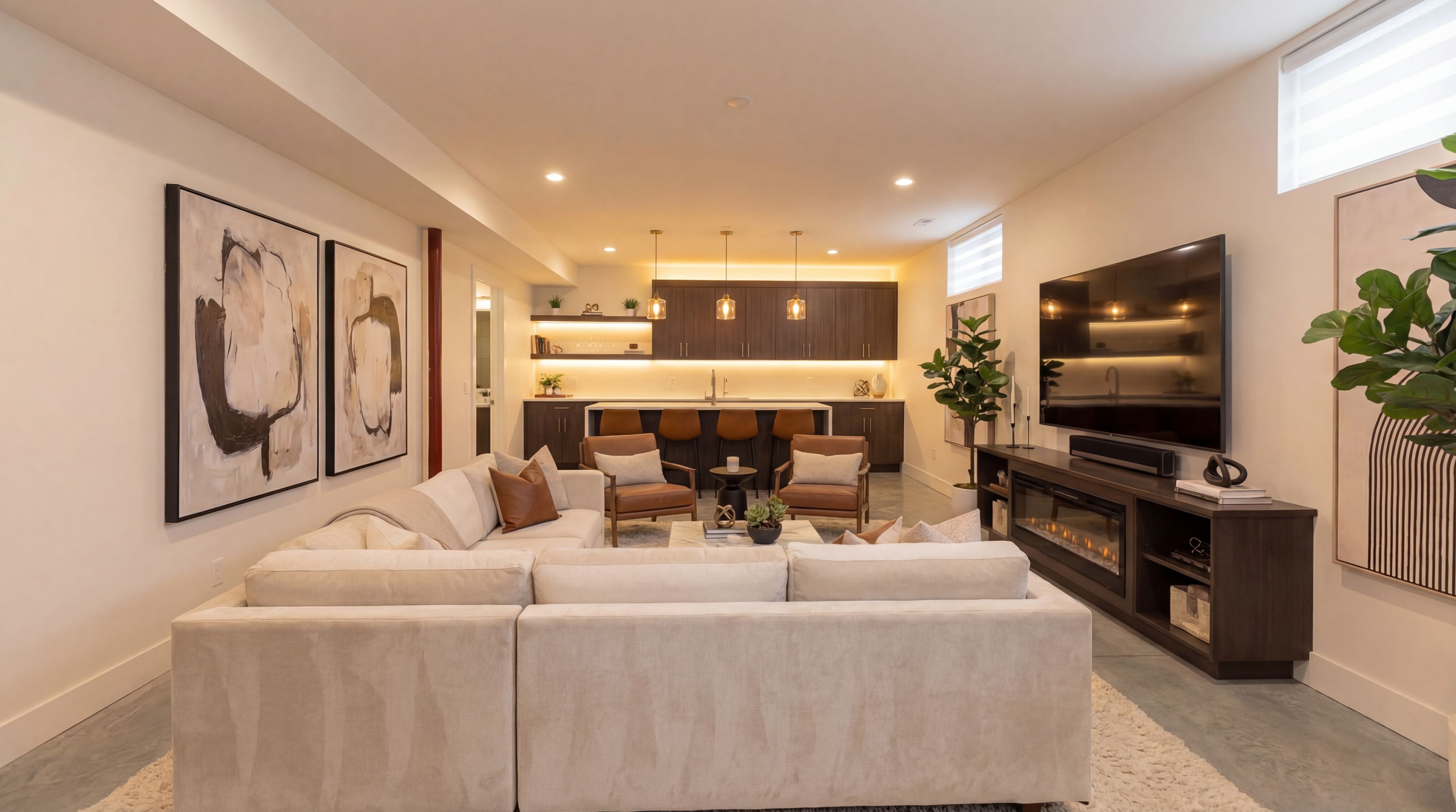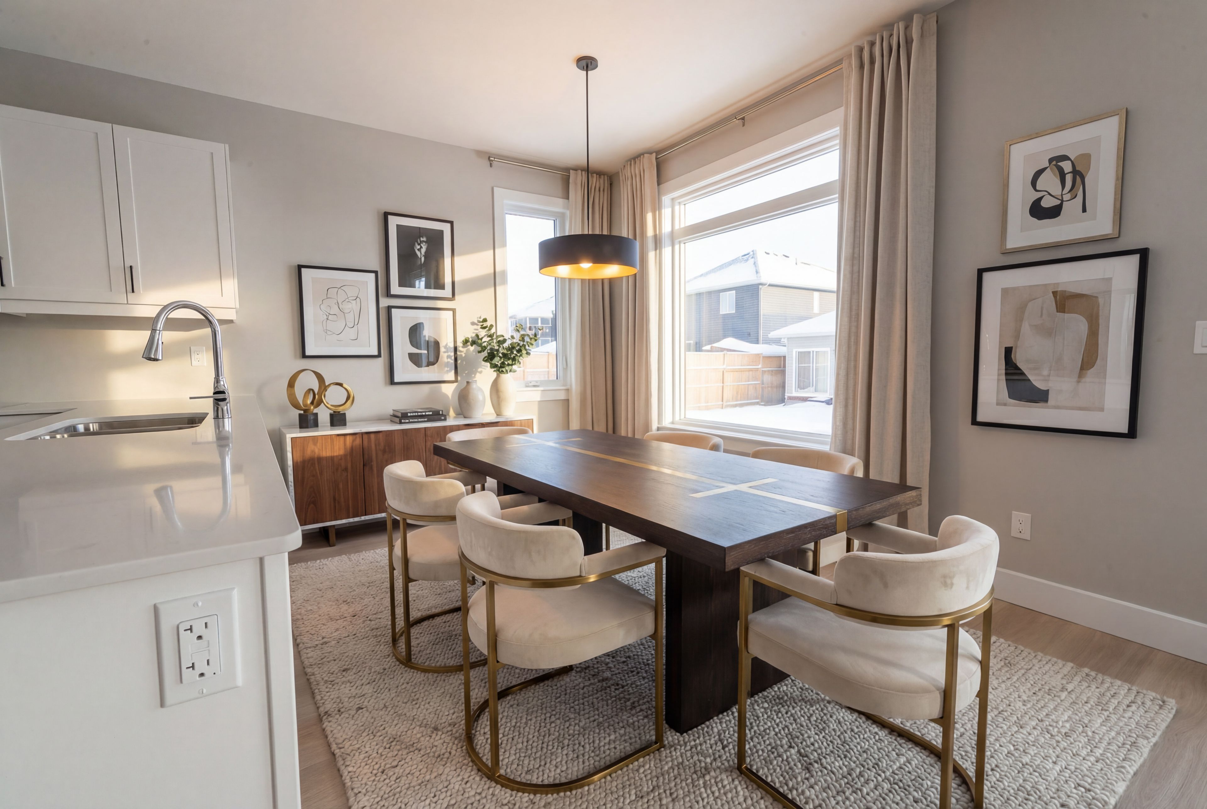 • Open-concept kitchen, dining, and living area filled with natural light.