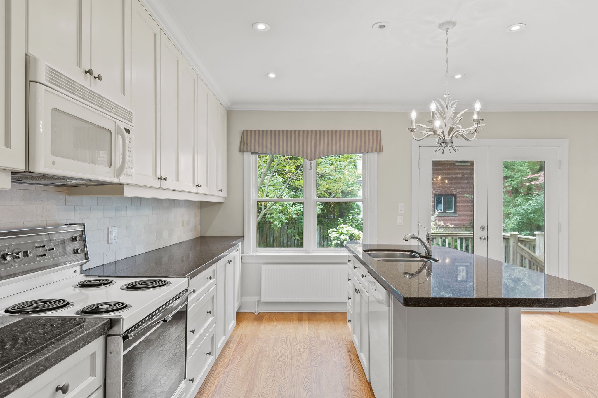 • Beautifully landscaped lot with garage and private driveway for three cars.
