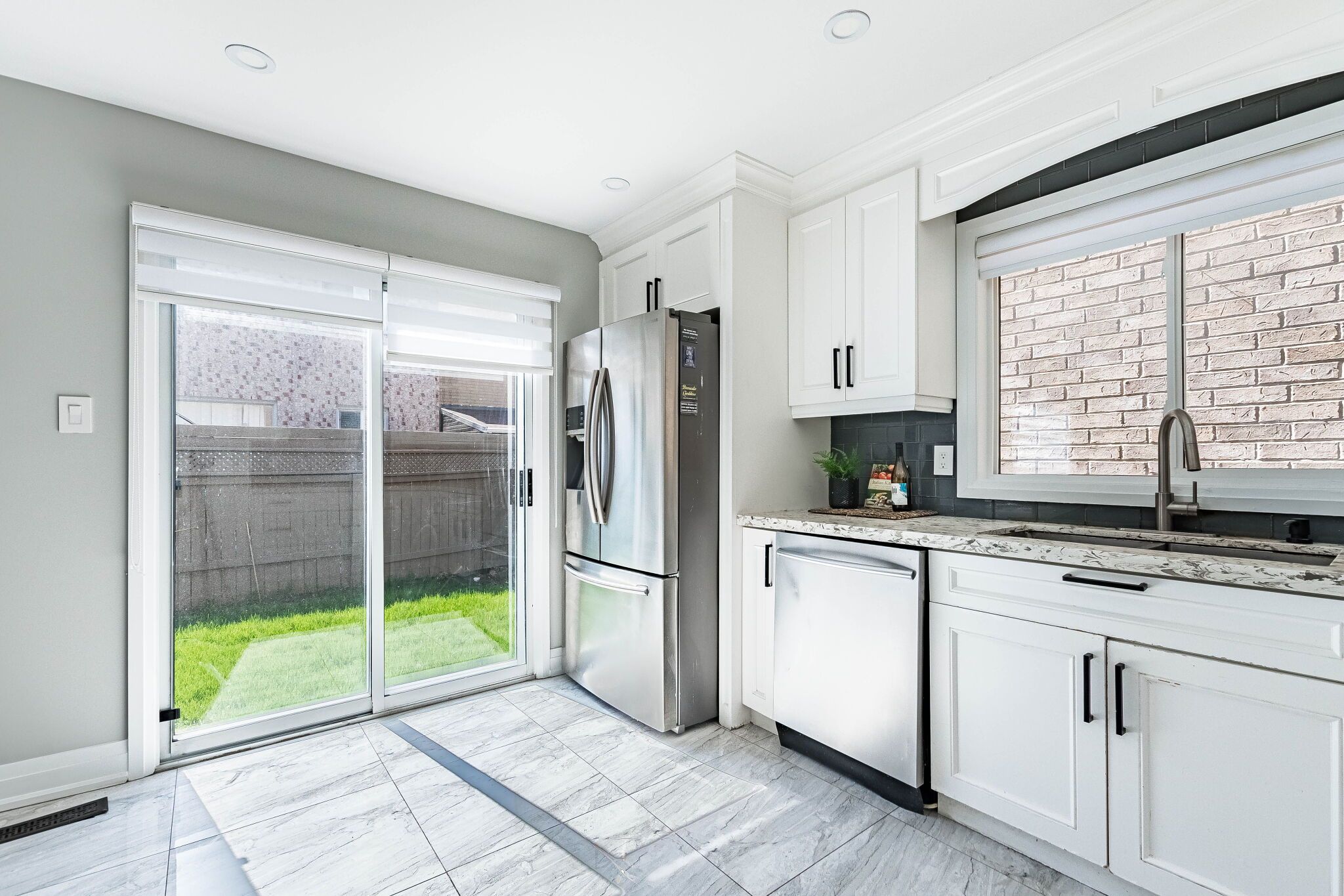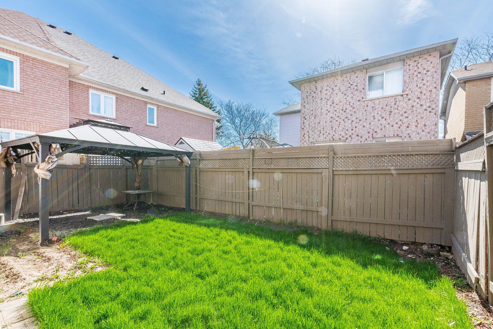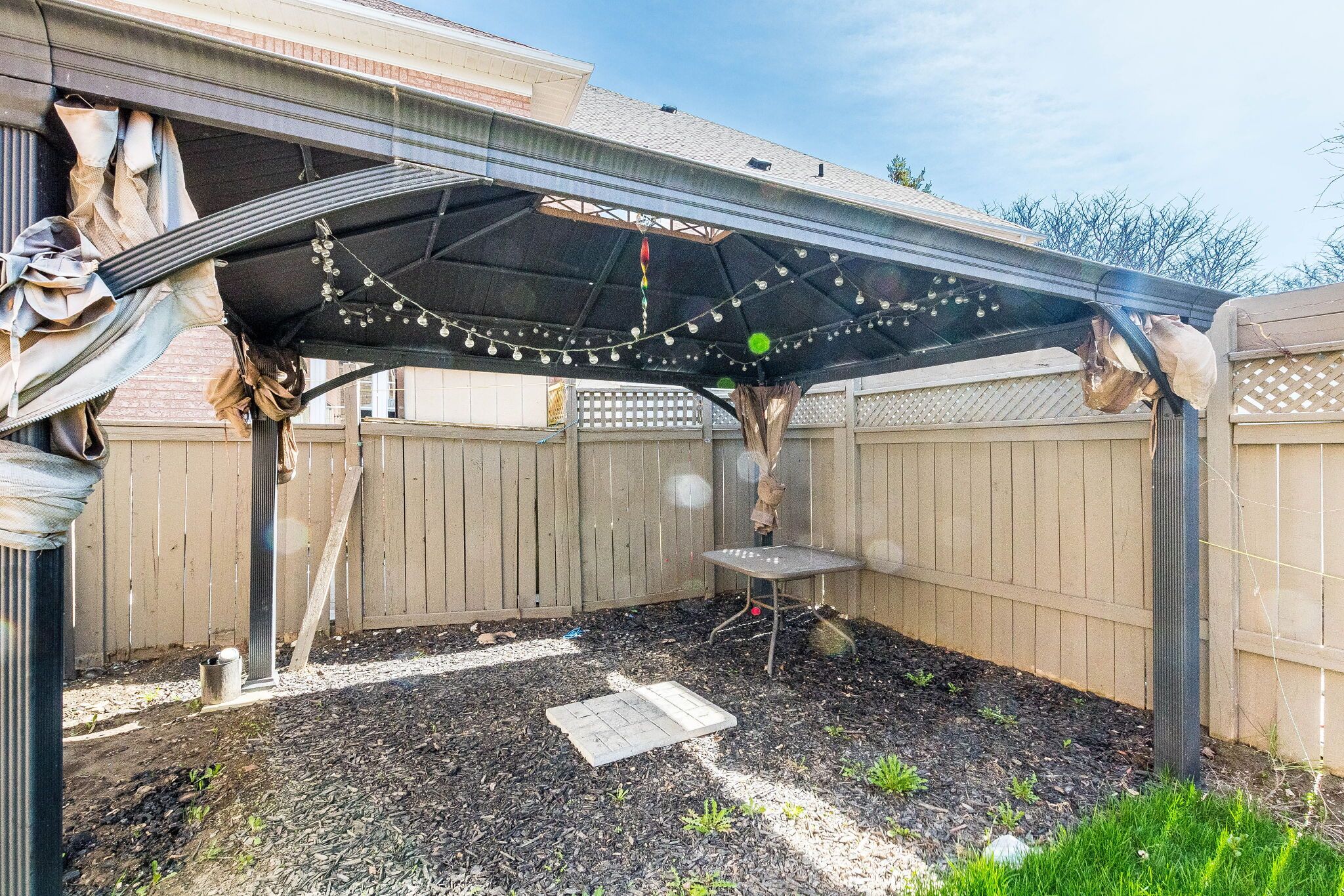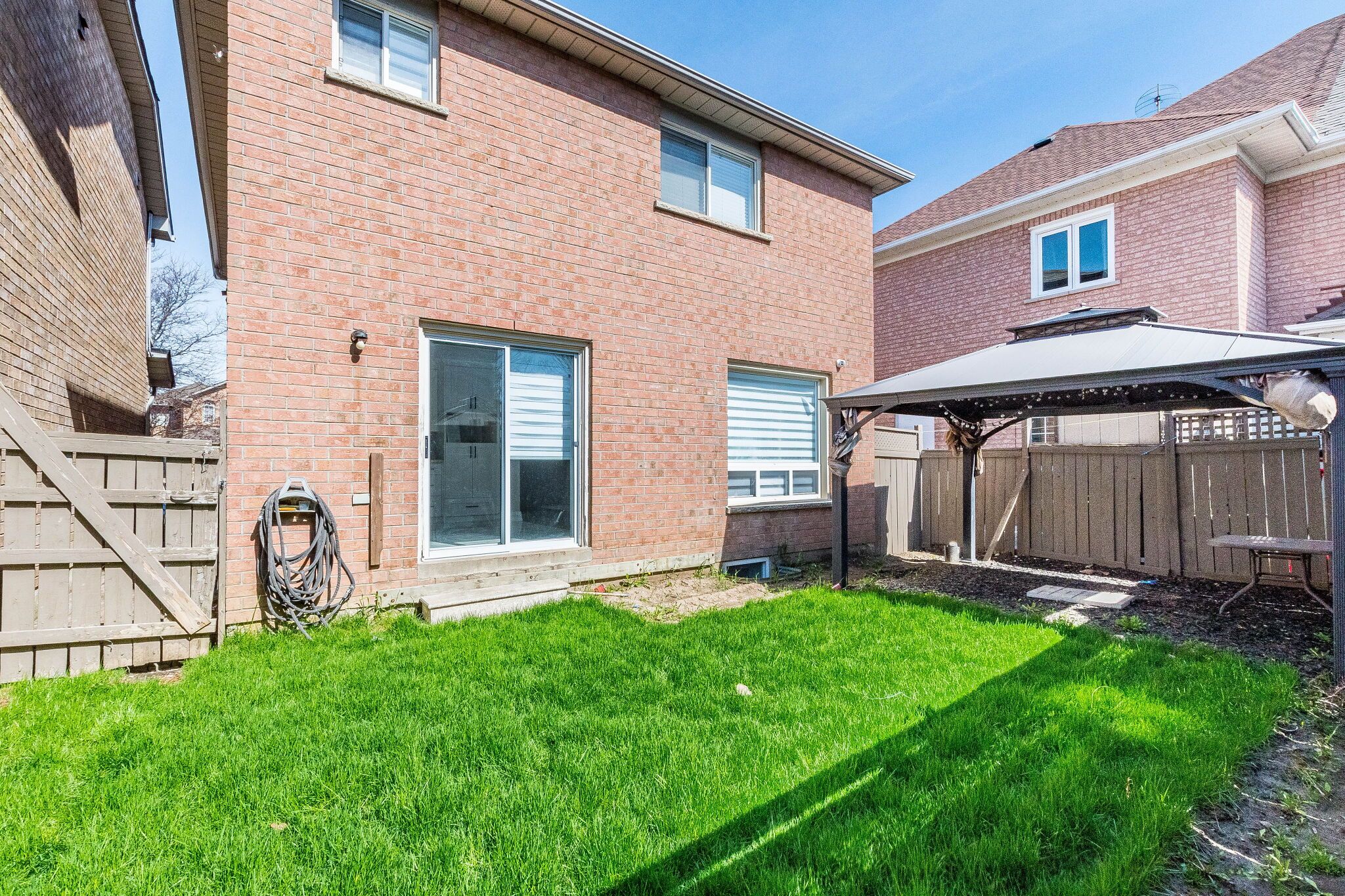 • Private fenced backyard with an interlock walkway for outdoor enjoyment.