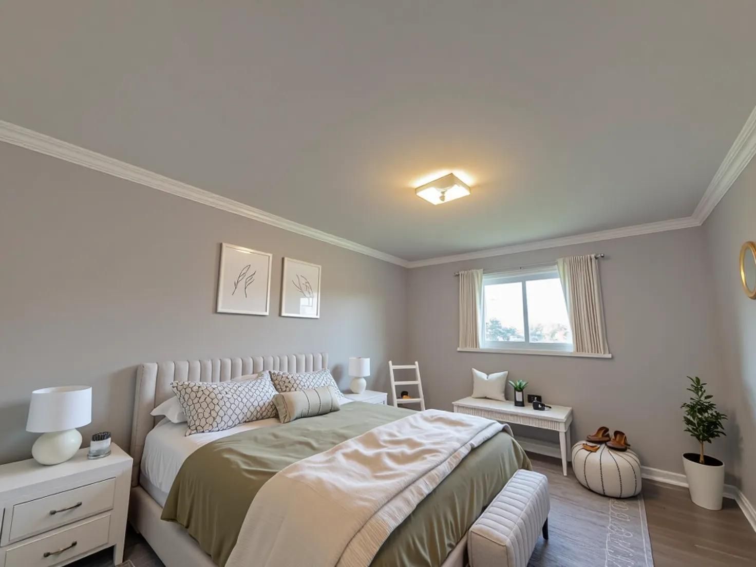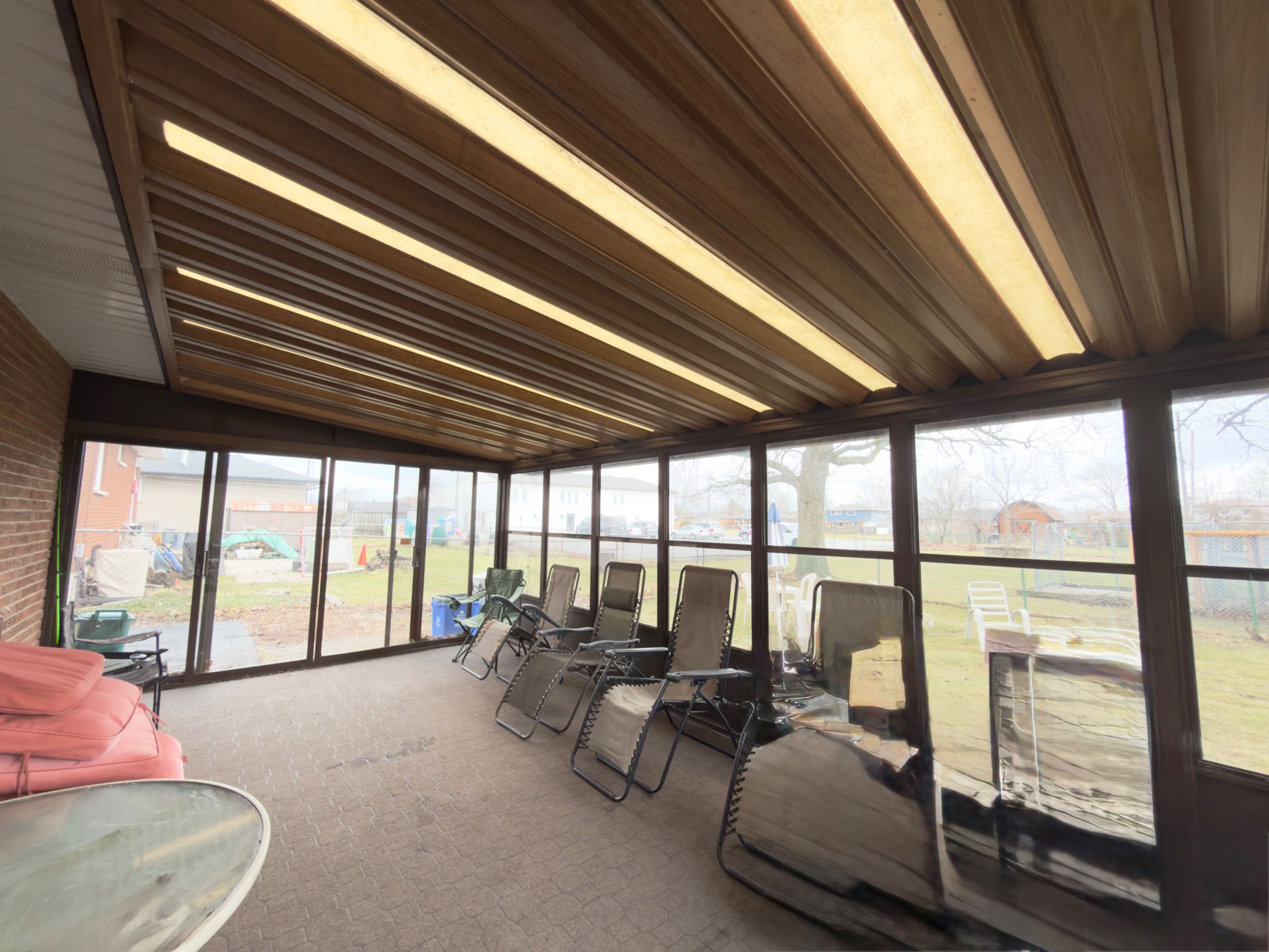 • Bright sunroom overlooking a private backyard for year-round enjoyment.