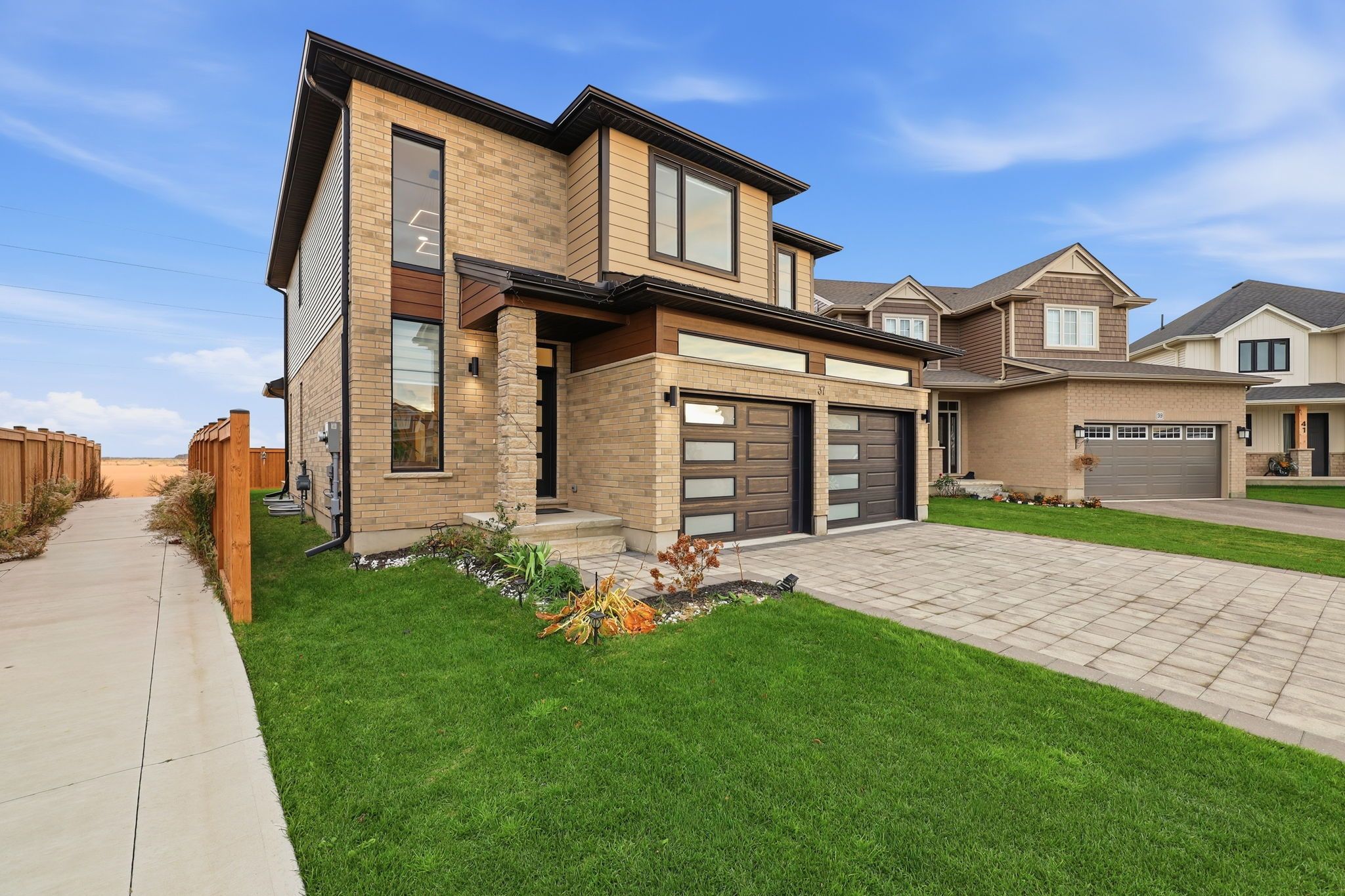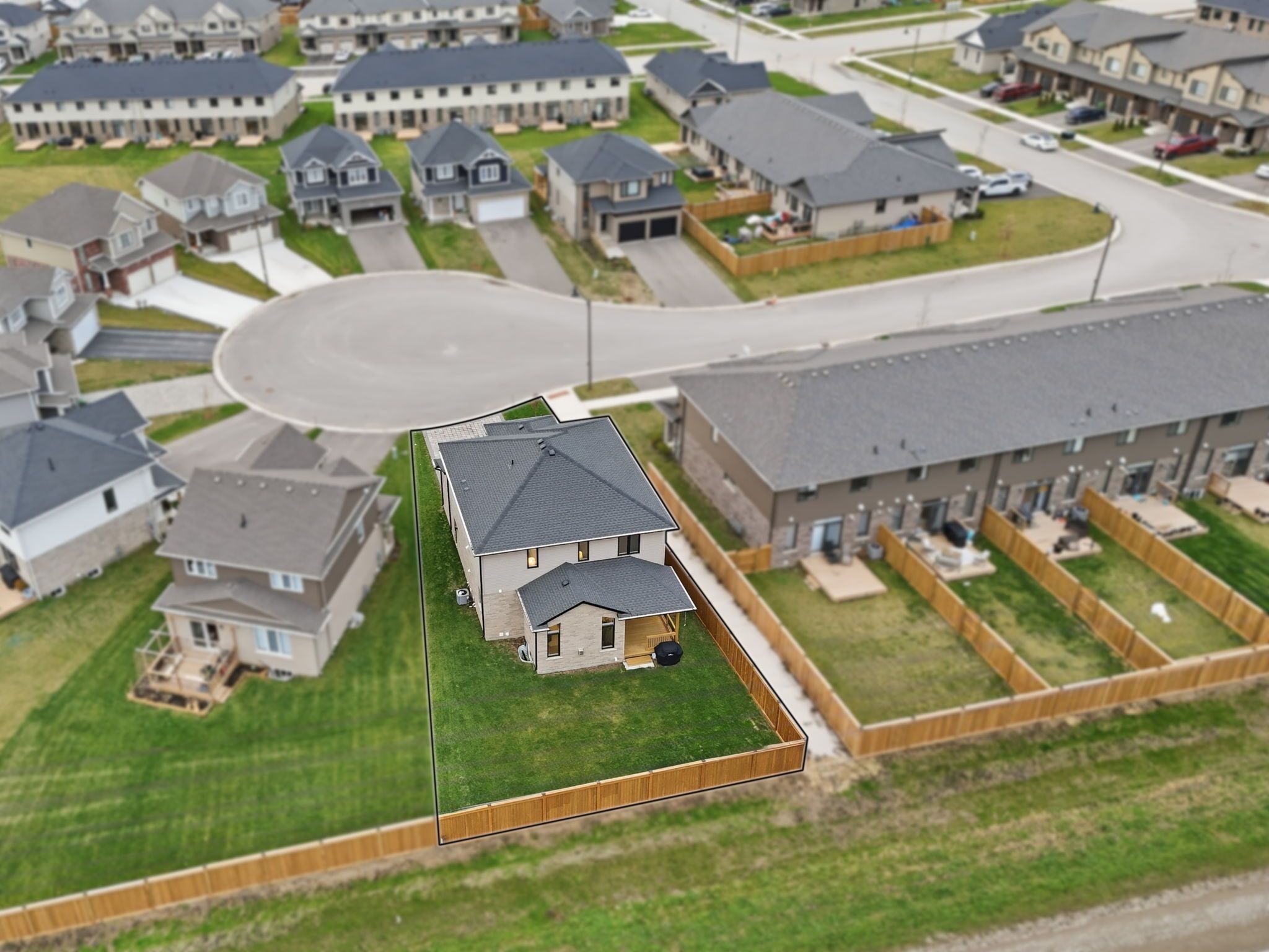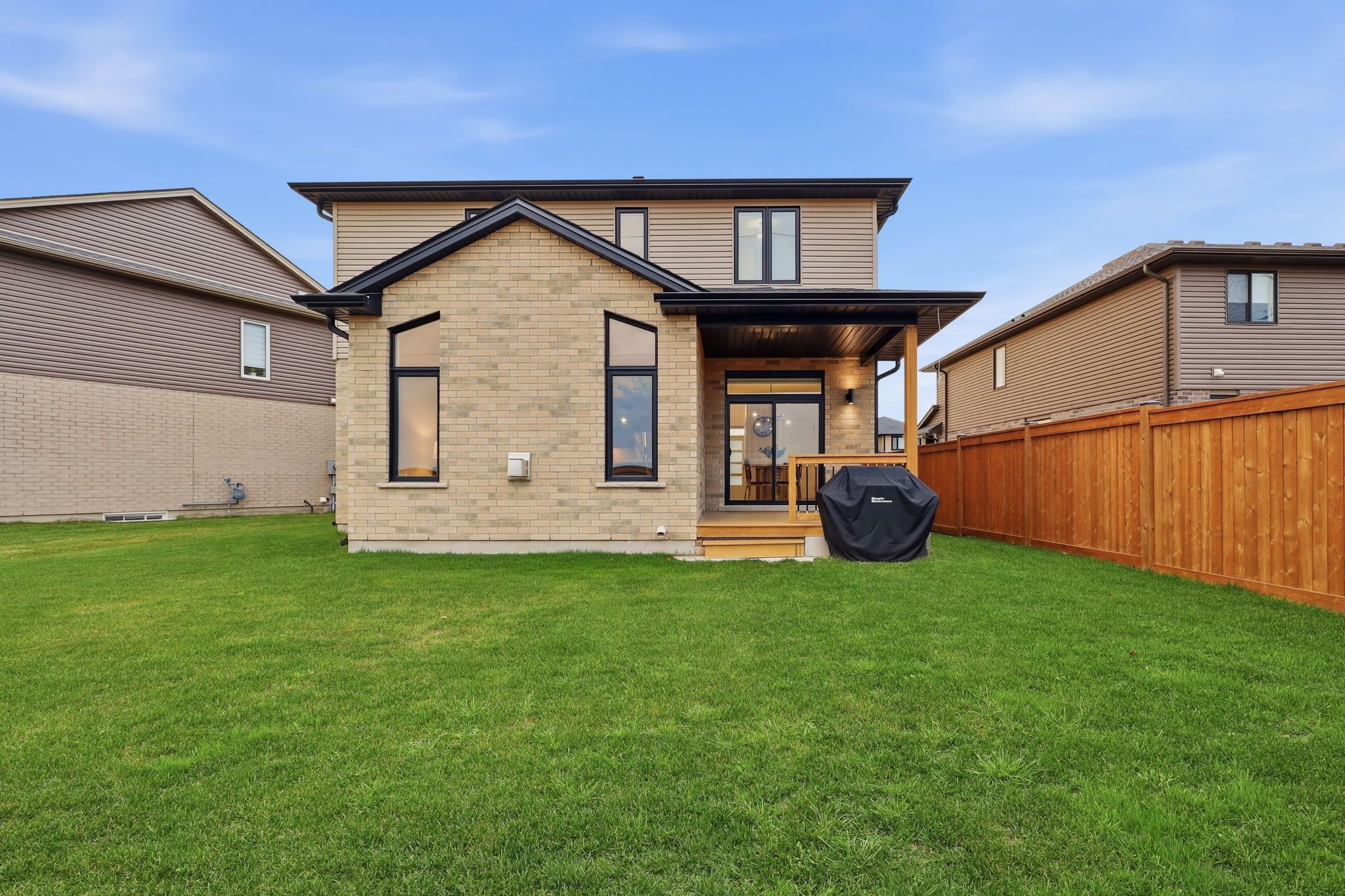 Step inside this beautiful 2023 new build tucked away on a quiet court in st. Thomas and sitting on a premium lot with no walkway out front. From the moment you arrive, the modern exterior stands out with blackout doors, window trims, gutters, and garage doors, along with an extended garage that adds valuable space for parking or storage. The main foyer is bright and welcoming, leading either upstairs or into the open concept main floor. Smooth ceilings, hardwood flooring, and all led lighting create a warm and polished feel from room to room. The living area enjoys a cathedral ceiling and a gas chimney feature, giving the space height and comfort. Windows bring in natural light while the fireplace sets the tone for relaxing evenings or gatherings. The dining area connects seamlessly to the kitchen, where quartz countertops, generous storage, a centre island, and kitchenaid appliances make everyday cooking enjoyable. A mudroom with laundry links directly to the garage for convenience, and sliding doors open to the shaded patio and fully fenced backyard. A two piece bathroom completes the main level. Upstairs offers nine foot ceilings and four well sized bedrooms, each with closet space. The primary suite includes a walk in closet and a five piece ensuite with double sinks, a stand up glass door shower, and a bathtub. A second full bathroom serves the remaining bedrooms. The basement is unfinished with eight foot two inch ceilings, but brings strong potential with a legal separate entrance from the garage, legal sized windows, and a rough in for a future bathroom. It also includes a two hundred amp electrical panel, pre plumbing for a gas line to the backyard and garage, rough in for electric car charging, and pre wired security camera lines. This home combines thoughtful upgrades, future opportunity, and a quiet court location, offering a welcoming place to settle into st. Thomas. Don't miss out and book a showing today!