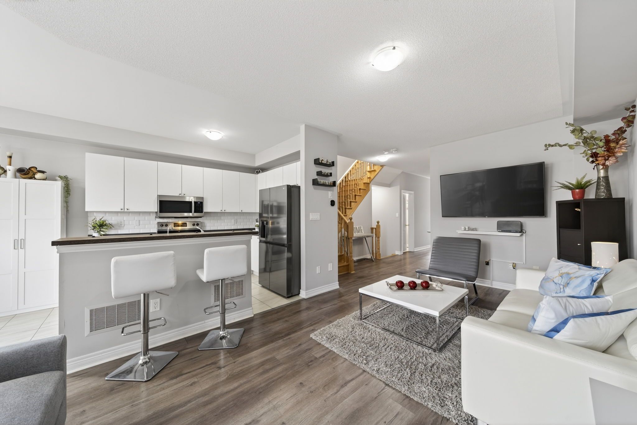 • Open concept main floor with modern kitchen and large breakfast area.