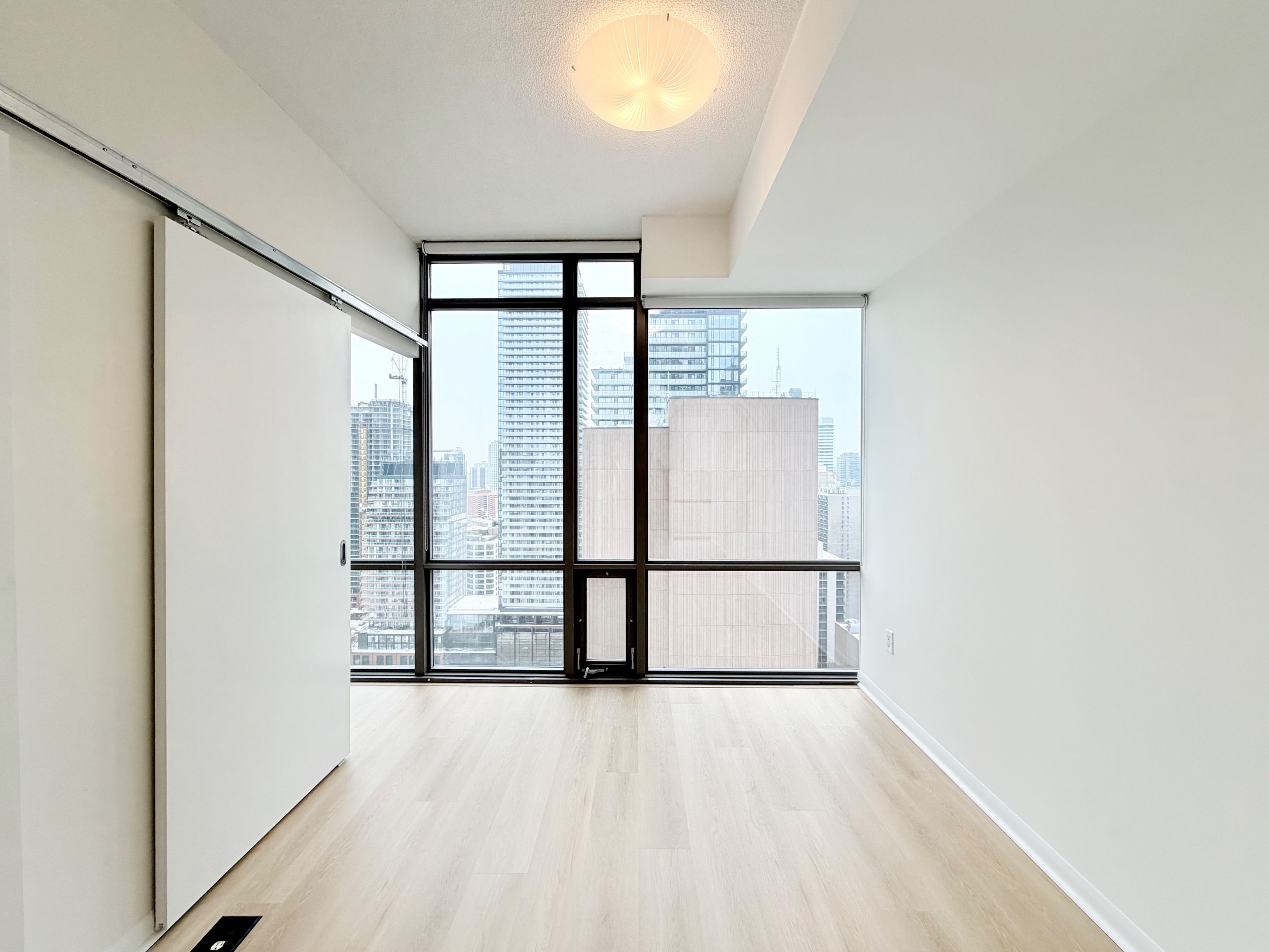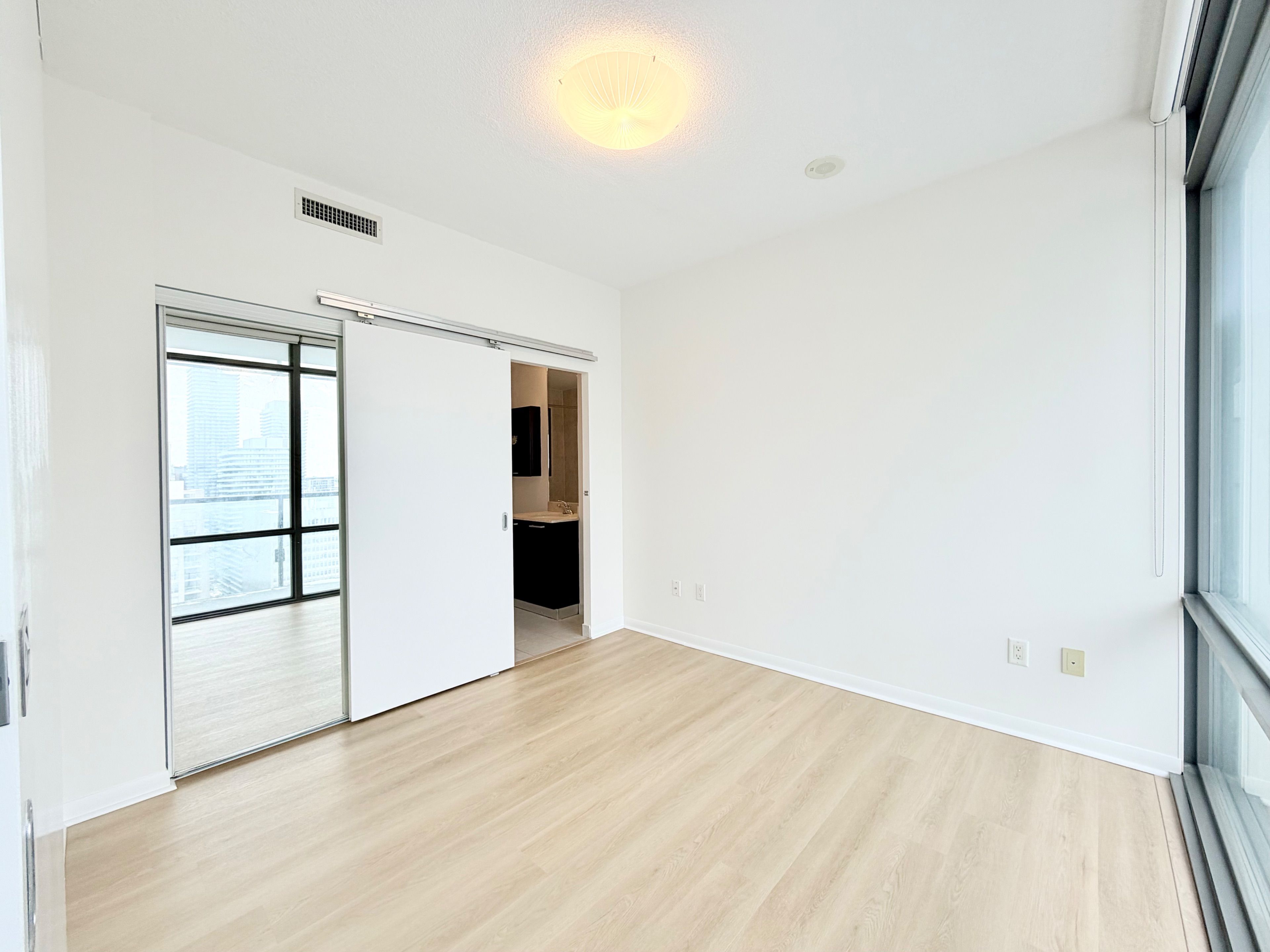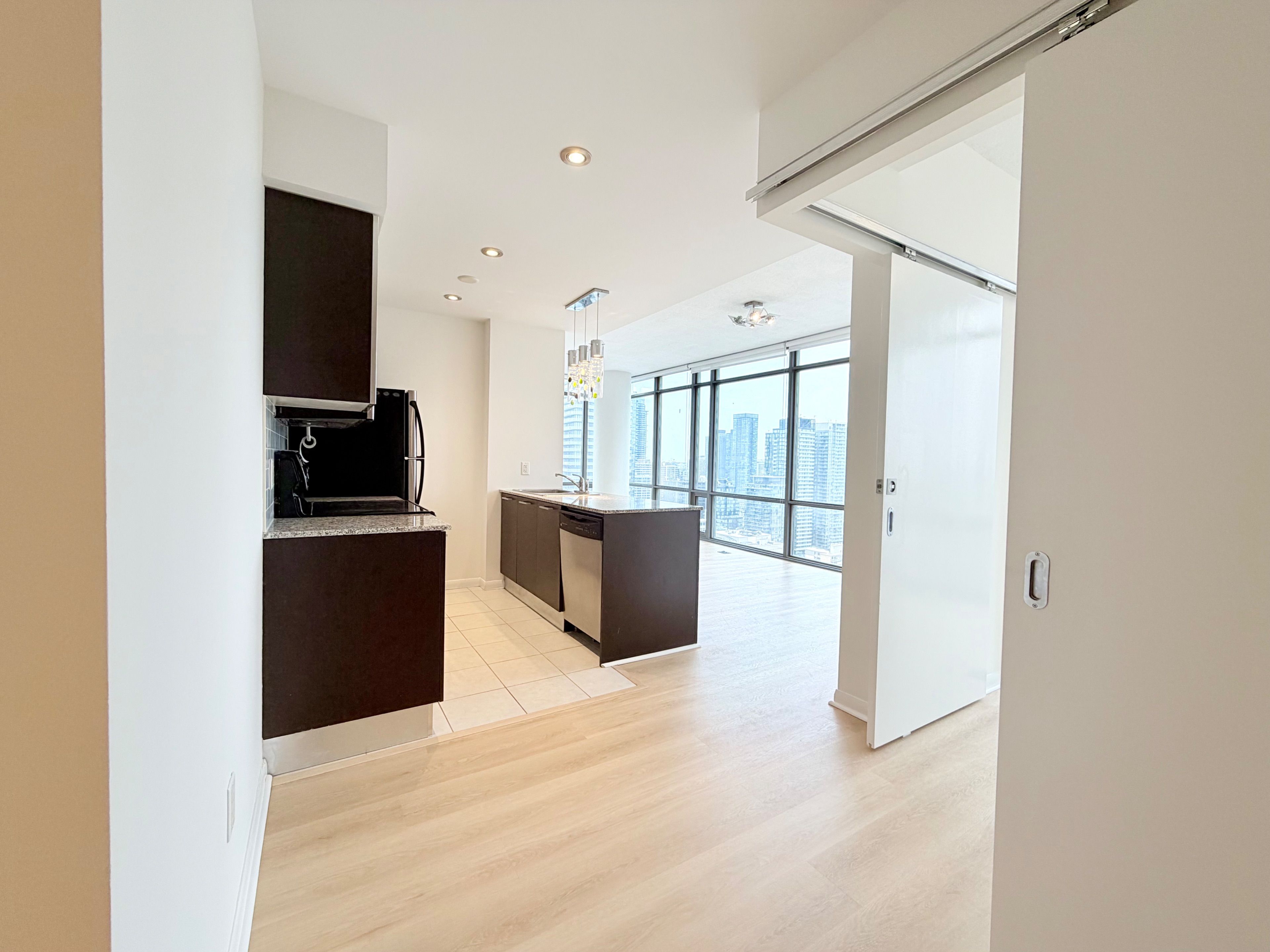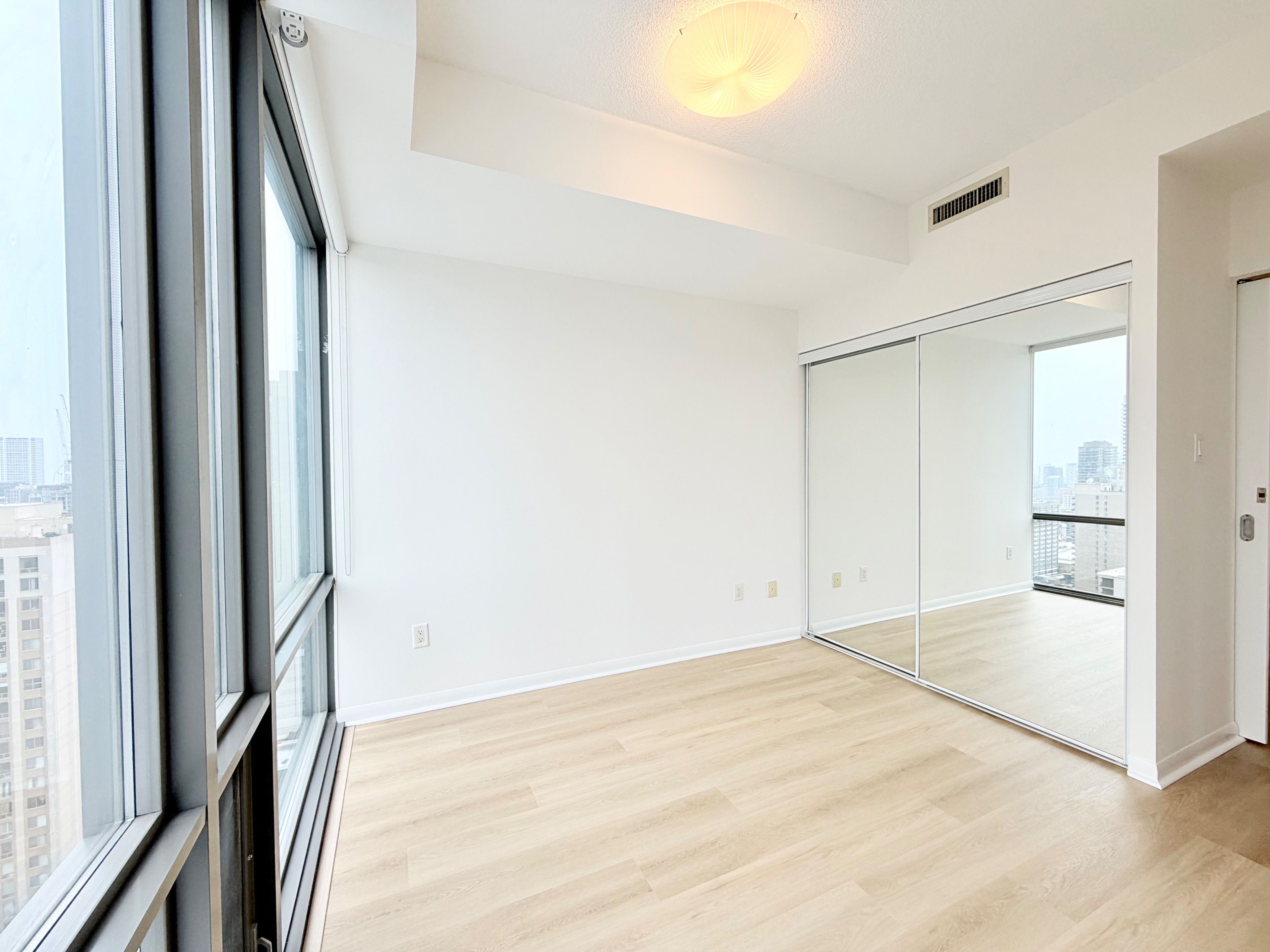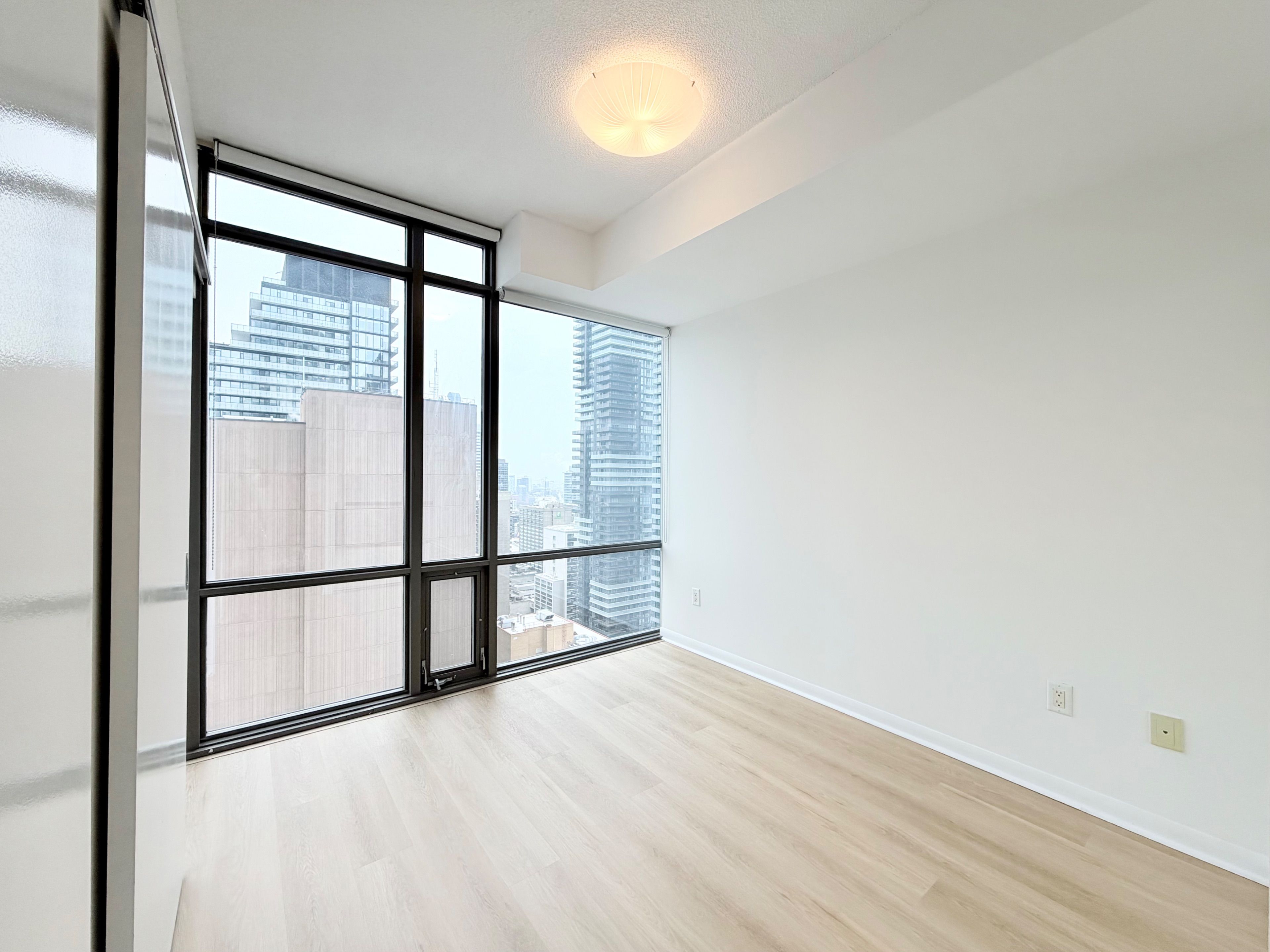Bright & spacious 2 bedroom + den unit. In high demand downtown location. 857 sf with 9'ceilings, floor-to-ceiling windows and an amazing 29th floor scenic northeast view. Brand new flooring & freshly painted. The open concept kitchen boasts granite counters & stainless steel appliances, and provides a look-out to the living room & gorgeous view of city. Great layout offering split bedrooms for privacy. Primary bedroom offers a large 4-piece ensuite with soaker tub. Fantastic location allowing for a quick walk to the financial district, uoft, tmu, hospitals, college park, college subway station, plenty of supermarket options, restaurants, banks, cafes and so much more.
