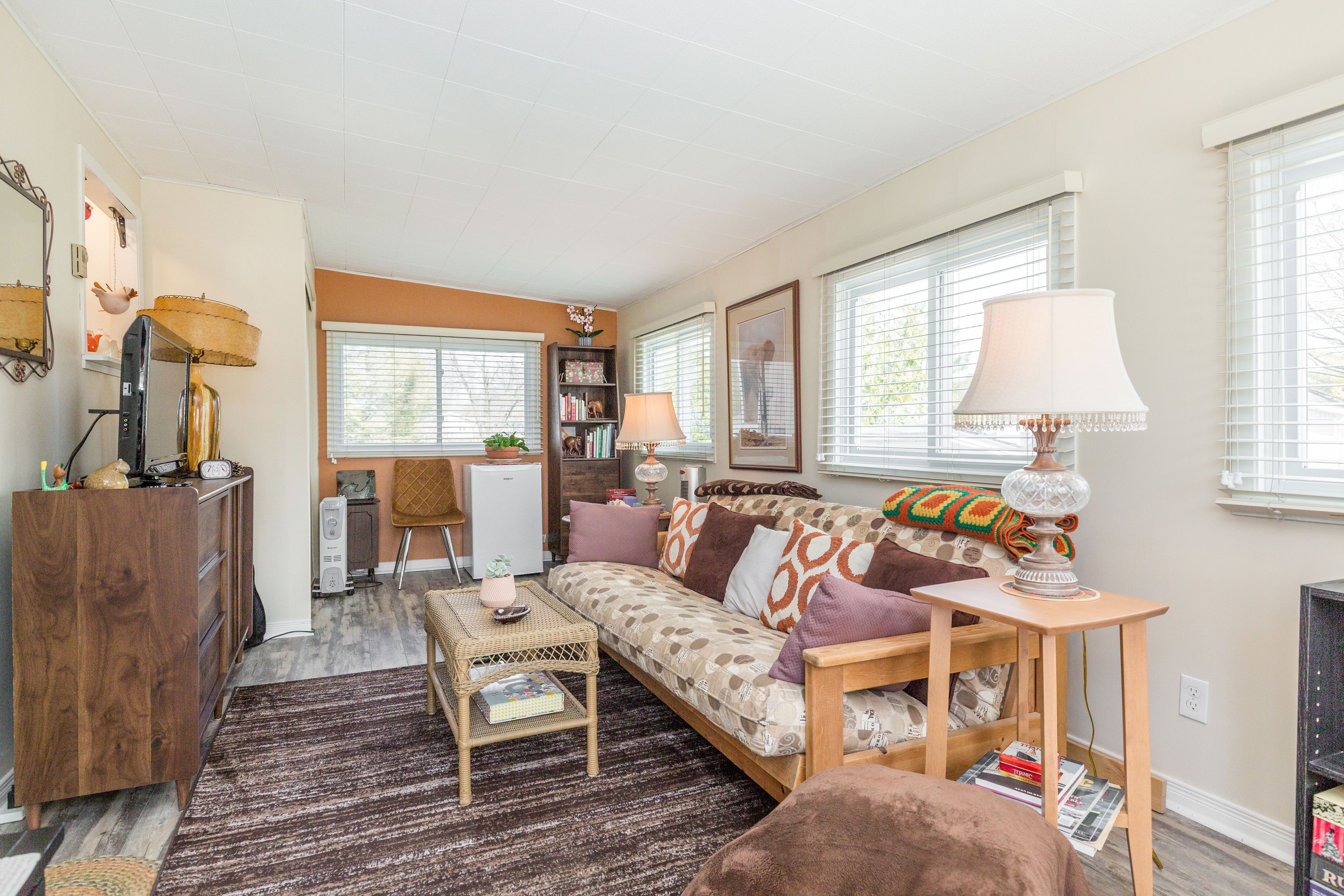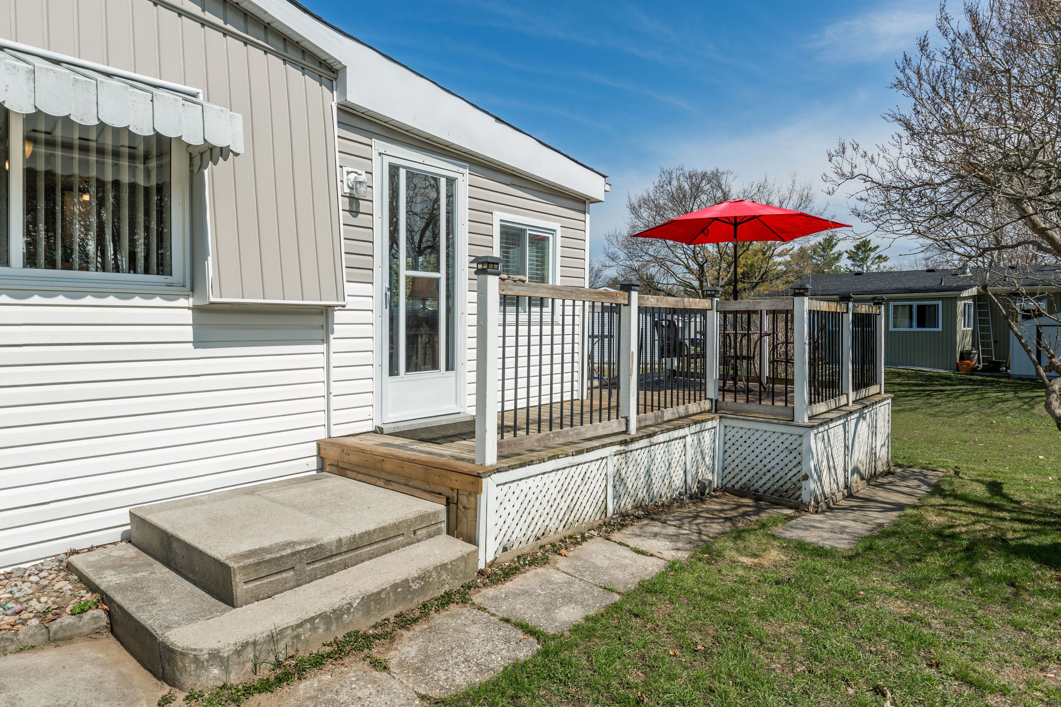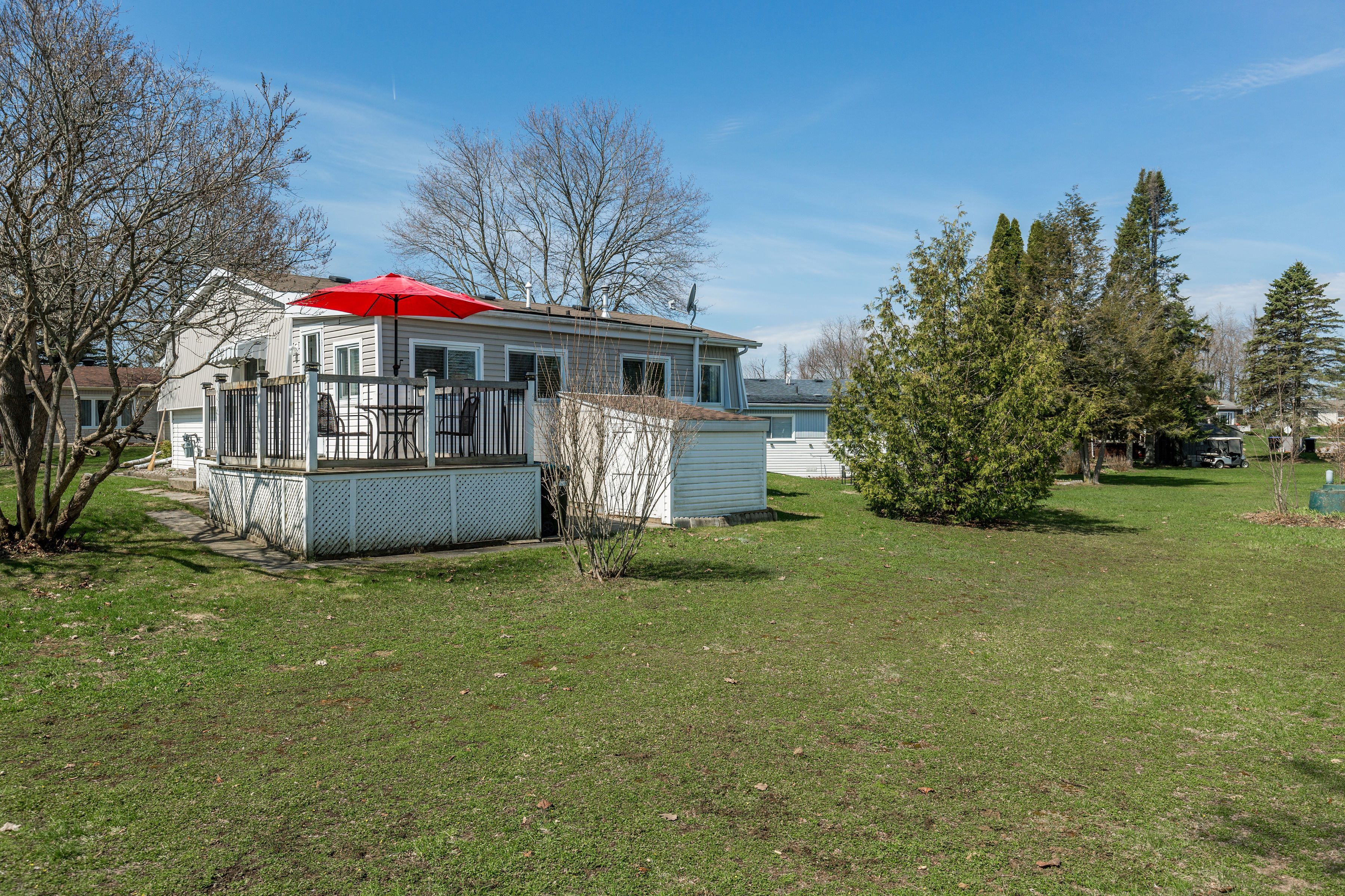 Relaxed, low-maintenance living on the sought-after north side of sandycove acres! Welcome to this beautifully maintained 2 bedroom, 1 bathroom bungalow in innisfil's most popular adult lifestyle communities. This move-in ready home offers comfort, convenience, and value. Bright and functional, the layout features an attached family room for added living space, a covered front porch for morning coffee, and a stunning picture window that fills the living & dining rooms with natural light. Carpet-free throughout, the home offers engineered hardwood flooring and waterproof laminate in the family room. Enjoy the added benefit of a flat entrance, forced air gas heating, and central air for year-round comfort. The updated interior includes a modern white kitchen, bath fitter surround, custom pantry with barn door, custom window coverings, and fresh paint throughout. Outside, enjoy a spacious back deck perfect for summer bbqs, plus two storage sheds for added convenience. Residents of sandycove acres enjoy exceptional amenities including two heated outdoor pools, three community centres, a gym, woodworking shop, shuffleboard and pickleball courts, plus a wide variety of clubs and social activities. Ideally located near lake simcoe, innisfil beach park, south barrie go, shopping, and highway 400, you're close to everything you need while enjoying a peaceful setting. Affordable, stylish, and move-in ready with a lower assumable land lease of $788. 87/month plus taxes of $167. 40/month ($956. 27 total). A fantastic opportunity to enjoy the sandycove lifestyle!