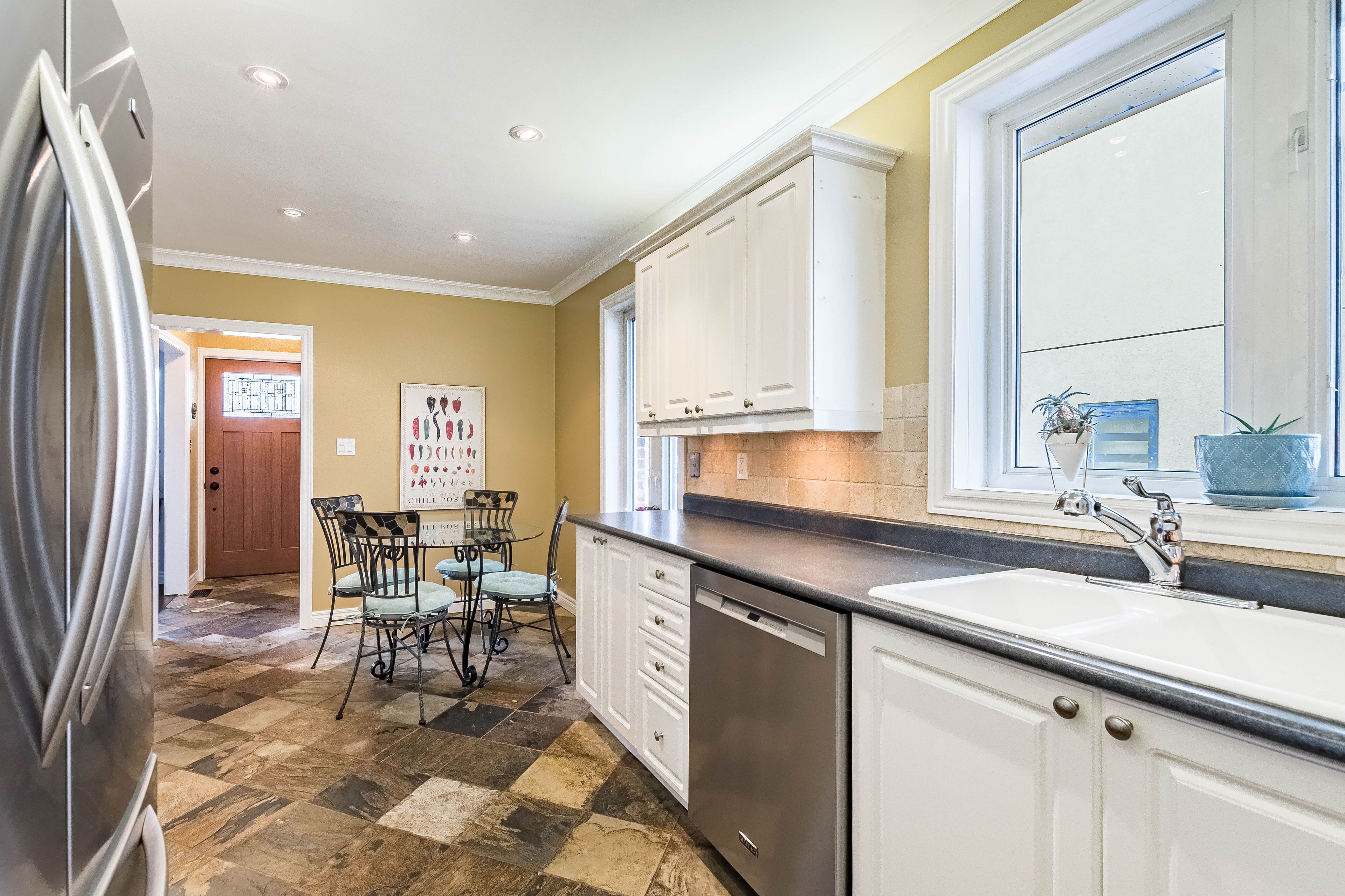 • Upgraded kitchen with cozy breakfast area and stainless steel appliances.