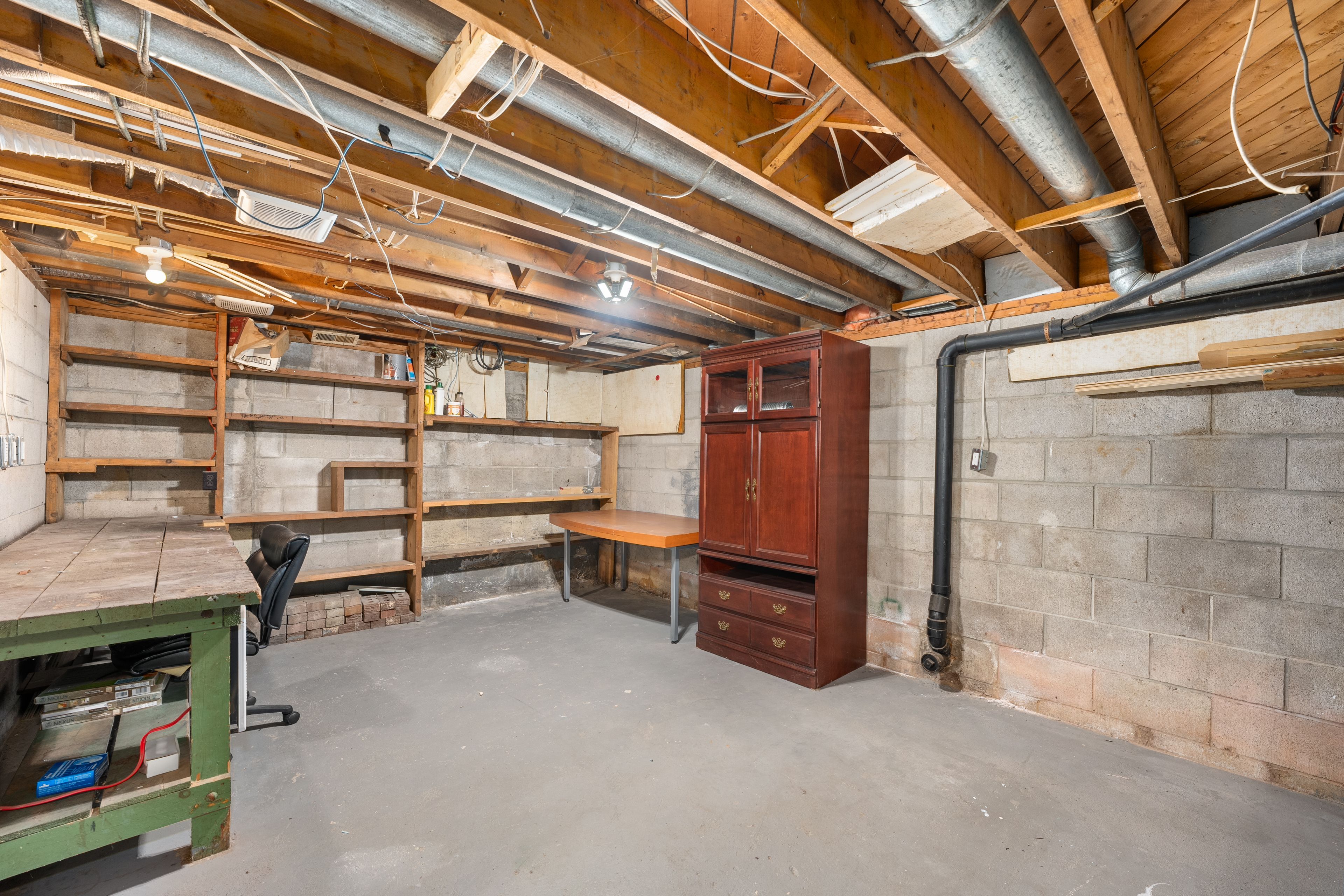 • Unfinished basement with high ceilings offers potential for customization.