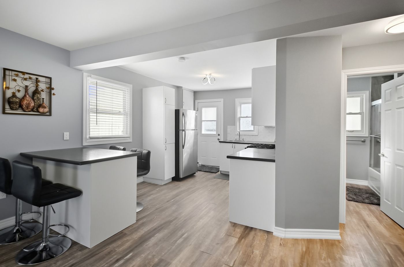 • Open concept living, kitchen and eat-in area for spaciousness.