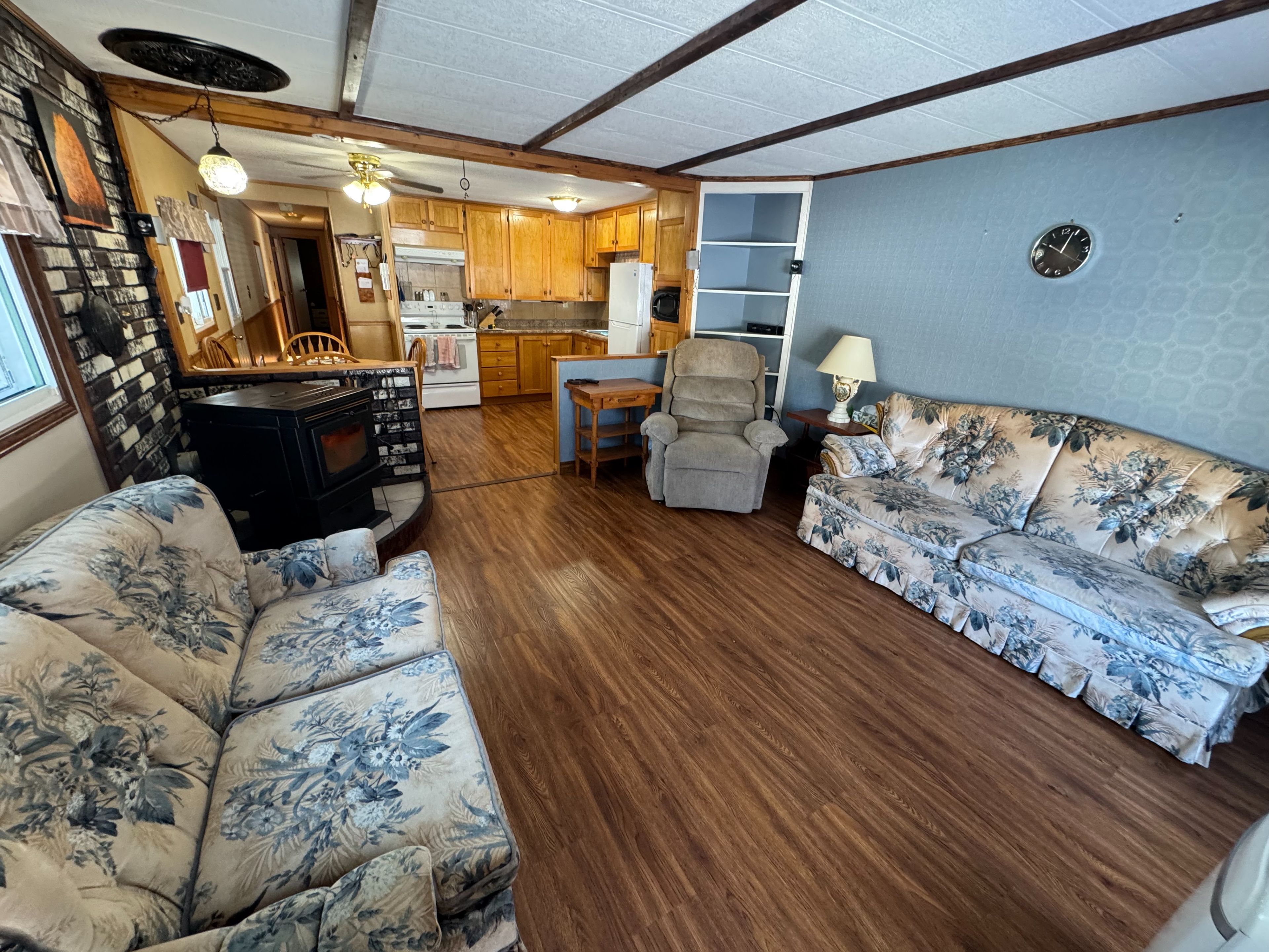 Open concept eat-in kitchen & living room in the community of sama park. This property offers a 2bdrm, 1 bath w/ 2 other bonus rooms. Property is heated by a pellet stove & electric baseboard. The 1 1/2 car garage w/ wood stove is set up for a perfect hang out & there is no shortage of storage w/ the back storage room on the garage & back shed w/ a lean attached for those outdoor toys. Estate sale so property is being sold as is.