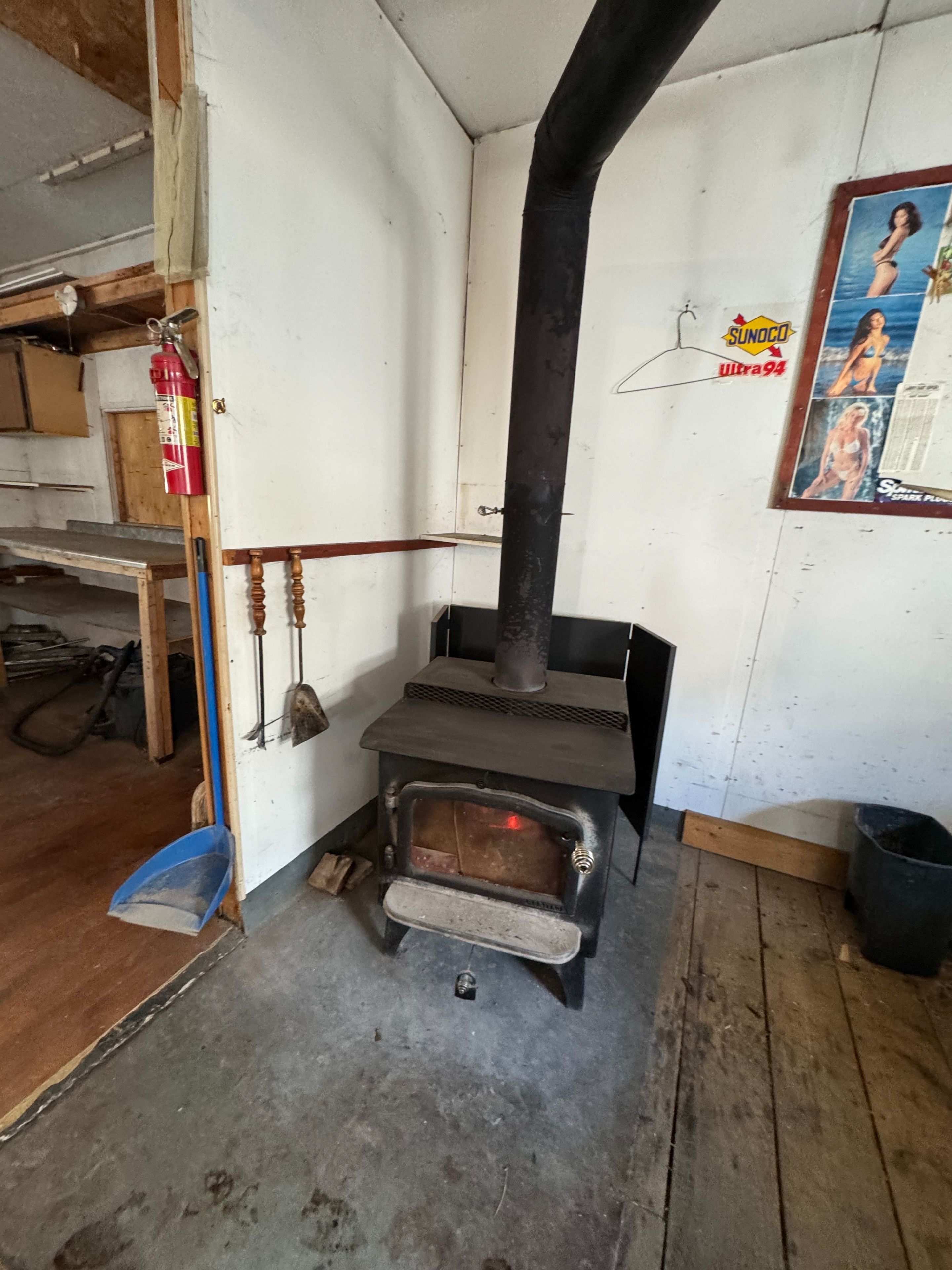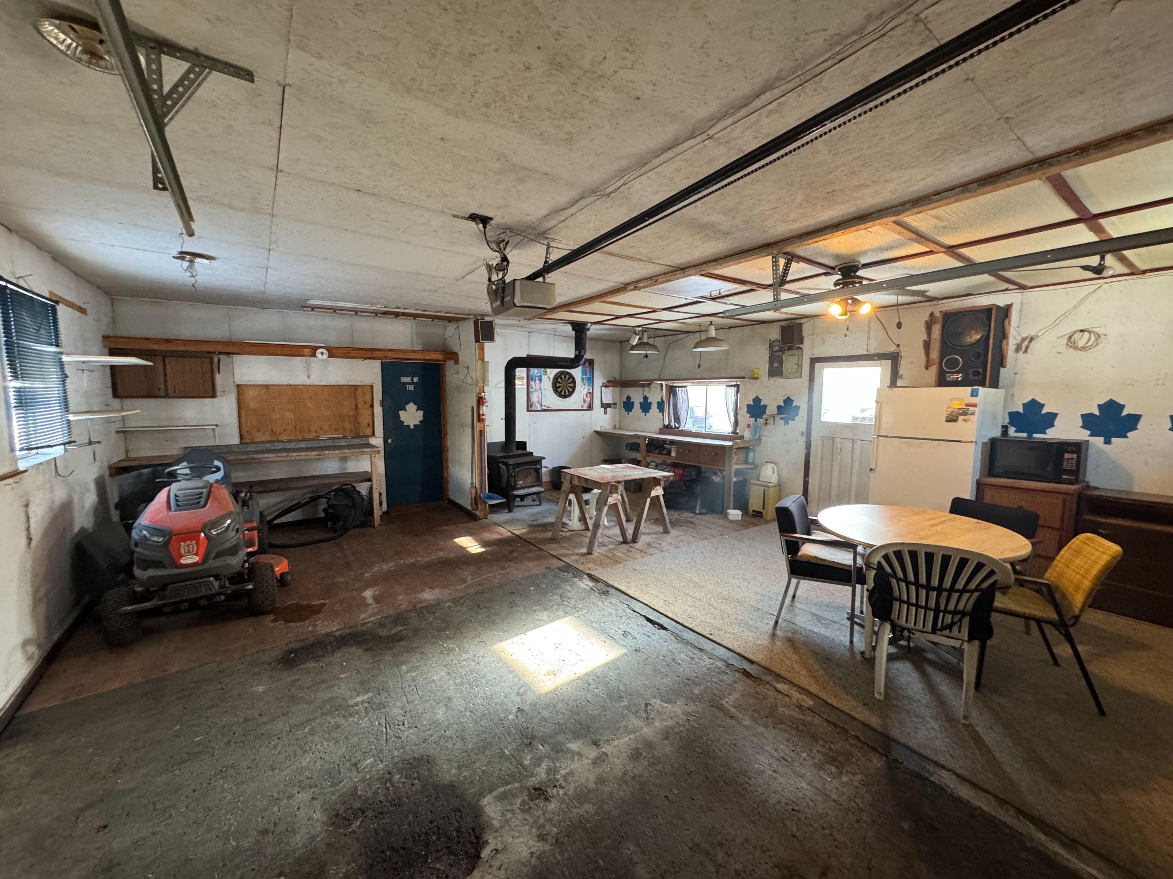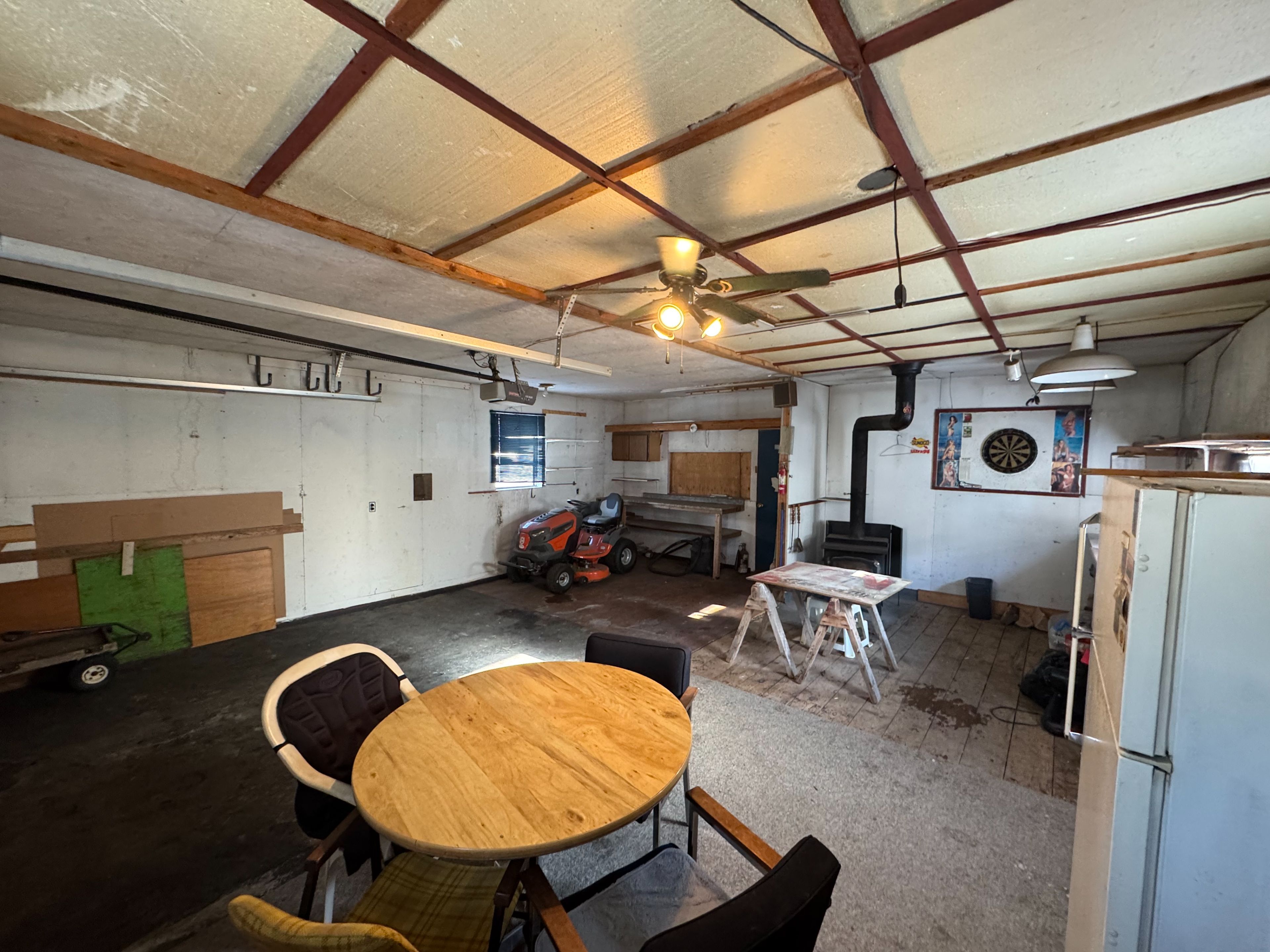 • 1.5 car garage with wood stove, perfect for hangouts.