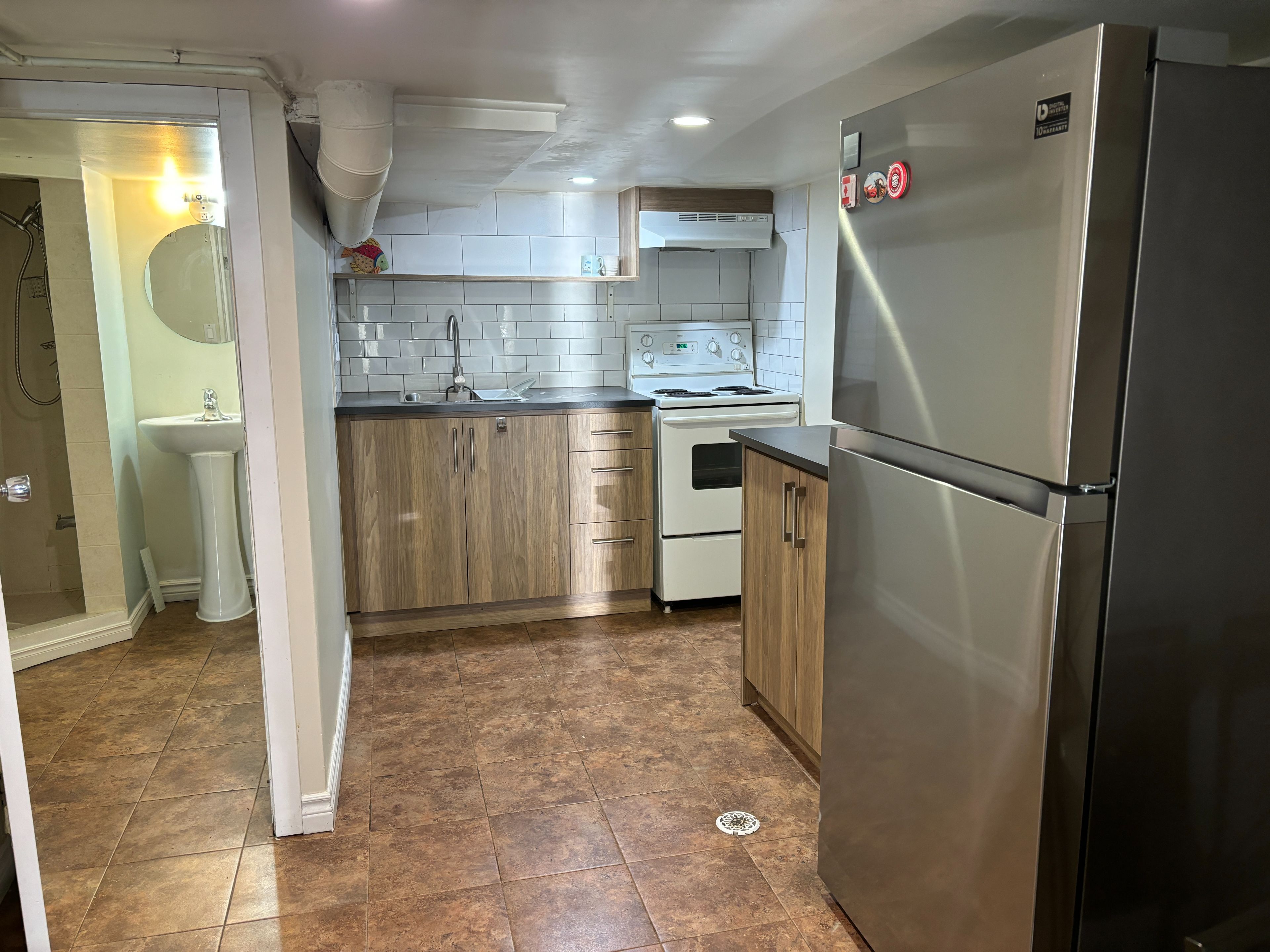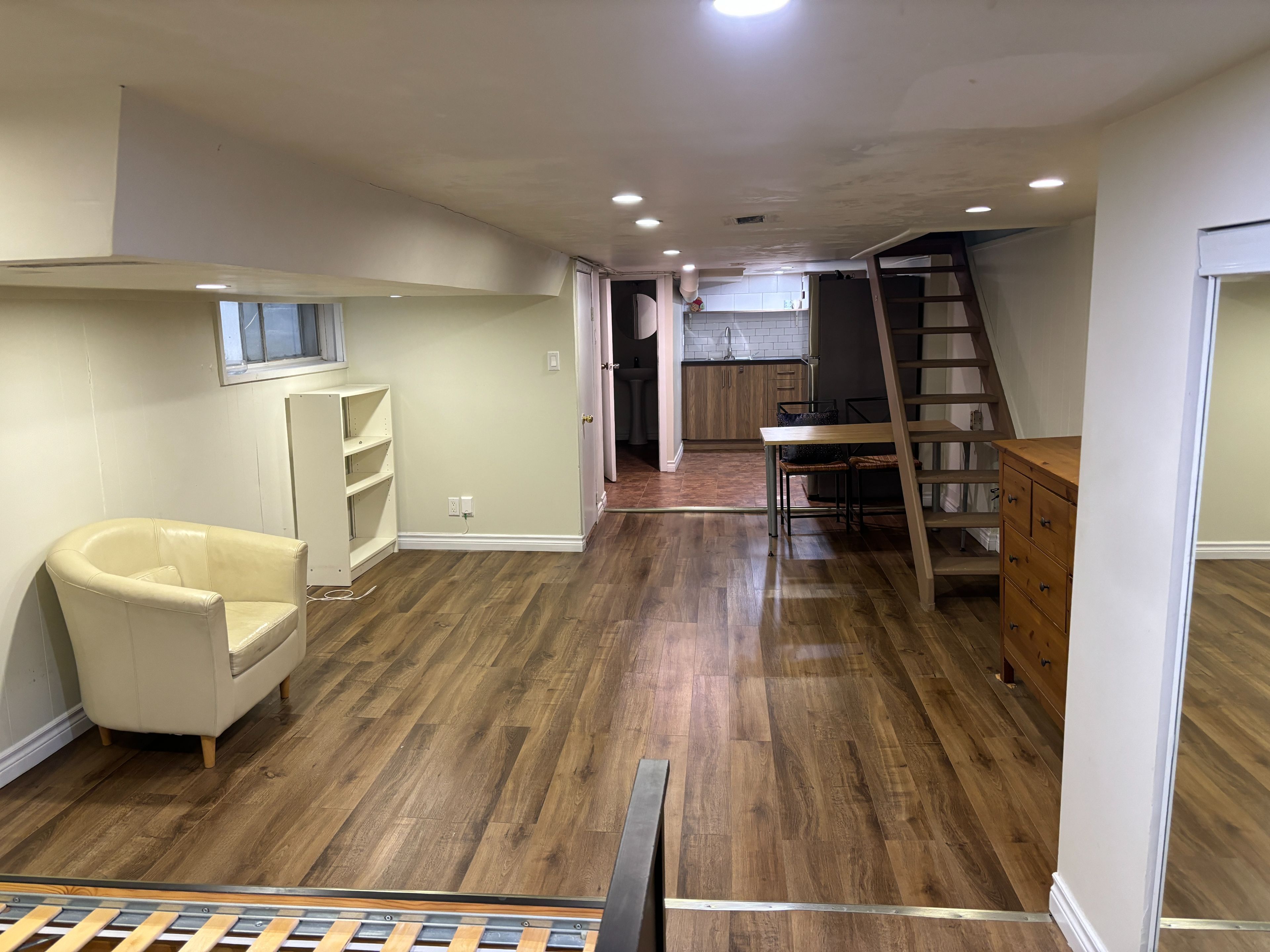 • Clean and spacious studio basement apartment with a private entrance.