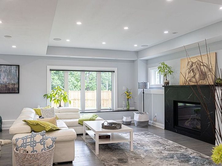 • Open-concept design with high ceilings and elegant finishes throughout.