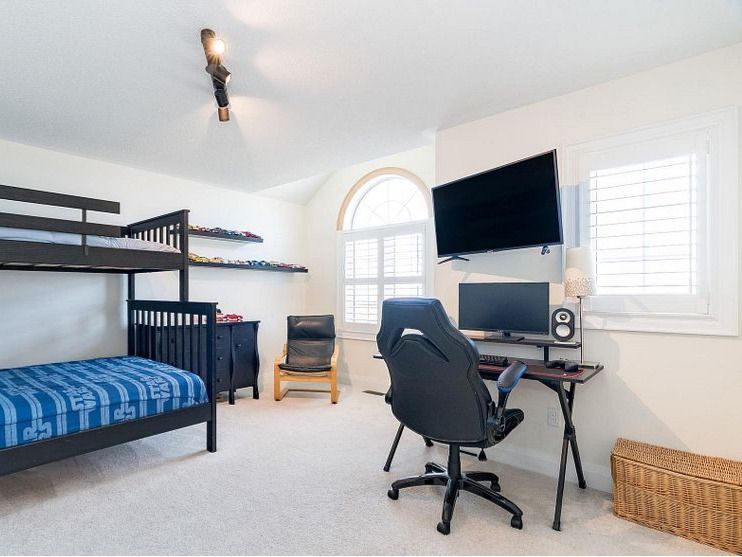 Open house march 21, 2026, 1-3 pm! Welcome to 37 muirfield drive, a rare executive 7-bedroom home (potential for 8) offering over 4,600 sq. Ft. Of finished living space (3,211 sq. Ft. Above grade plus a 1,409 sq. Ft. Finished walkout basement) on a premium $95k pie-shaped lot backing onto the protected ardagh bluffs forest with direct access to scenic trails. This unique model features a fully redesigned floor plan and custom walkout basement, making it one of the most distinctive homes in the subdivision. With no side-adjacent homes and a private treed view, the backyard offers exceptional privacy. The walkout deck and yard enjoy full rear exposure with all-day sunlight and breathtaking sunset views from both the kitchen and deck, creating the ideal orientation for a future pool. Inside, the open-concept design features 9' ceilings on both the main and lower levels, hardwood and ceramic floors, smooth ceilings, and california shutters throughout. The chef-inspired kitchen is equipped with premium jennair and kitchenaid appliances, elegant stone countertops, and a spacious layout perfect for entertaining. A main floor office/den with french doors offers flexibility and can easily convert to an additional bedroom, increasing the potential to eight bedrooms. The professionally finished walkout basement provides exceptional versatility with two entrances, oversized windows with sunset views, 40+ pot lights, surround sound wiring with ceiling speakers, a napoleon gas fireplace, separate laundry, a modern bathroom, and a rough-in for a future kitchenette, ideal for in-law or multigenerational living. The front of the home offers additional privacy with no homes or driveways directly across the street and no permitted street parking, enhancing curb appeal and creating a quiet streetscape. Located in barrie's top school district with convenient highway access, this exceptional property offers a rare combination of space, privacy, custom design, and natural surroundings.
