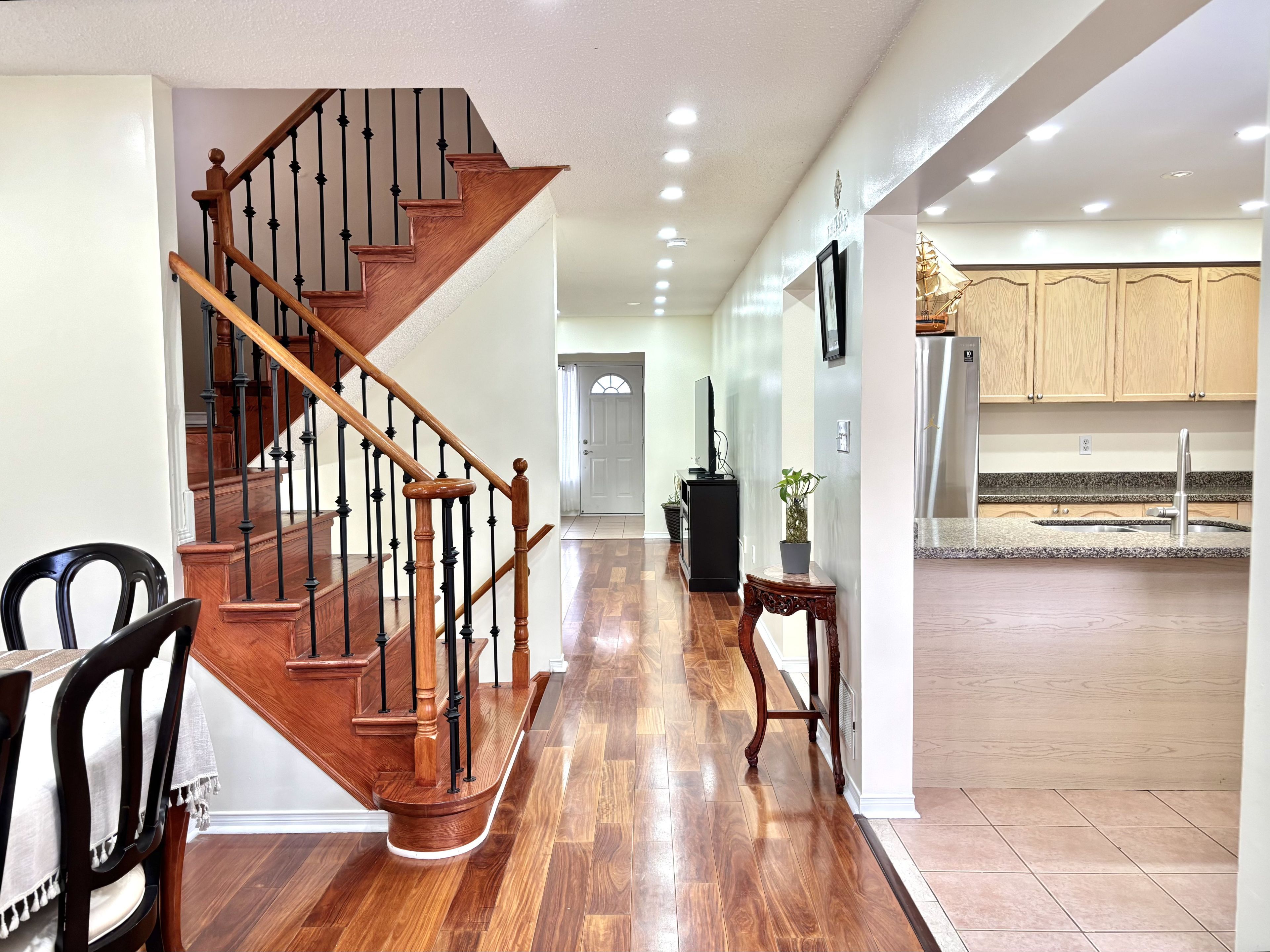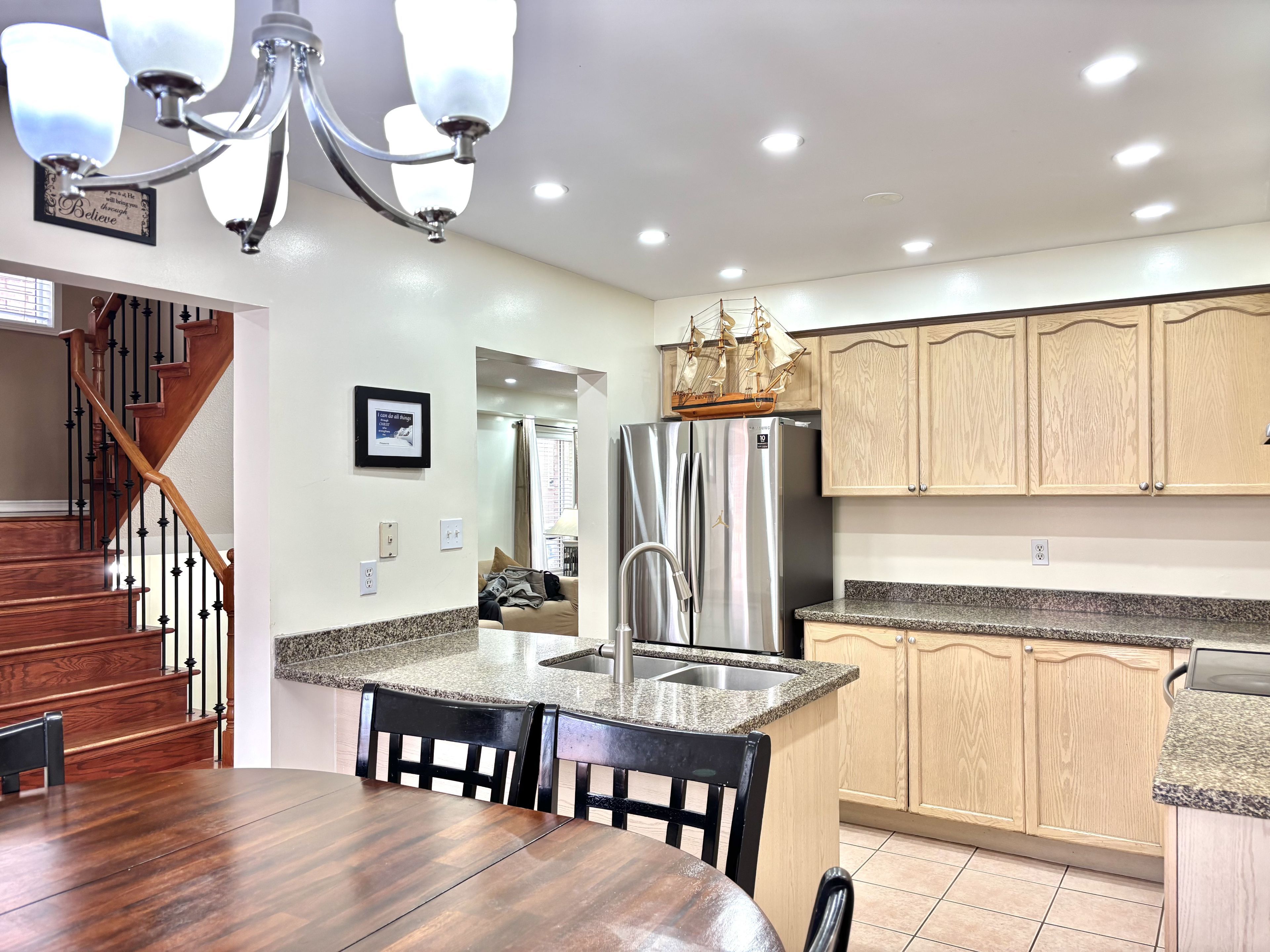 • Family-sized kitchen with quartz countertops and backyard walk-out.